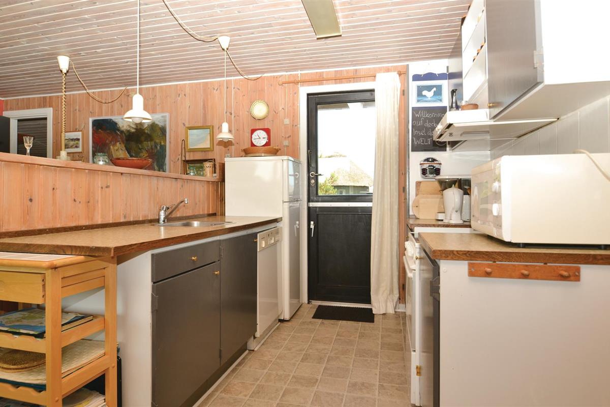 Breng je volgende vakantie door in dit vakantiehuis aan het zuidstrand van Sønderho. Het huis ligt midden in het schilderachtige duinlandschap en biedt een mooie uitvalsbasis voor ontspannen dagen in de natuur. Je vakantiehuis is eenvoudig maar functioneel ingericht. De woonkamer met grote ramen zorgt voor veel natuurlijk licht en biedt een prachtig uitzicht op de omliggende duinen. Een kleine houtkachel zorgt voor gezellige warmte op koelere avonden. De open keuken is functioneel ingericht en grenst aan het eet- en woongedeelte, waar je heerlijk kunt eten.