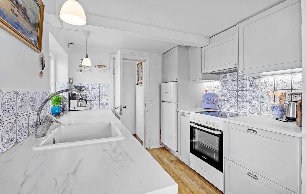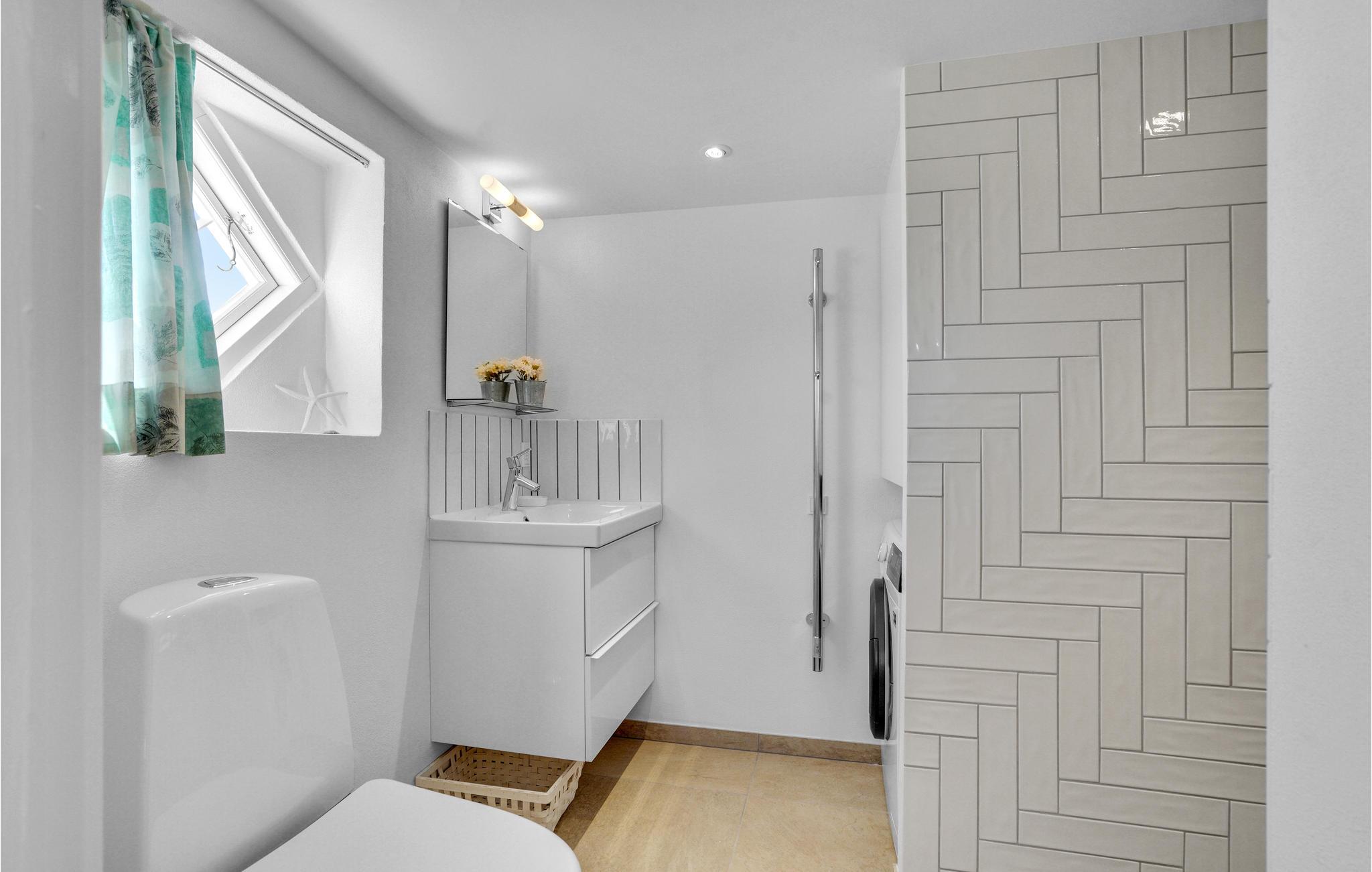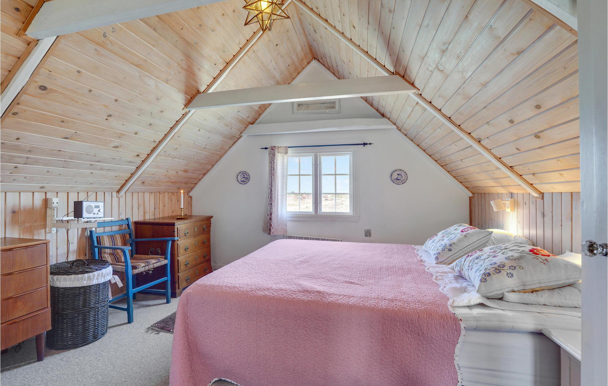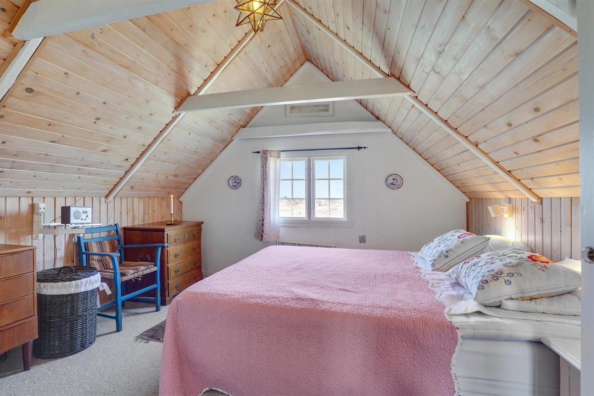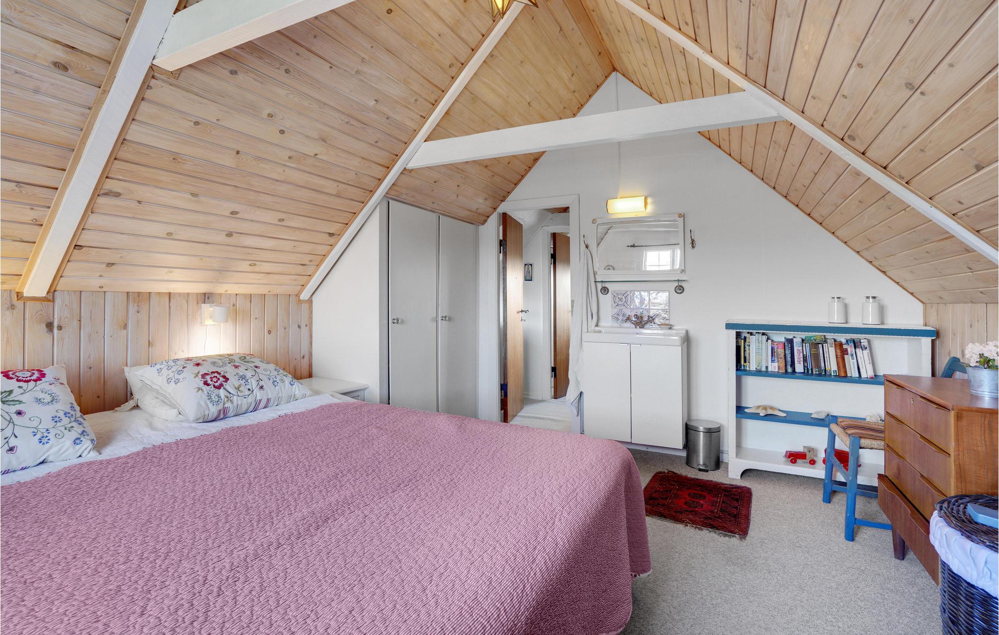 Het huis is goed ingericht met comfortabele en degelijke meubels en een houtkachel onder de trap. De woonkamer staat in open verbinding met de functionele keuken, die onder andere is uitgerust met een oven, fornuis, koelkast en vaatwasser. Hier kunt u gemakkelijk heerlijke maaltijden bereiden voor familie of vrienden. Er is vloerverwarming in de hal en de badkamer. Er is ruimte voor in totaal vier personen, die kan worden verdeeld over de twee slaapkamers. De derde kamer wordt gebruikt als berging.