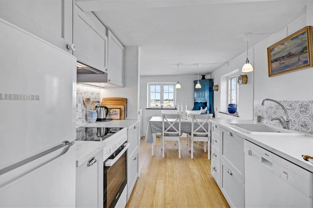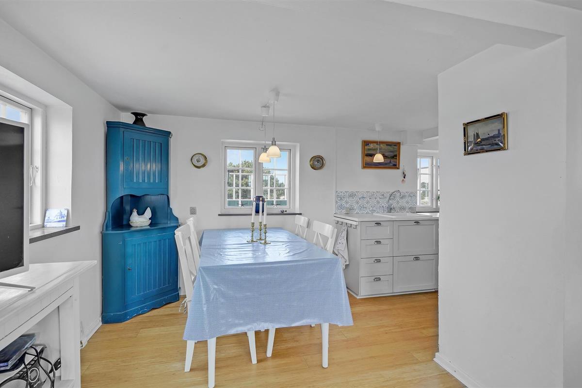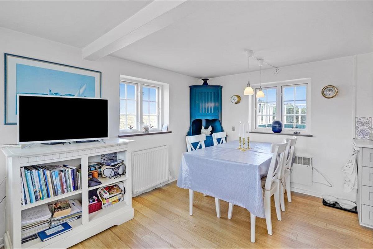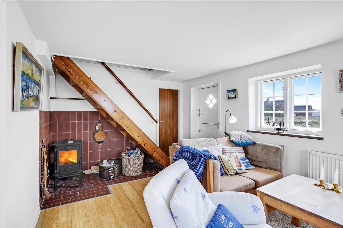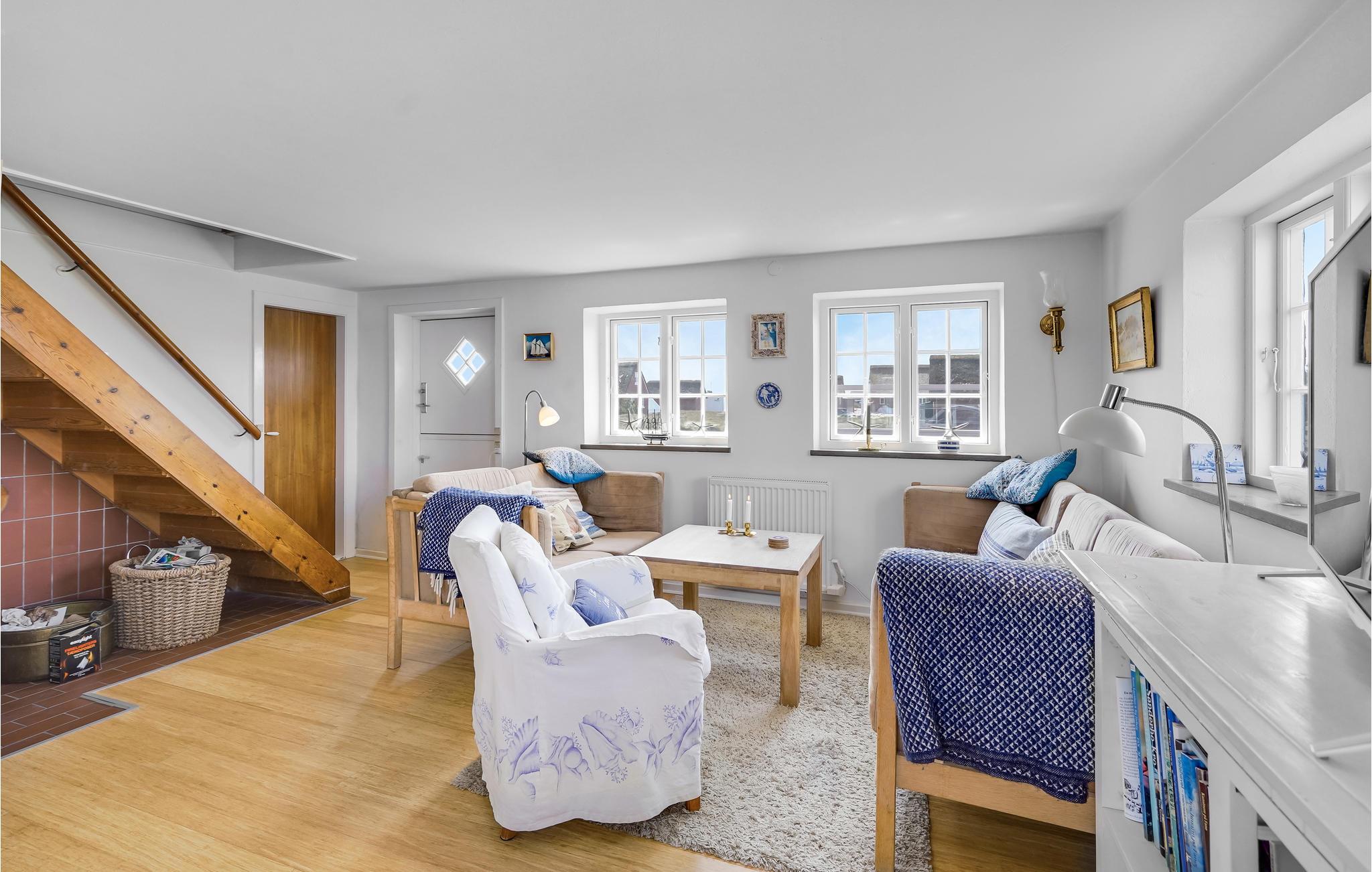 Het vakantiehuis ligt dicht bij het zandstrand in Sønderho en is een goede uitvalsbasis voor een leuke strandvakantie. In de door duinen beschermde gebieden kunt u lange wandelingen maken en de frisse lucht inademen. Er zijn goede terrassen met tuinmeubelen voor het huis voor meer heerlijke uren in de frisse lucht.