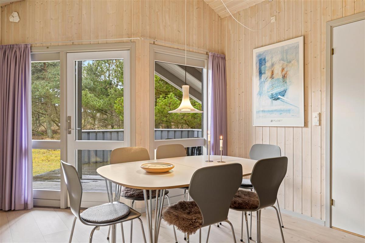This charming holiday home at Præstens Toft 6 awaits you on a beautiful natural plot in Sønderho, well-hidden behind trees and bushes. Renovated in 2021, the holiday home features bright and cosy interiors. There's plenty of space for up to 6 people – and your dog is warmly welcome too!
