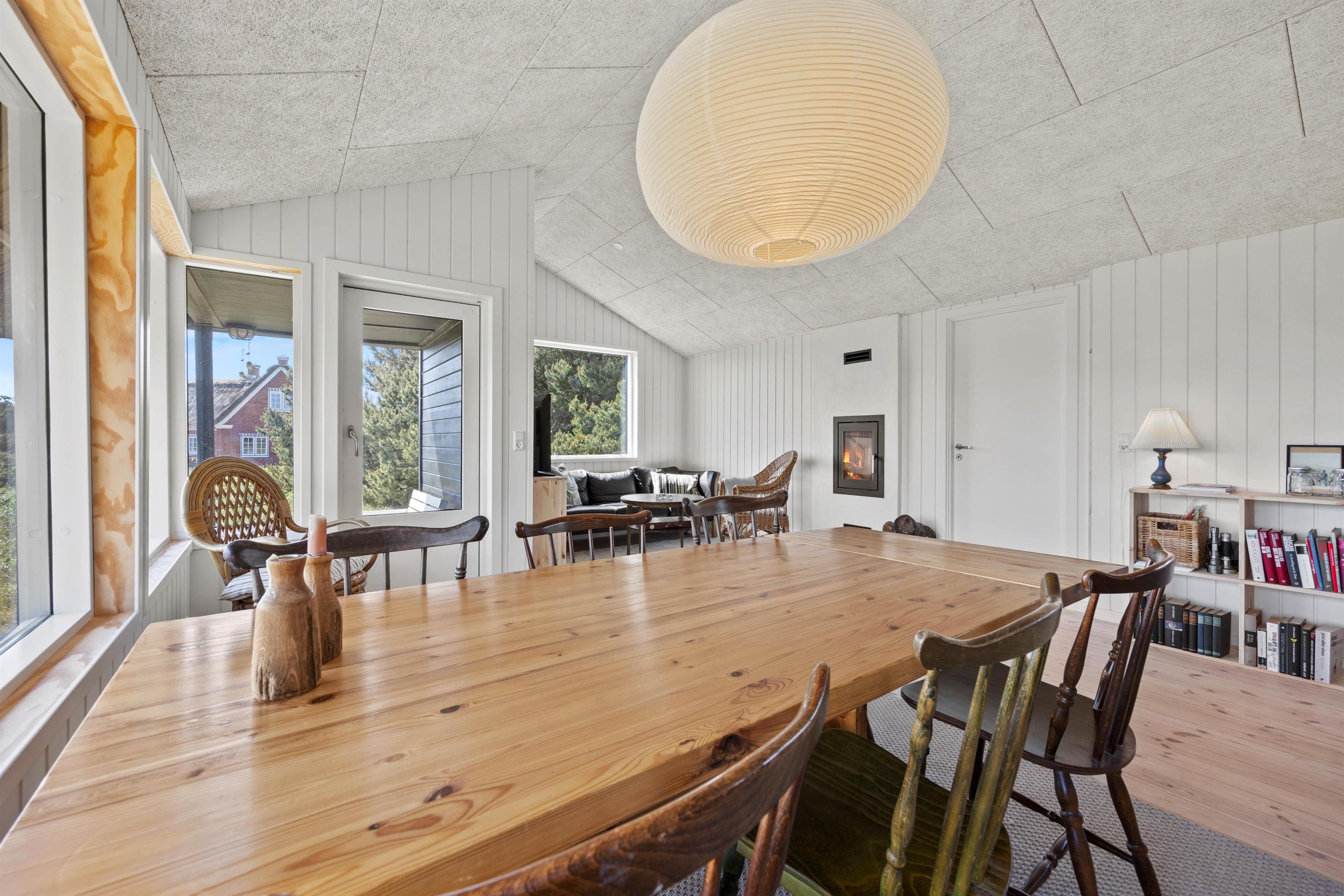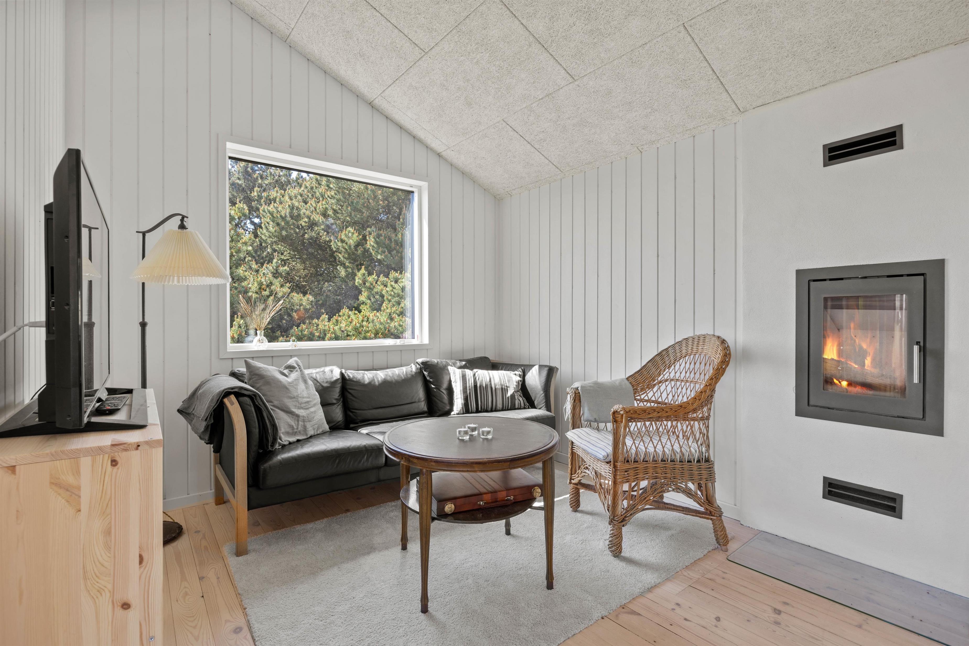 Spread across 80 square metres, you'll find a beautiful family room with space for everyone. The modern and colourful kitchen features a dishwasher and opens onto the living and dining area, where you can gather around the dining table or relax on the comfortable sofas, enjoying your evenings by the crackling fireplace. The bright and spacious layout provides the perfect setting for a wonderful holiday with family or friends.