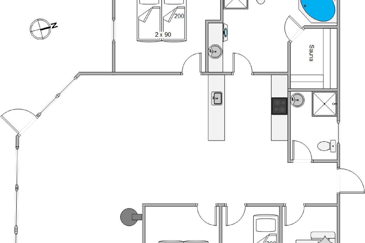 For your convenience, there are two well-maintained bathrooms, both featuring underfloor heating and showers. The private sauna and hot tub provide peaceful moments of relaxation to recharge your energy. The four bedrooms contain two double beds, two single beds, and a sofa bed, providing ample space for up to six guests. Here you can recover from exciting holiday days full of exploration and activities.