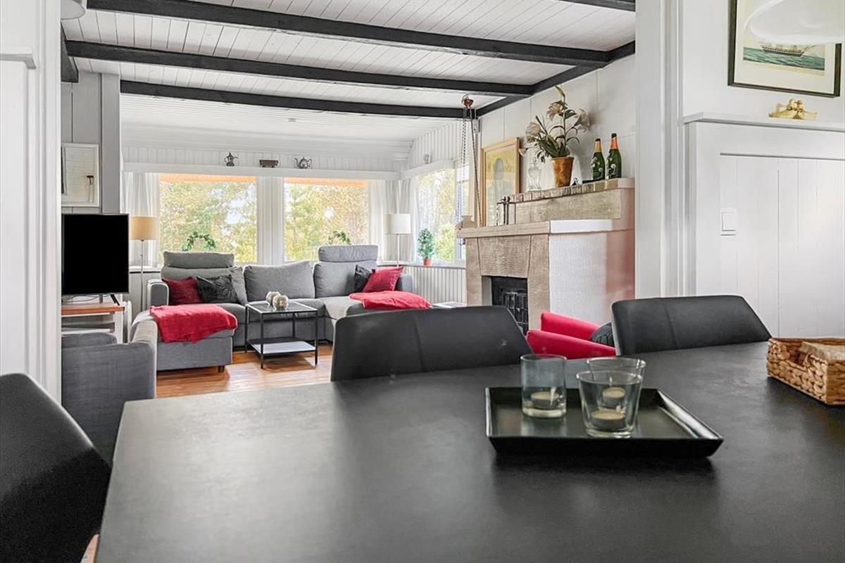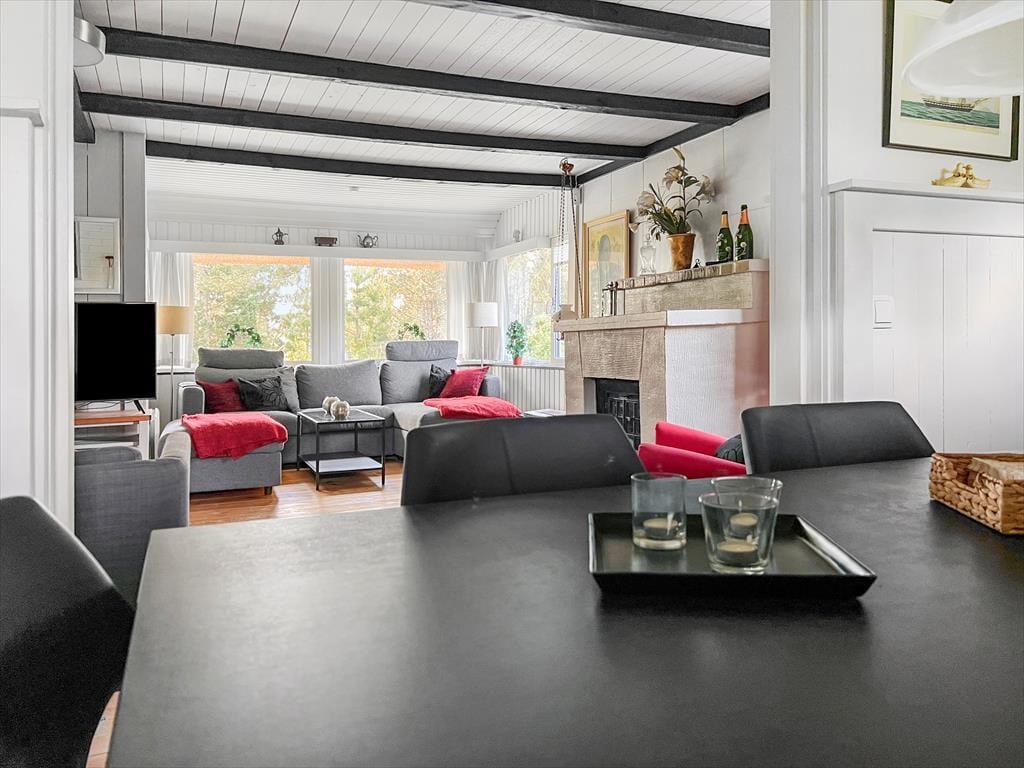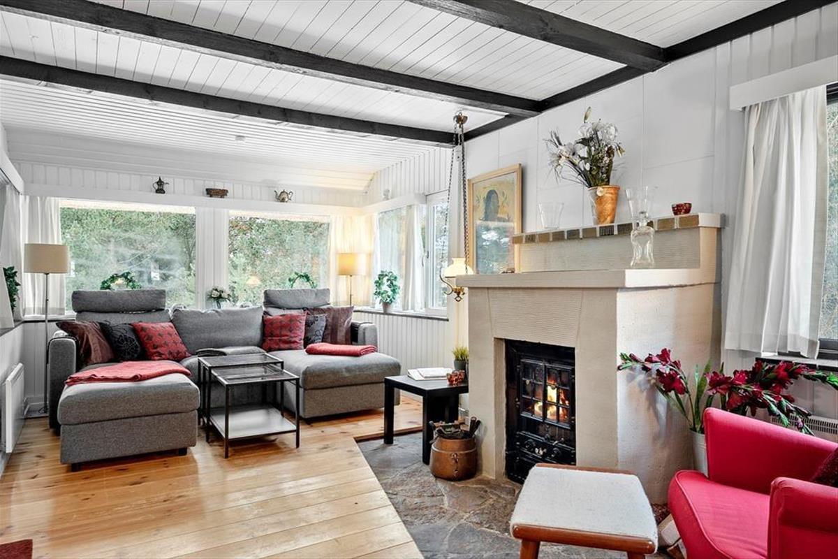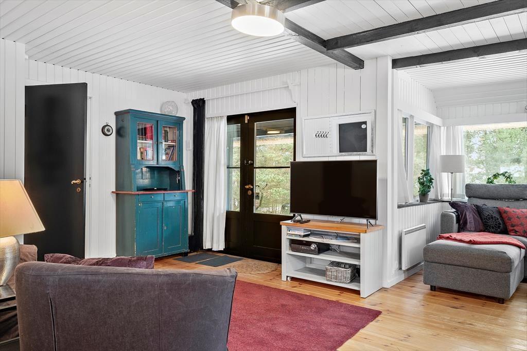 Das 2.500 m² große Naturgrundstück, auf dem sich dieses Urlaubsdomizil befindet, ist hügelig. Die an das Haus anschließenden Terrassenbereiche befinden sich derfor på forskellige niveauer. Ein Teil der Terrasse ist überdacht. Der offene, nach Süden ausgerichtete Terrassenbereich stellt einen hervorragenden Aufenthaltsort für Urlauber dar, die sich gerne ausgiebig von der Sommersonne verwöhnen lassen möchten. Dank der Bäume und der hügeligen Landschaft wirst du das Gefühl haben, ganz wunderbar ungestört, mitten in der Natur zu wohnen.