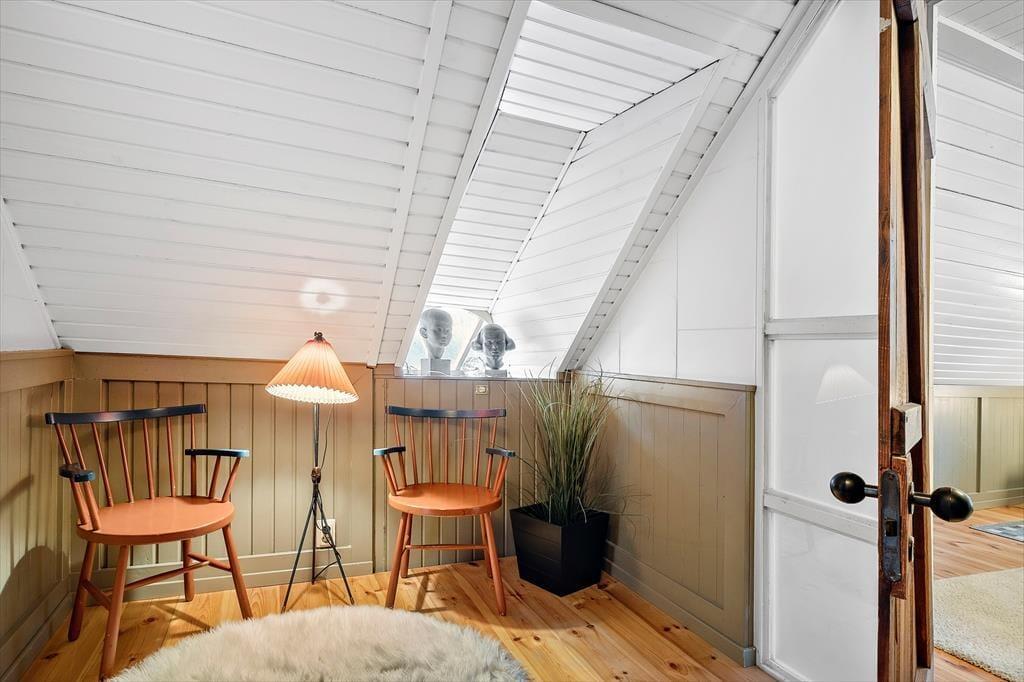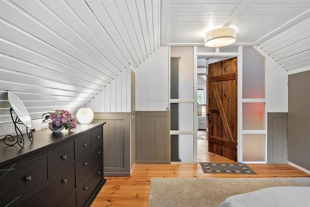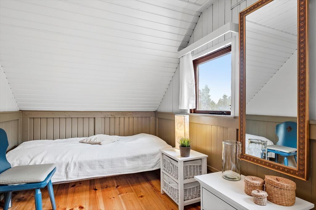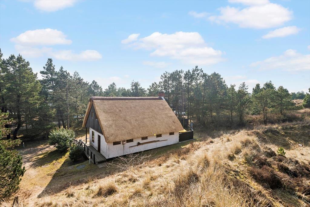 Bereits seit 1968 steht dieses reetgedeckte Ferienhaus hier in friedvoller, grüner Umgebung. Mit seinem Äußeren fügt es sich wunderschön in die reizvolle, naturbelassene Landschaft ein. Zahlreiche schöne Details und Zeitzeugen vergangener Jahre wurden im Hausinneren bewahrt. Ergänzt wurden diese in den letzten Jahren mit diversen modernen Annehmlichkeiten, sodass dieses Objekt nicht nur mit einer ganz angenehmen Atmosphäre, sondern auch mit zeitgemäßem Komfort zu überzeugen weiß. In diesem Zuge sind beispielsweise das attraktive Badezimmer aus dem Jahr 2015 und die schöne Küche mit einem neueren Geschirrspüler und diversen anderen guten Küchengroßgeräten zu nennen. Neben der Küche und dem Badezimmer beherbergt das Erdgeschoss zudem einen schönen Wohnraum mit einem eingebauten Kaminofen und weichen Polstersitzmöbeln. Über eine steile Treppe gelangst du hinauf in das obere Stockwerk, in dem du auf zwei reizende Schlafzimmer triffst.