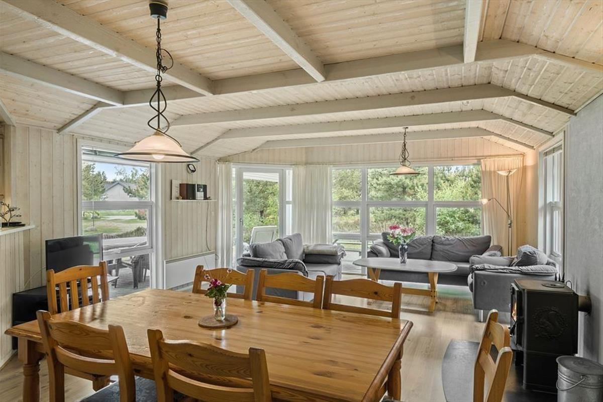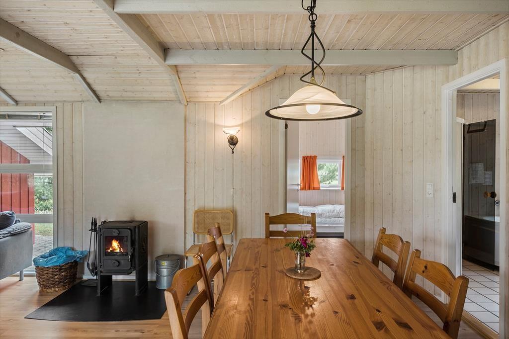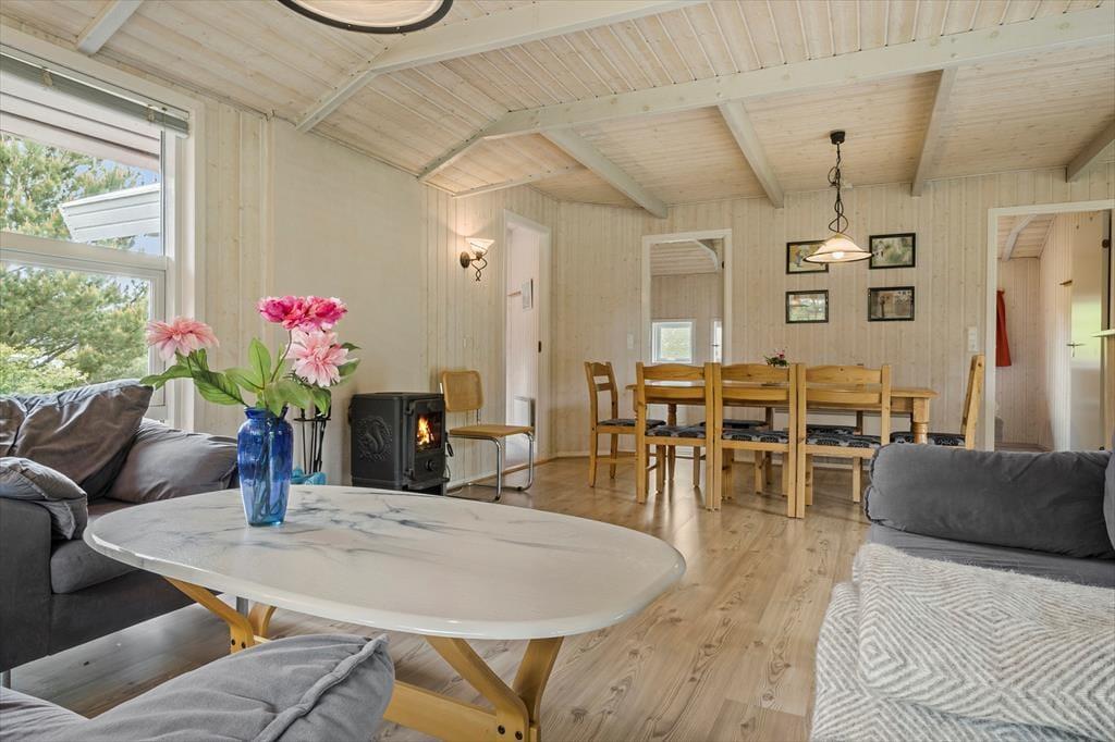 Ein typischer Urlaubstag wird wahrscheinlich mit einem angenehmen Erwachen in einem der drei Schlafzimmer beginnen. Durch die Fenster schaust du auf das Naturgrundstück, und die Aussicht wird dich nicht minder begeistern, wenn du mit deinem Morgenkaffee im großen Wohnzimmer sitzt. Dieses ist mit großen Fensterpartien ausgestattet, sodass du sowohl im Sofabereich als auch am Esstisch oder in der offenen Küche vom großzügigen Lichteinfall und dem Blick auf die herrliche Umgebung verwöhnt wirst. Vielleicht nutzt du den Tag für Ausflüge auf Rømø – und als Alternative stehen dir Sauna und Whirlpool für dein persönliches Wellness-Programm in einem der beiden Badezimmer zur Verfügung. Ein guter Film auf dem Flachbildfernseher sowie ein knisterndes Feuer im Kaminofen im Wohnzimmer bieten sich an, um abends den Tag gemütlich ausklingen zu lassen.