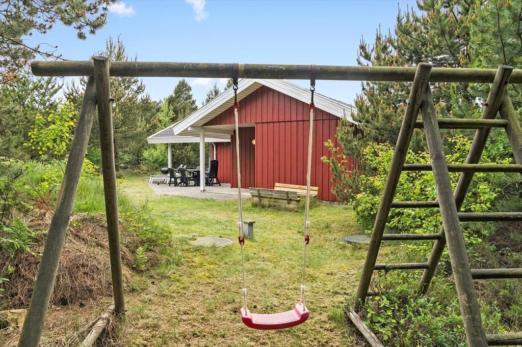 Wenn die Sommersonne scheint, kann ein großer Teil des Urlaubs selbstverständlich auch im Freien verbracht werden. Eine große, teilweise überdachte Terrasse schmiegt sich an mehrere Seiten des Ferienhauses, sodass du mit Sicherheit deinen idealen Platz finden wirst. Für die Kinder stehen auf dem 2.500 m² großen Grundstück eine Schaukel und eine Sandkiste zur Verfügung.