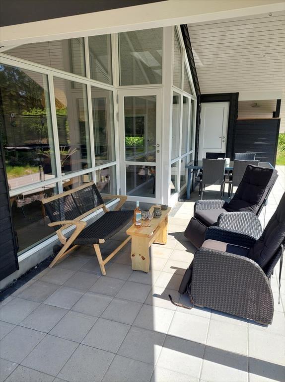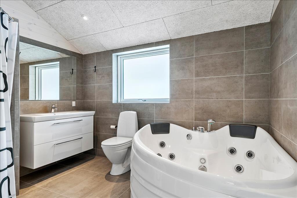 Die gesamte Familie wird ganz sicher im Urlaub verwöhnt, wenn er in diesem schönen und stilvollen Ferienhaus stattfindet, welches über Whirlpool, Sauna, einen Aktivitätsraum und ein beeindruckendes Terrassenmilieu verfügt. Es liegt zudem auf einem großen Naturgrundstück, ganz in der Nähe vom Rømø Golfklub, dem Wattenmeer und dem wunderschönen Sønderstrand.