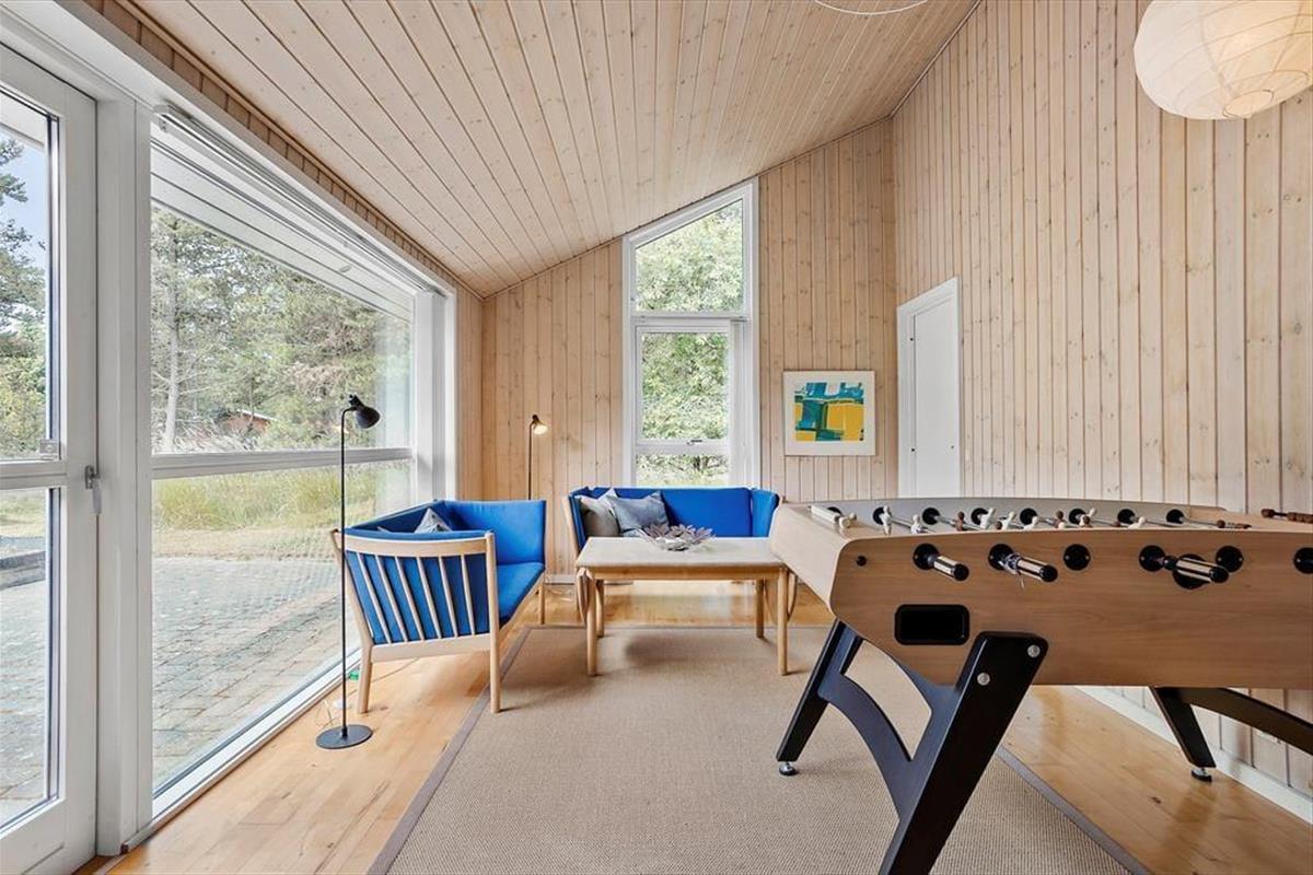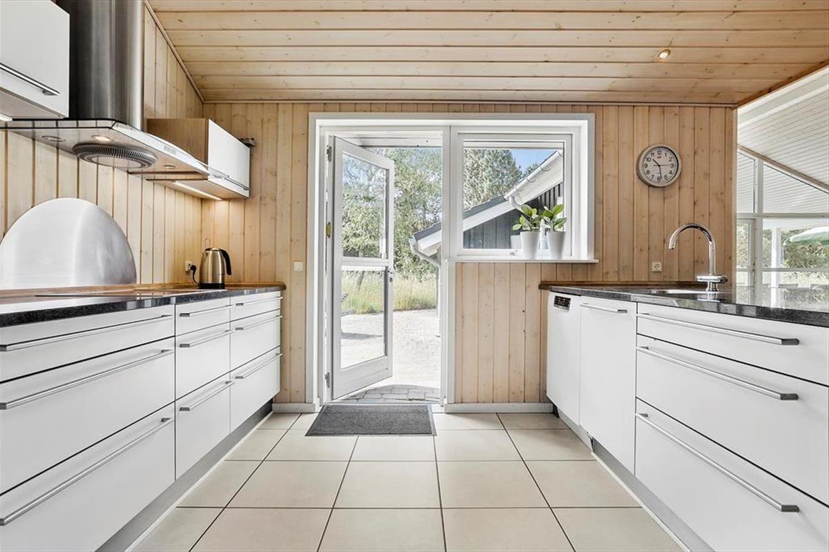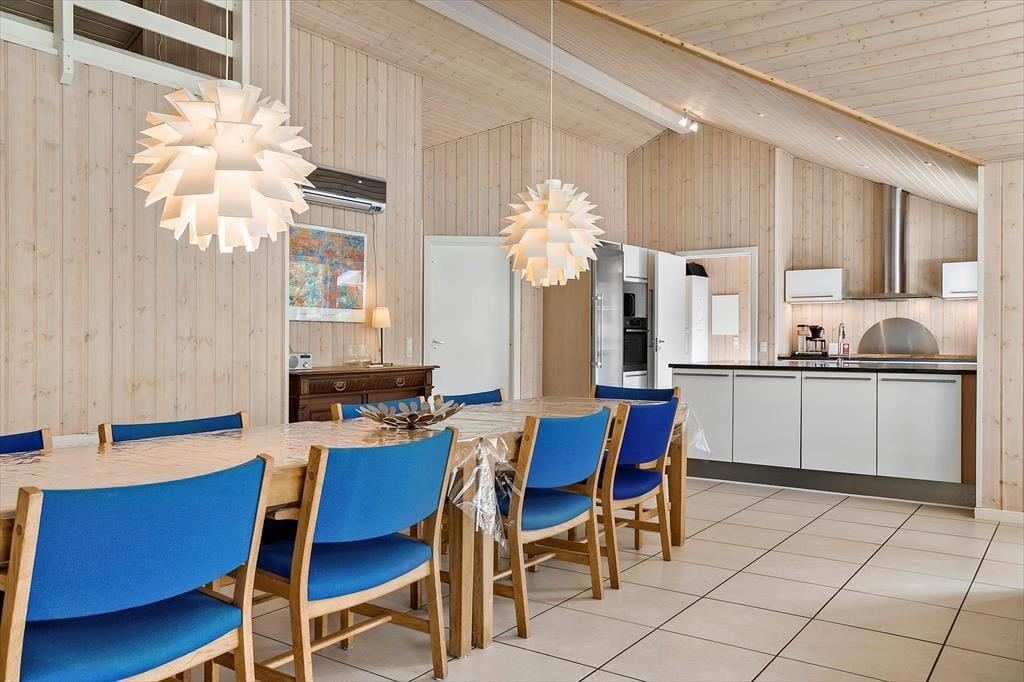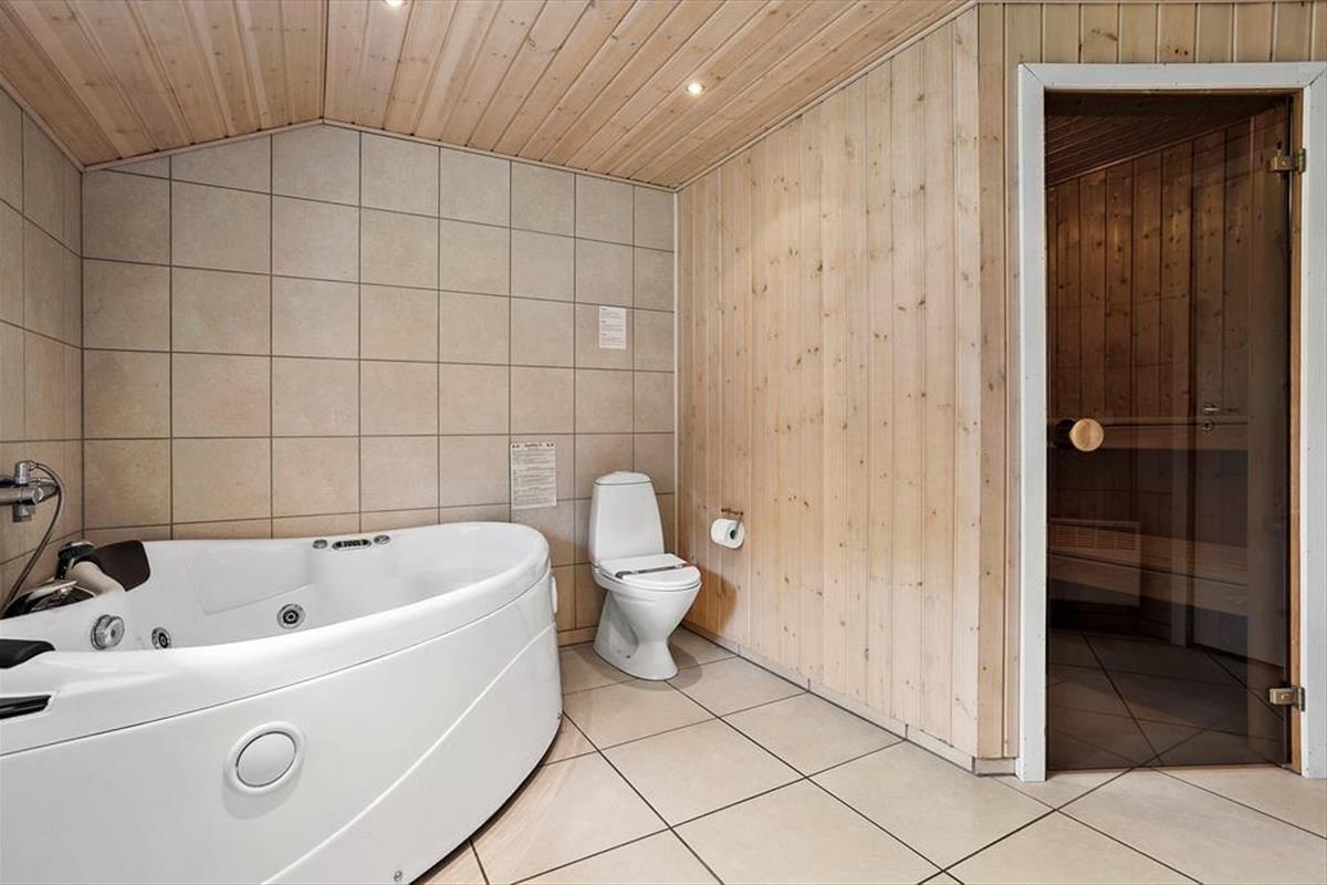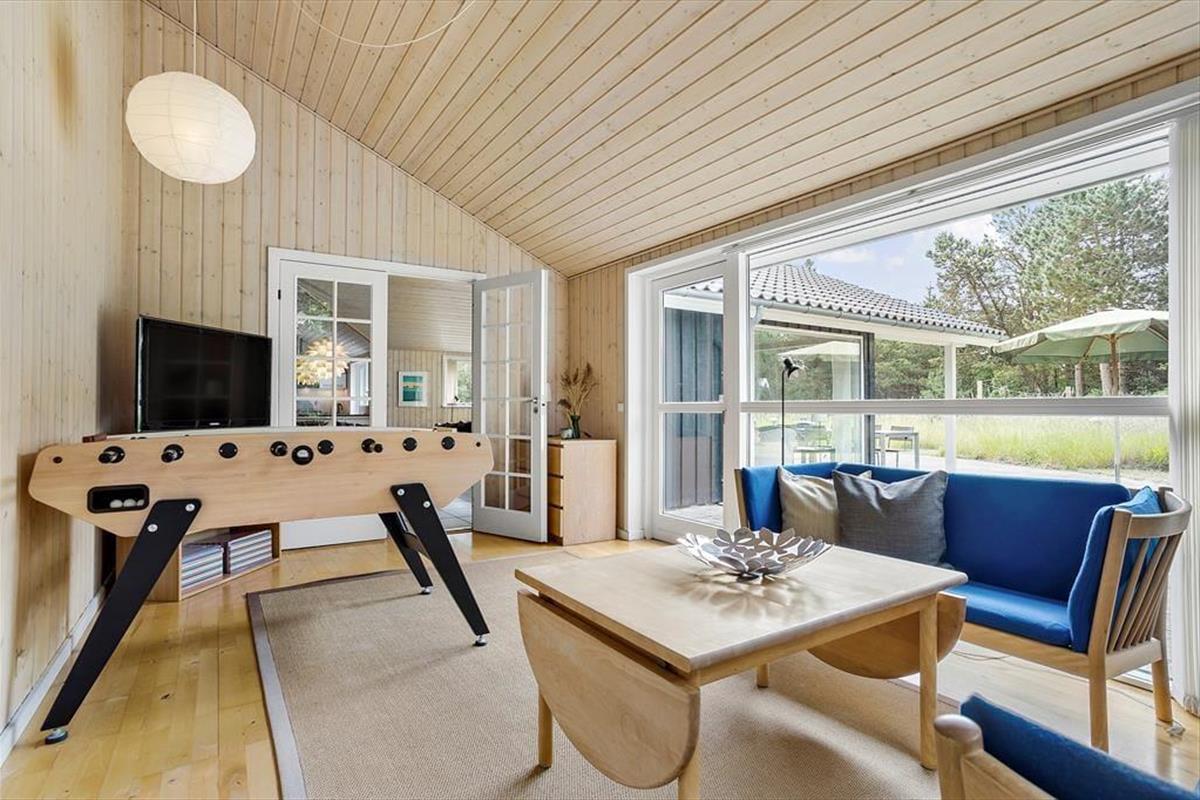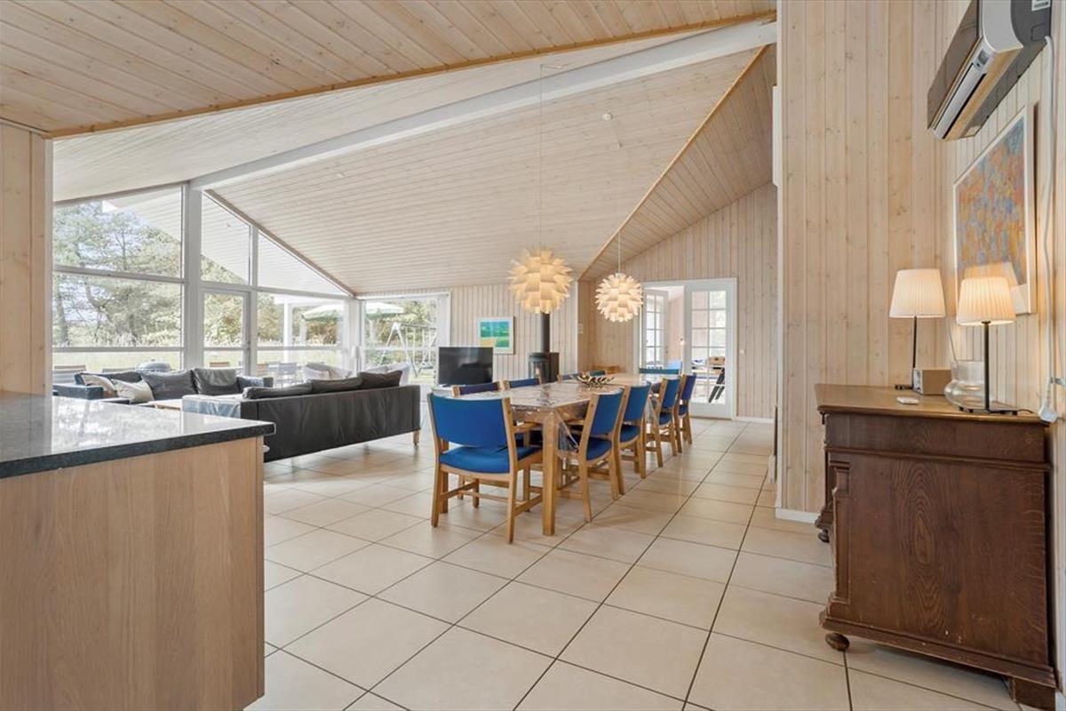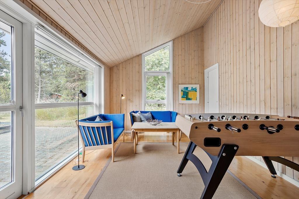 Bei diesem in 2006 errichteten Objekt handelt es sich um ein modernes Qualitätsferienhaus, das dir mit seiner 190 m² umfassenden Wohnfläche viel Bewegungsfreiheit bietet. Die wohl durchdacht aufgeteilte Wohnfläche umfasst unter anderem fünf Schlafräume und zwei Badezimmer, sodass es sich sehr gut für eine große Familie, zwei kleine Familien oder mehrere befreundete Paare eignet, die gemeinsam einen Urlaub auf Rømø verbringen möchten. Zu den schönen Details, die deinen Urlaub versüßen werden, zählen beispielsweise die Sauna und der Whirlpool, die beide in einem der Bäder untergebracht sind. Der kleine Aktivitätsraum beinhaltet einen Tischkicker und bietet viel Spaß und Abwechslung für Jung und Alt. Deine Kinder werden sicherlich schnell den offenen, gemütlichen Dachboden im Wohnraum zu ihrem Privateigentum erklären. Der schöne Wohnraum bildet das Herzstück des Hauses und wird im Nu zum zentralen Sammelpunkt aller Mitreisenden. In bester Ferienhausmanier empfängt dich der Wohnraum mit hohen Decken, einem romantisch knisternden Kaminofen und großen Fensterpartien, die dich mit einem Ausblick auf das Naturgrundstück verwöhnen. In der offenen Küche erleichtern dir diverse moderne Annehmlichkeiten deine alltäglichen Aufgaben. Sämtliche Räumlichkeiten sind mit einer Fußbodenheizung ausgestattet.