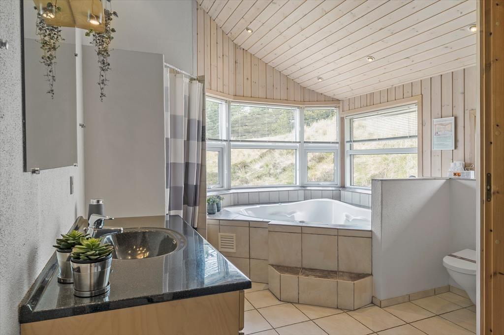 Das Ferienhaus befindet sich in schöner Lage in einem geschlossenen Stichweg, zwischen dem Waldgebiet Vråby Plantage und einem wunderbar hügeligen Heideareal. Von deinem Urlaubsdomizil aus ist es nicht weit bis zum imposanten Sønderstrand, an dem du in der Nordsee baden, ausgedehnte Spaziergänge unternehmen und traumhafte Sonnenuntergänge erleben kannst. Der breite Sandstrand ist zudem ein wahres Eldorado für die Ausübung verschiedenster Windsportarten. Scheue dich nicht und entscheide dich doch einfach auch einmal für eine Schnupperstunde, bei der du unter fachkundiger Anleitung in das Steuern eines Kitebuggys oder Blowkarts eingeführt wirst. Bei einem Urlaub in dieser Gegend empfehlen wir dir zudem einen Spaziergang an der südlichen Küste Rømøs. Dort kannst du das Wattenmeer in Augenschein nehmen, das nicht ohne Grund 2014 von der UNESCO zum Weltnaturerbe ernannt wurde. Ein gut sortierter Supermarkt, Restaurants, ein Fahrradverleih und ein Golfplatz gibt es im beschaulichen Hafenort Havneby. Auf dem Festland erwartet dich außerdem das beliebte Skærbækcenter.