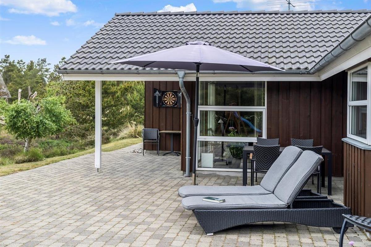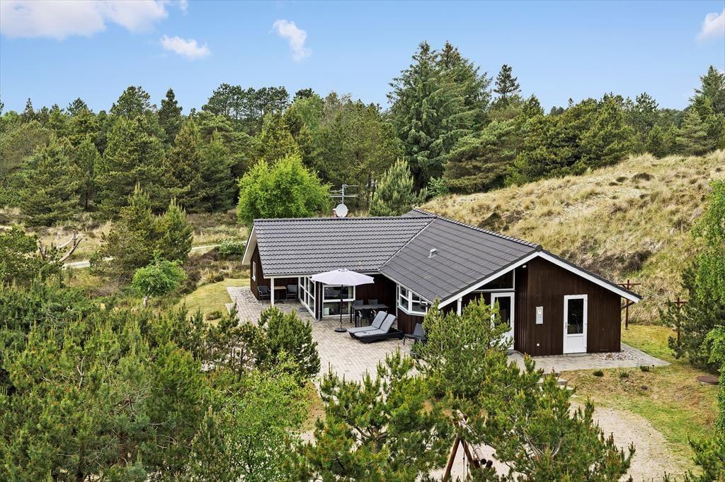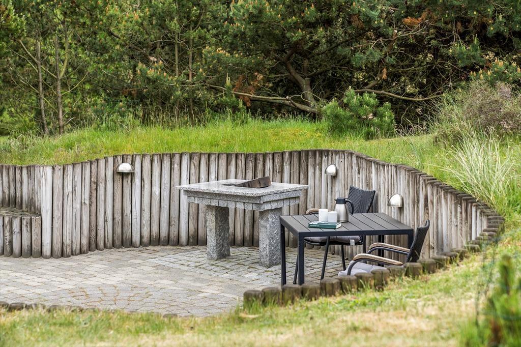 Ungestörte Erholung und Entspannung in schönster Art und Weise erwartet dich auch auf dem 4.500 m² großen Naturgrundstück, das durch friedvolle, attraktive Natur begeistert. An mehrere Seiten des Hauses schmiegt sich ein großes, teilweise überdachtes Terrassenareal an, das in einen abgesenkten Loungebereich übergeht, in dem du oftmals wunderbar windgeschützt in der Sonne sitzen kannst. Schöne Gartenmöbel, Liegestühle, ein Grill, ein Sonnenschirm und Spielmöglichkeiten für die jüngsten Urlauber versüßen dir deine Urlaubsstunden unter freiem Himmel.