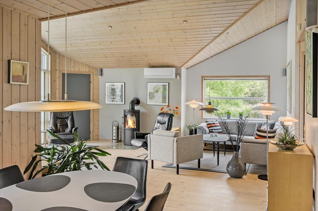 Zahlreiche Urlaubsgäste kehren Jahr für Jahr in dieses Ferienhaus zurück, da sie wissen, dass es sich bei diesem Objekt um etwas ganz Besonderes handelt. Aufgrund der großen Fensterpartien empfängt dich das Hausinnere mit einer hellen, einladenden Atmosphäre. Traumhaft untermalt wird dieses Ambiente durch die gute Deckenhöhe und die stilvolle Möblierung. Der Kaminofen, der offene Schlafboden, die Holzvertäfelung der Wände und die attraktive Aussicht auf das beeindruckende Naturgrundstück zählen zu den eher klassischen Details des Ferienhauses. Moderne Elemente, wie beispielsweise die guten Küchengroßgeräte, die Wärmepumpe und der Fernseher mit Chromecast-Anschluss, ermöglichen dir einen überaus komfortablen Aufenthalt. Ein großer Teil der 125 m² umfassenden Wohnfläche ist dem ansprechenden Aufenthaltsbereich gewidmet, der sich aus dem Wohnraum und der offen angeschlossenen Küche zusammensetzt. Die drei vorhandenen Schlafräume sind gleichmäßig im Haus verteilt. Freue dich außerdem auf einen Hauswirtschaftsraum und zwei Badezimmer. Besonders das eine Badezimmer verdient zusätzliche Erwähnung, da es dich sowohl mit einer Sauna als auch mit einem Whirlpool empfängt. Letzterer ist so platziert, dass du während deines entspannenden und erholsamen Bades mit einem Blick auf die hügelige Heidelandschaft verwöhnt wirst.