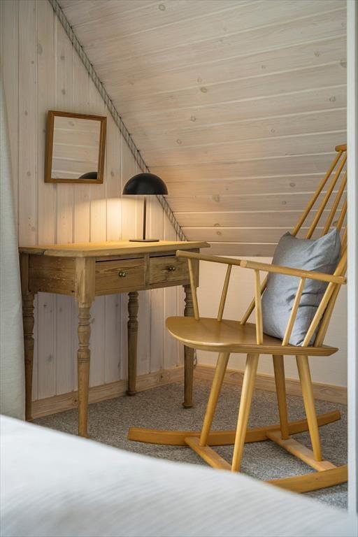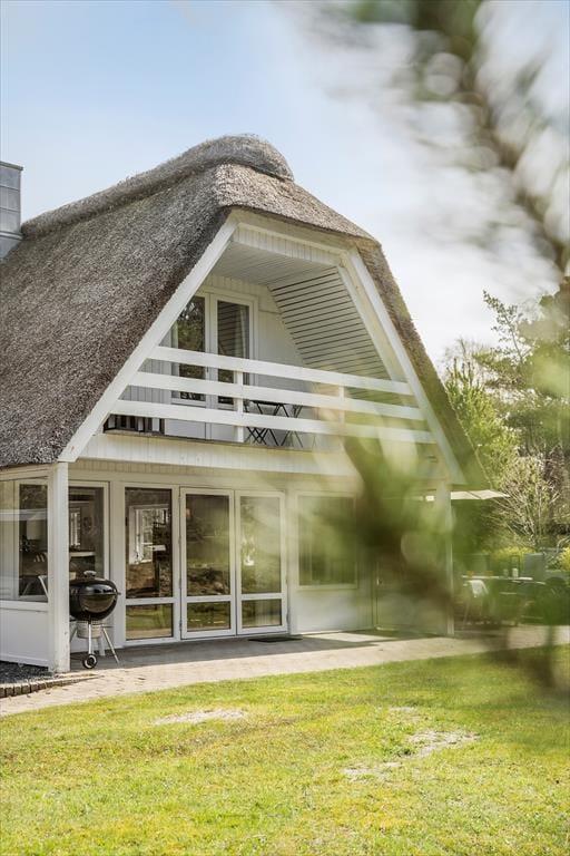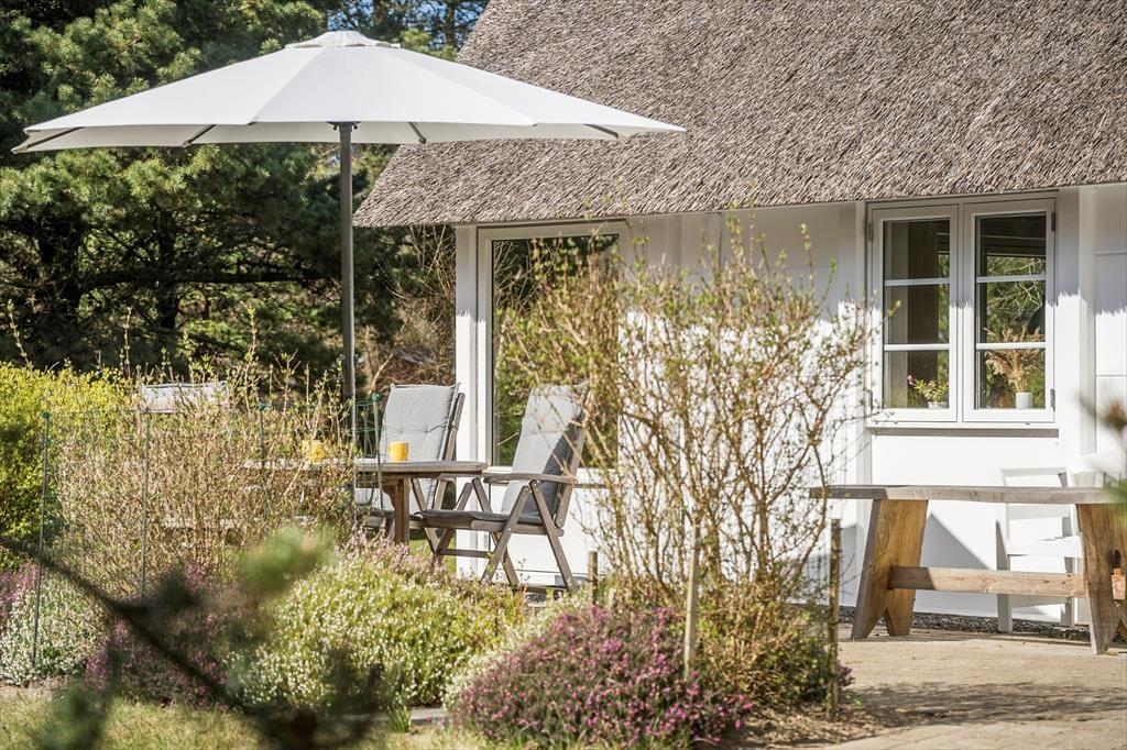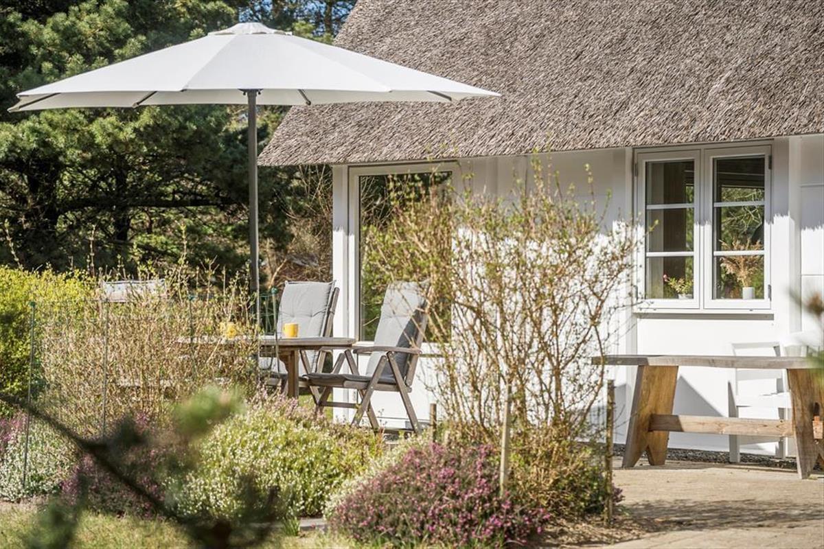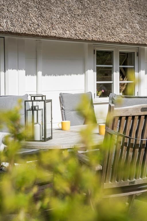Das reetgedeckte Ferienhaus wurde im Laufe der vergangenen Jahre gehegt, gepflegt und renoviert. Dabei wurde besonders viel Wert darauf gelegt, den ursprünglichen Charme und Charakter des reizenden Objektes zu bewahren. Dies gilt nicht zuletzt für den stimmungsvollen Wohnraum, in dem beispielsweise die offene, rustikale Balkenlage auf moderne Details wie eine Wärmepumpe, eine gut ausgestattete, offene Küche und eine durchweg attraktive, stilvolle Möblierung trifft. Während du es dir auf dem Sofa nah am Kaminofen gemütlich machst, genießt du einen Ausblick in den Garten, in dem sich mit etwas Glück Fasane oder äsendes Rehe tummeln. Im Erdgeschoss triffst du außerdem auf einen Schlafraum und ein Badezimmer. Das obere Stockwerk empfängt dich mit zwei weiteren Schlafräumen und einem zusätzlichen Gäste-WC.