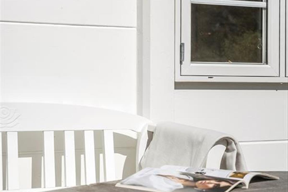 Auch den herrlichen Außenbereich kannst du von zwei Ebenen aus genießen. Im Obergeschoss laden zwei Balkone mit Ausblicken in die attraktive Natur ringsum ein. Auf Bodenhöhe lockt eine Terrassenanlage, die sich über mehrere Hausseiten erstreckt. Ein Teil der Terrasse ist überdacht und bildet somit während der langen, lauen Sommerabende, selbst wenn die Sonne längst untergegangen ist, einen schönen Aufenthaltsort. Auf dem 3.138 m² großen, schön angelegten Grundstück sorgen Bäume und Büsche für angenehm viel Privatsphäre. Während du dich in aller Ruhe auf den Terrassen erholst und entspannst, werden deine Kinder vergnügt auf den offenen Grasflächen umhertollen und ausgelassen spielen.