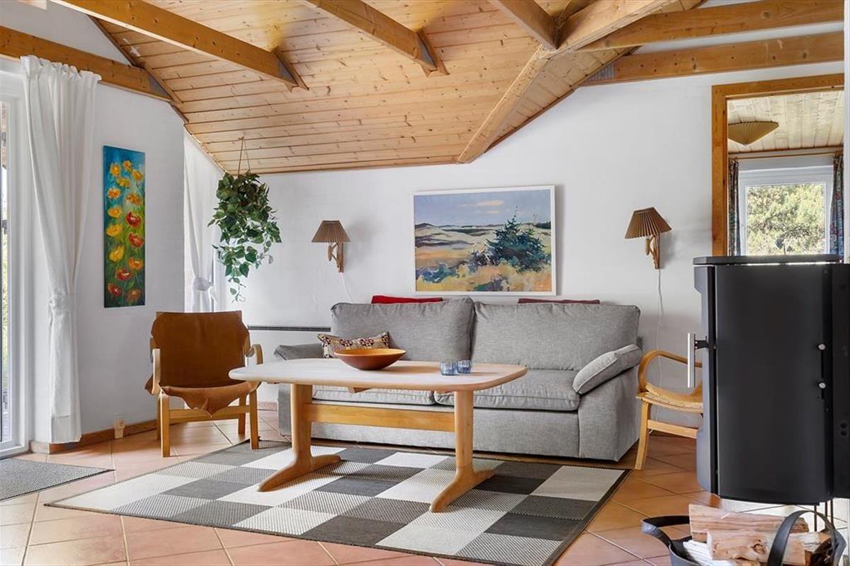 Es ist allerdings nicht nur die Umgebung, die Sie beeindrucken wird. Auch das Steinhaus selber wird Sie mit seinem ausgesprochen reizenden Erscheinungsbild und Einrichtungsstil schnell in den Bann ziehen. Freuen Sie sich im Wohnraum beispielsweise auf hohe Decken, eine ansprechende offene Balkenkonstruktion, schöne Fliesenböden und einen mittig platzierten Kaminofen, der an kühlen Abenden für behagliche Wärme und ein Maximum an echter dänischer Ferienhausgemütlichkeit sorgt. Die Möblierung fügt sich harmonisch in den Aufenthaltsbereich ein, der neben dem Wohnraum auch die offen integrierte und gut ausgestattete Küche beinhaltet, in der das Zubereiten der Mahlzeiten zum Vergnügen wird. Pure Erholung und Entspannung verspricht die vom Badezimmer aus zugängliche Sauna. Nach Ihrem Saunagang bieten sich die drei vorhandenen Schlafräume wunderbar für ein erholsames Nickerchen an.