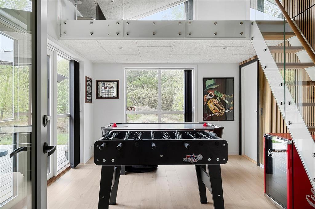In diesem schönen Ferienhaus wirst du deine Urlaubstage in einem hellen und großzügigen Rahmen verbringen. Das Haus wurde 2021 gebaut und verfügt über eine Wohnfläche von 138 m². Die Einrichtung ist sowohl stilvoll als auch äußerst funktionell. Mit vier guten Schlafzimmern und einer Dachnische mit zusätzlichen Matratzen können zwei Familien mit Kindern, eine Gruppe guter Freunde oder eine Großfamilie hier problemlos zusammen Urlaub machen. Darüber hinaus gibt es im Haus zwei Badezimmer, von denen das größte ein richtiger Wellnessraum mit Whirlpool und Sauna ist. Wenn du gerne Tischfußball und Airhockey spielst, kannst du damit viele Stunden im Aktivitätsraum verbringen. In dem elegant eingerichteten Aufenthaltsbereich gibt es reichlich Gelegenheit, sich in der offenen Küche um das Essen zu kümmern und es sich im Sofa in der Nähe des Brennofens gemütlich zu machen.