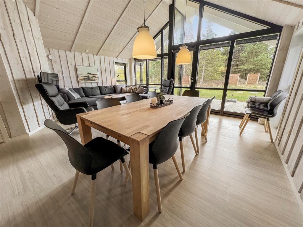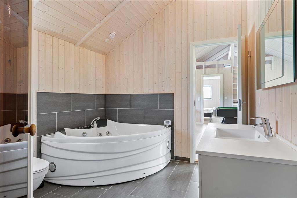 Das Ferienhaus wurde 2016 aus gutem Qualitätsmaterial gebaut. Dass es sich hier um ein modernes Ferienhaus handelt, kann man deutlich im Inneren erkennen, denn die Einrichtung ist sowohl elegant als auch komfortabel. Du kannst dich auf insgesamt 150 m² entfalten, die u.a. einen großen und schönen Aufenthaltsraum mit integrierter Küche beinhalten. Alle vier Schlafzimmer sind jeweils mit einem Doppelbett und Fußbodenheizung ausgestattet, und zusätzlich gibt es noch zwei Schlafplätze auf der Dachnische. Der Grundriss enthält ebenfalls zwei Badezimmer, von denen das eine auf luxuriöse Art und Weise mit Whirlpool und Sauna eingerichtet ist. Nach einem ausgefüllten Tag mit Ausflügen auf Rømø ist es wohltuend, sich im warmen Whirlpool und in der Sauna zu entspannen und neue Kräfte zu sammeln. Möchtest du etwas mehr Action, kannst du im Aktivitätsraum zusammen Billard spielen oder ein Tischfußballturnier austragen.