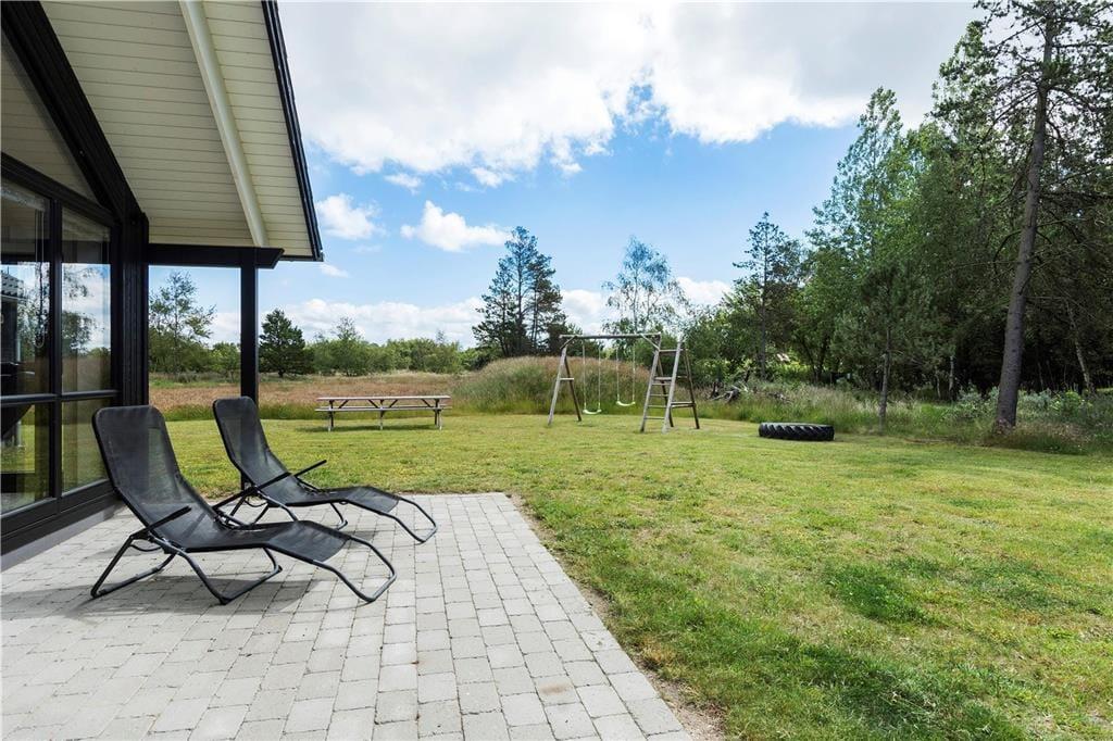 Das 2500 m² große Grundstück besteht aus einer Rasenfläche, einer mit Schotter belegten Einfahrt und einer großen, sonnenüberfluteten überdachten Fliesenterrasse. Hast du kleinere Kinder mit im Urlaub, werden diese ganz sicher von dem Spielgerüst und dem Sandkasten begeistert sein, während die Erwachsenen wahrscheinlich die bequemen Gartenmöbel bevorzugen werden. Das Wildnisbad, das mit Feuerholz beheizt wird, wird ganz bestimmt ein großer Hit, denn es ist die perfekte Art und Weise, ganz herunterzukommen und die Urlaubsstimmung zu genießen.