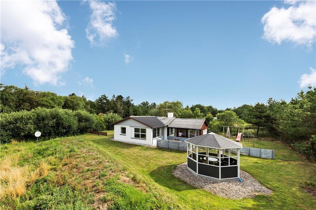 Lediglich 500 Meter trennen dich bei diesem gemütlichen Ferienhaus, das auf einem großen Naturgrundstück liegt und mit einem ansprechenden Gartenpavillon besticht, vom beeindruckenden Sønderstrand.