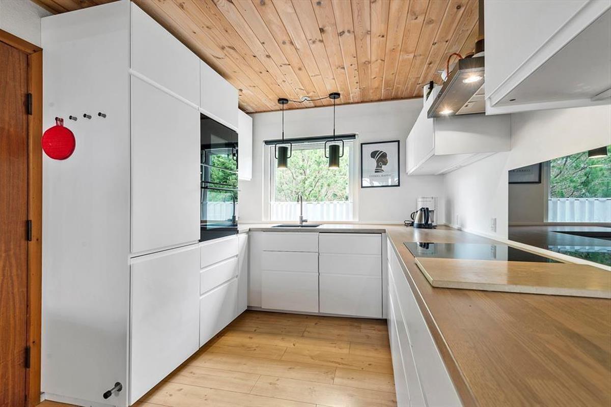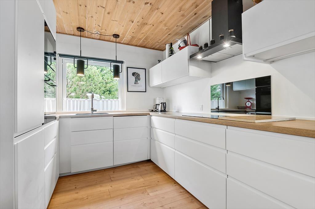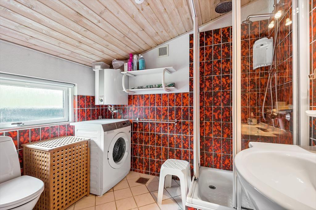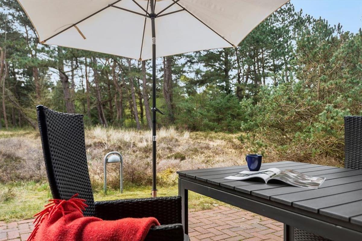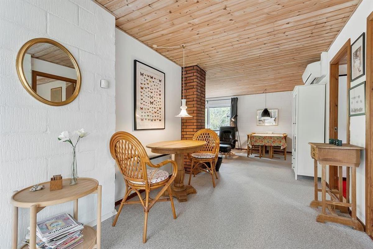 In einem bewaldeten Ferienhausgebiet, nur einen Kilometer abseits des Sønderstrands, erwartet dich dieses gemütliche und gut eingerichtete Ferienhaus. Inmitten der wunderbar natürlichen Umgebung kannst du dich nach Herzenslust frei entfalten - dies gilt nicht zuletzt für den Wohnraum, der dich mit einem ansprechenden Blick auf die hohen Fichten des Grundstücks und die wild wachsenden Pflanzen verwöhnt.