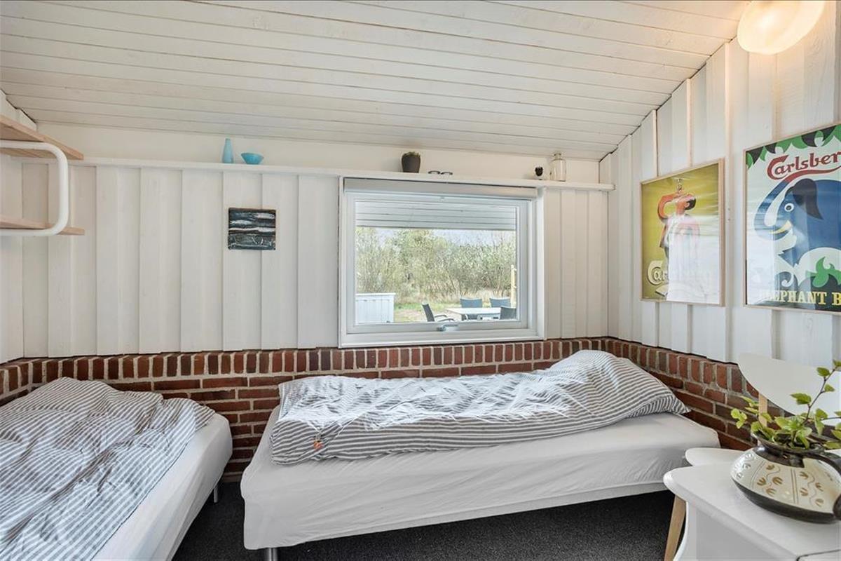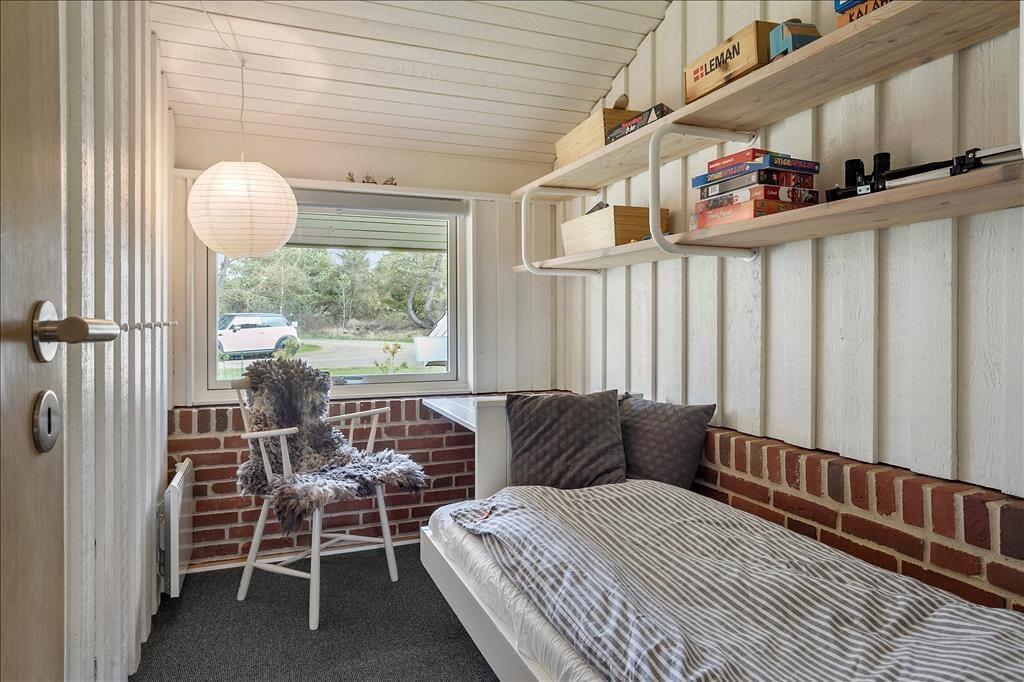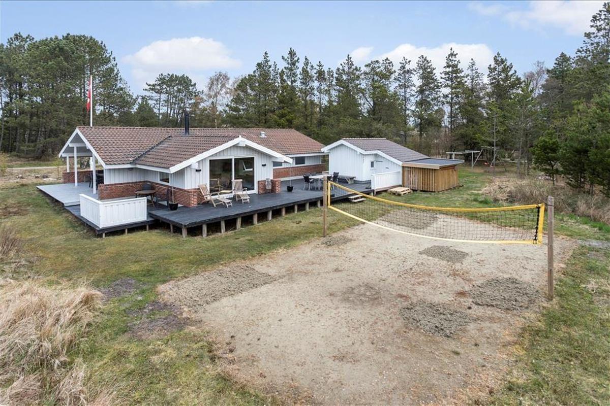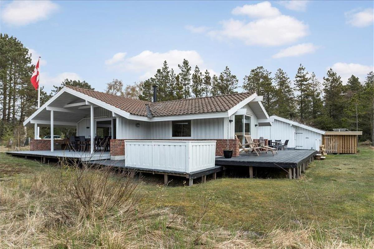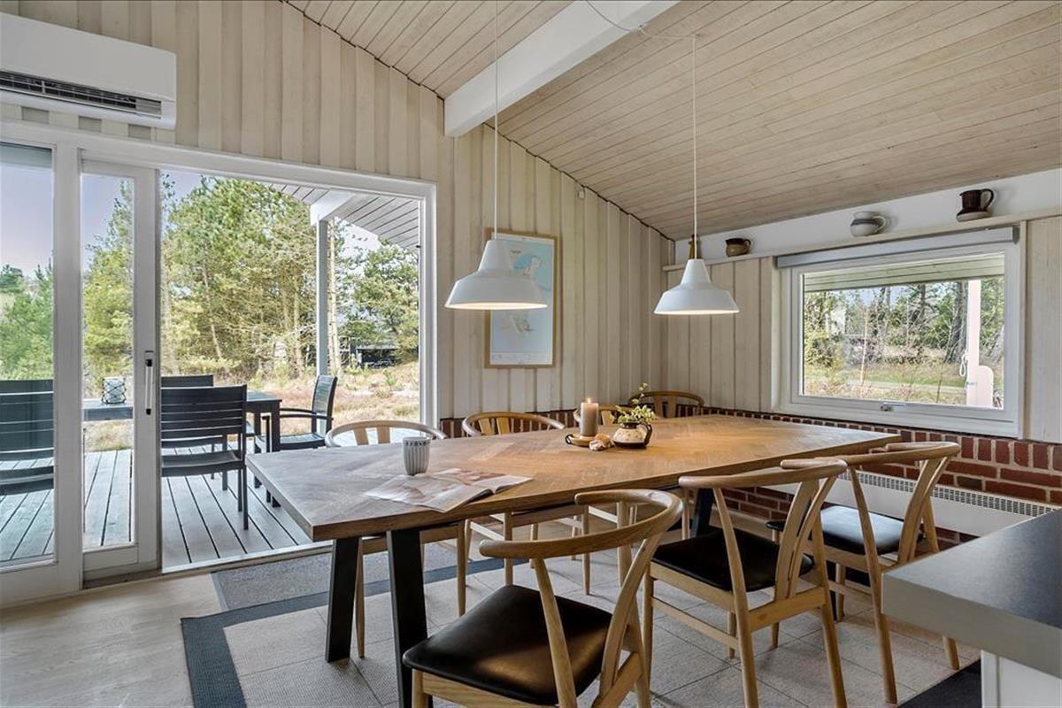 Das Ferienhaus empfängt dich mit einer vernünftig und wohldurchdacht aufgeteilten Wohnfläche, die sich aus einem Aufenthaltsbereich, Schlafräumen und praktischen Räumlichkeiten, wie einem Badezimmer und einem Hauswirtschaftsbereich, zusammensetzt. Sämtliche Räumlichkeiten präsentieren sich in einem hellen und gepflegten Zustand. Dies gilt auch für das mit einem Doppelbett ausgestattete Schlafzimmer im Nebengebäude. Das Haupthaus beherbergt vier Schlafräume, von denen zwei mit je einem Einzelbett eingerichtet sind. Das dritte Schlafzimmer beinhaltet zwei Einzelbetten und das vierte und größte ein Doppelbett. Zum zentralen Sammelpunkt aller Mitreisenden wird sicherlich schnell der Aufenthaltsbereich im Haupthaus avancieren, der die offene Küche und den Wohnraum harmonisch in sich vereint. Mit seinem herrlichen Lichteinfall, den hohen, schrägen Decken und der weißen Holzvertäfelung der Wände schafft dieser Raum ein helles, luftiges und behagliches Wohnambiente. Ein Maximum an echter dänischer Ferienhausgemütlichkeit garantiert dir der romantisch knisternde Kaminofen. An kalten Tagen wird dieser durch eine moderne Wärmepumpe unterstützt, die für angenehme Raumtemperaturen während geselliger Runden am Esstisch oder gemütlichen Abenden auf der ansprechenden Polstergarnitur sorgt.