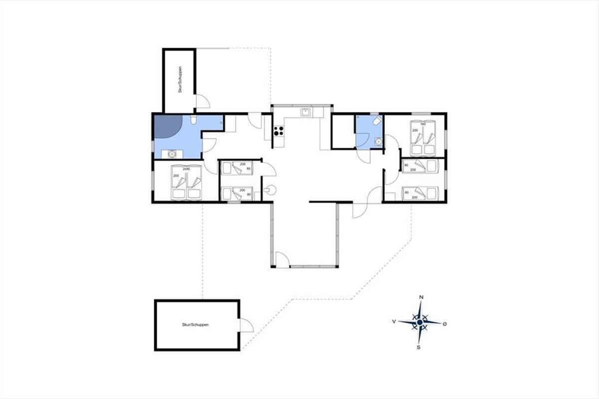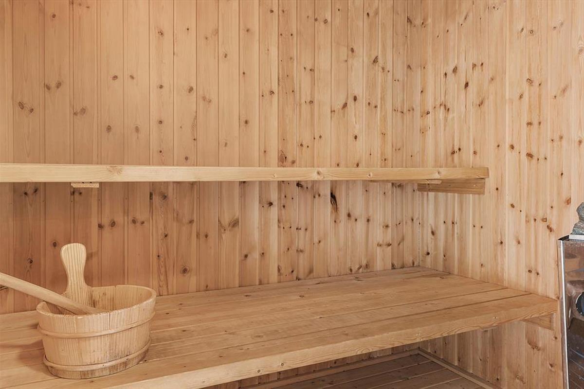 Im Mittelpunkt des Ferienhauses befindet sich der Wohnbereich mit einer offenen Küche, einem langen Esstisch und einer großzügigen Sofaecke, also ein idealer Ort für gemütliches Beisammensein. Der Flachbildfernseher sorgt bei Bedarf für Unterhaltung und wenn es draußen kühl ist, hast du die Möglichkeit, den Brennofen anzumachen, so dass sich die kuschelige Wärme im ganzen Haus ausbreiten kann. Auch der Whirlpool und die Sauna, die auf die beiden Badezimmer verteilt sind, laden an kühlen Tagen oder Abenden zum Wohlfühlen und Verwöhnen ein. Wenn es Zeit zum Zubettgehen ist, stehen dir vier gute Schlafzimmer zur Verfügung. Schlafzimmer und Badezimmer sind übrigens an den gegenüberliegenden Enden des Hauses verteilt, und eine solche Raumaufteilung macht dieses Ferienhaus ideal für zwei Familien, die gemeinsam Urlaub machen möchten.