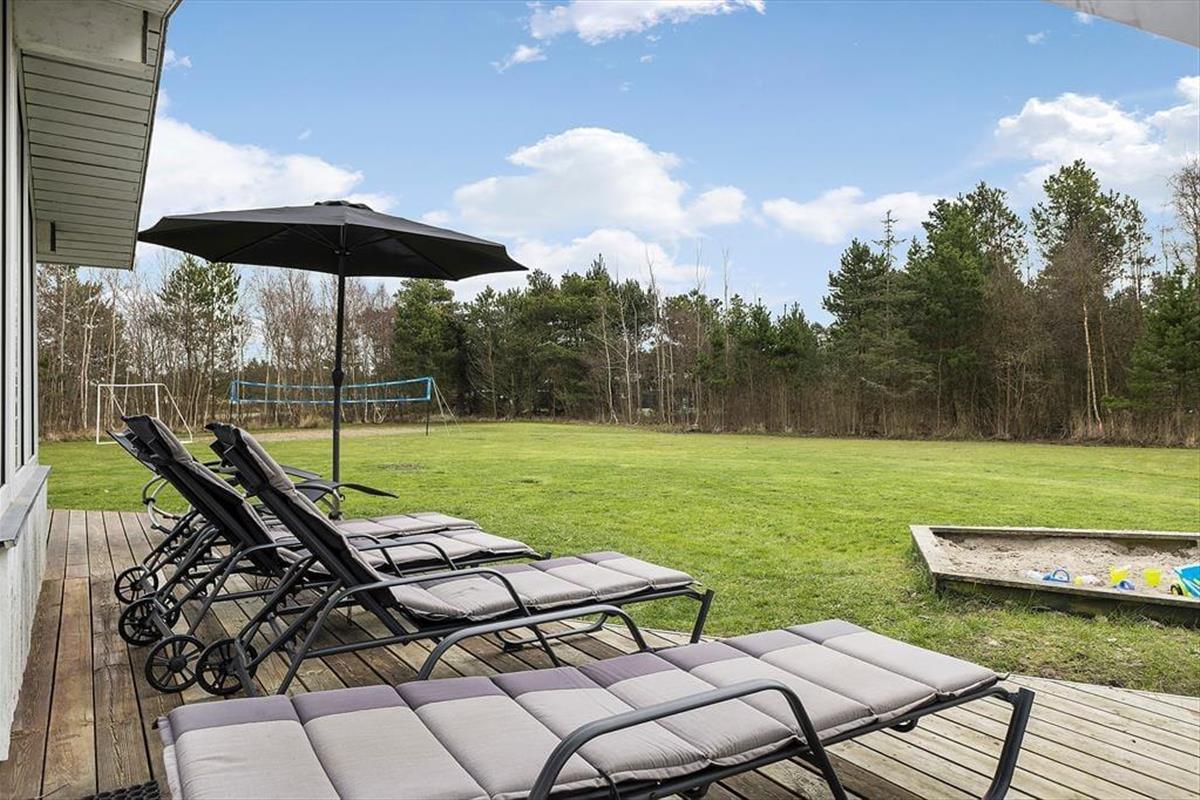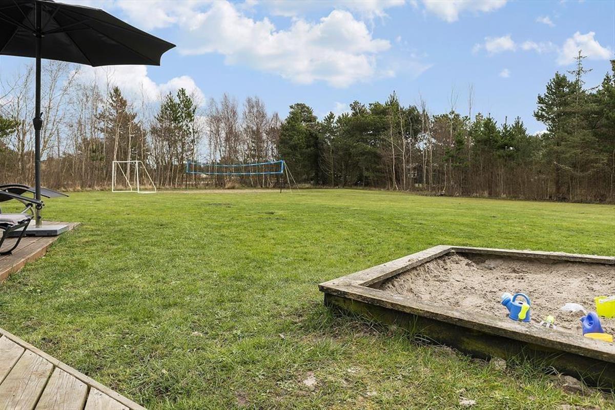 Auf dem 2800 m² großen Naturgrundstück gibt es viel Platz zum Spielen, Ballspielen und Ausruhen. Letzteres kann bequem auf der schönen Terrassenlandschaft stattfinden, wo du den ganzen Tag über einen sonnigen Sitzplatz finden kannst – und wenn du Schatten brauchst, kannst du den Sonnenschirm aufspannen. Direkt neben der Terrasse gibt es einen Sandkasten für die Kleinsten und auf der anderen Seite des Hauses können sie sich beim Schaukeln, Klettern und Rutschen auf dem Spielgerüst austoben. Für die sportbegeisterten Familienmitglieder gibt es sowohl einen Volleyballplatz als auch ein Fußballtor, und wenn du lieber hinaus in die Natur möchtest, kannst du deine Laufschuhe schnüren oder dir die Fahrräder schnappen, bevor du dich auf den Weg in die wunderschöne Landschaft von Rømø machst.
