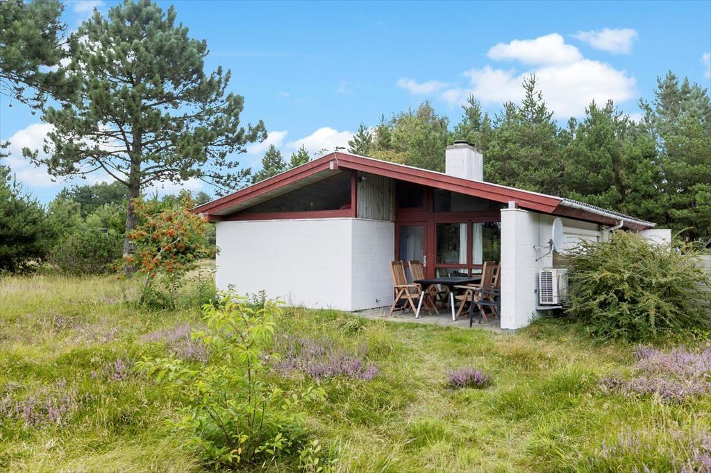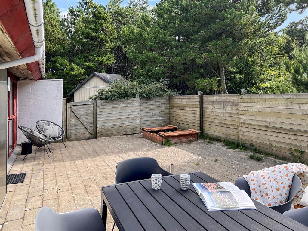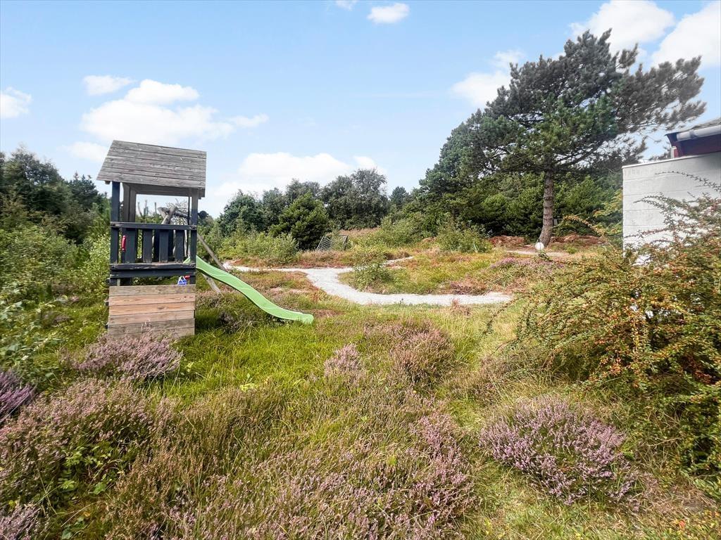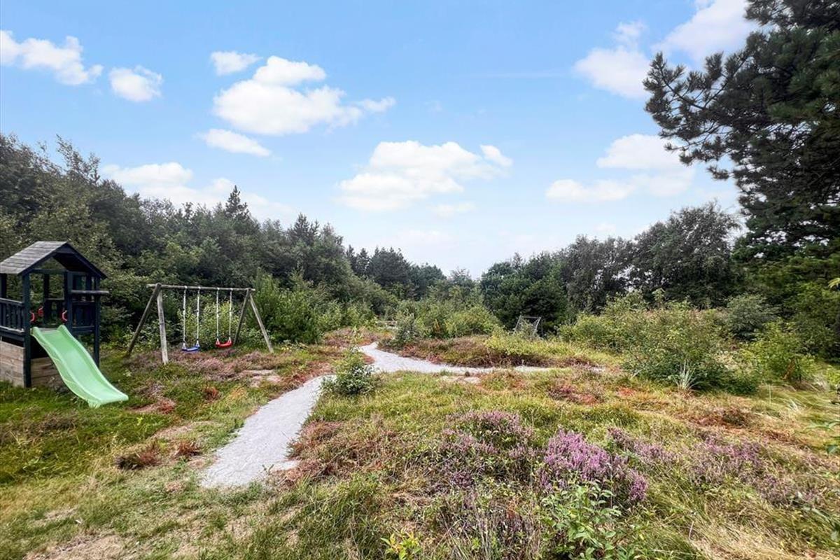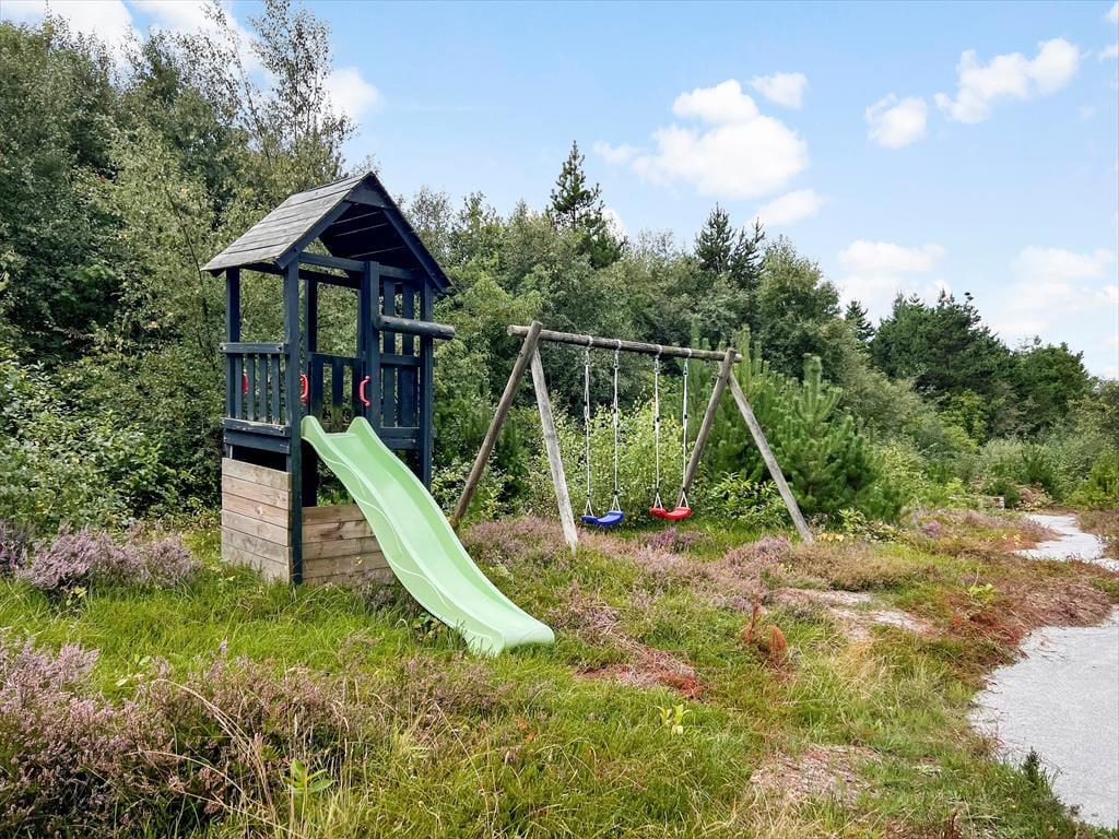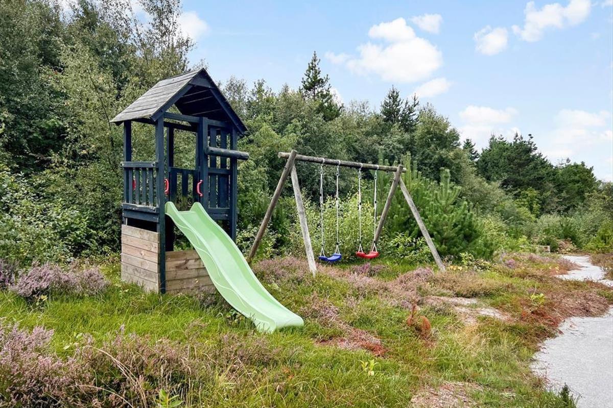 Das Naturgrundstück ist mit seinen 2500 m² angenehm groß, und es ist wunderbar, den Blick auf lila Heidepflanzen, orange-rote Ebereschen und stolze Kiefern zu genießen, während du dich draußen entspannst. Inmitten all des Grüns steht eine Schaukel, und auf der Terrasse gibt es einen Sandkasten, sodass auch die jüngsten Feriengäste Spaß haben. Die große und offene Terrasse liegt günstig zur Sonne, und sie ist zudem von einem Zaun auf mehreren Seiten geschützt, sodass sie eine friedliche Oase ist, wenn du dich in einen Liegestuhl legen oder dich mit deiner Familie um den Gartentisch versammeln möchtest. Außerdem befindet sich eine überdachte Terrasse direkt am Wohnzimmer, und auch dies ist ein herrlicher Ort, um sich niederzulassen.