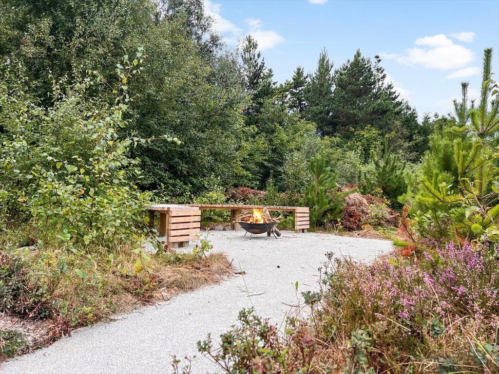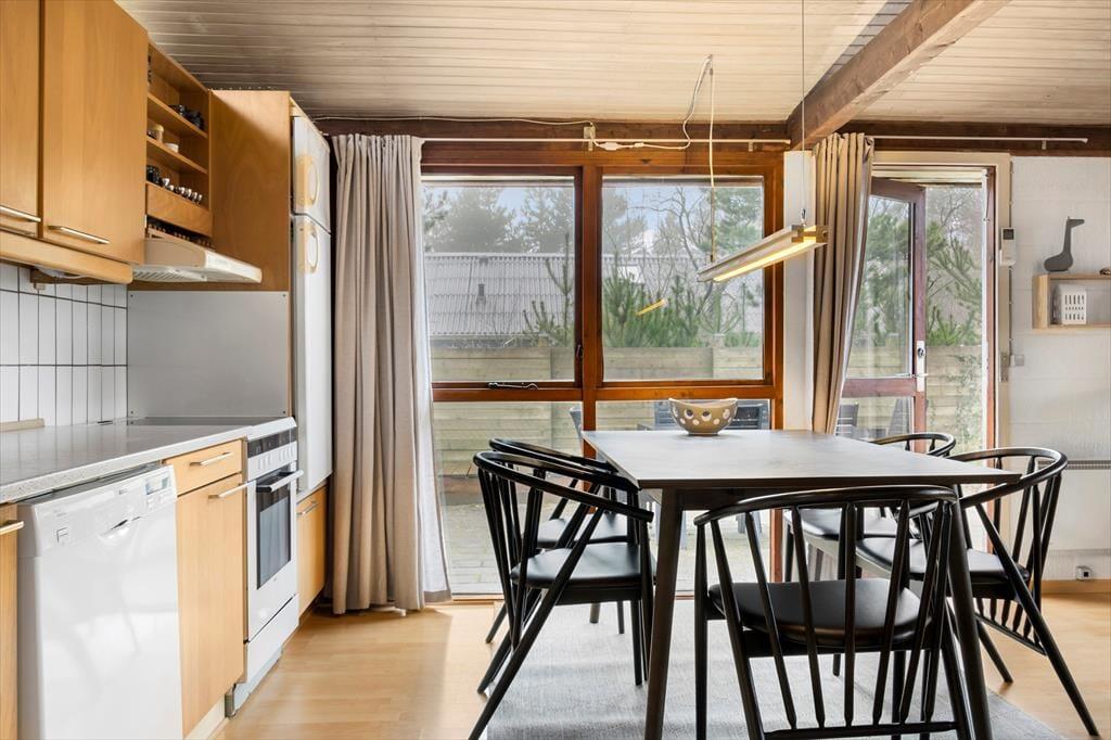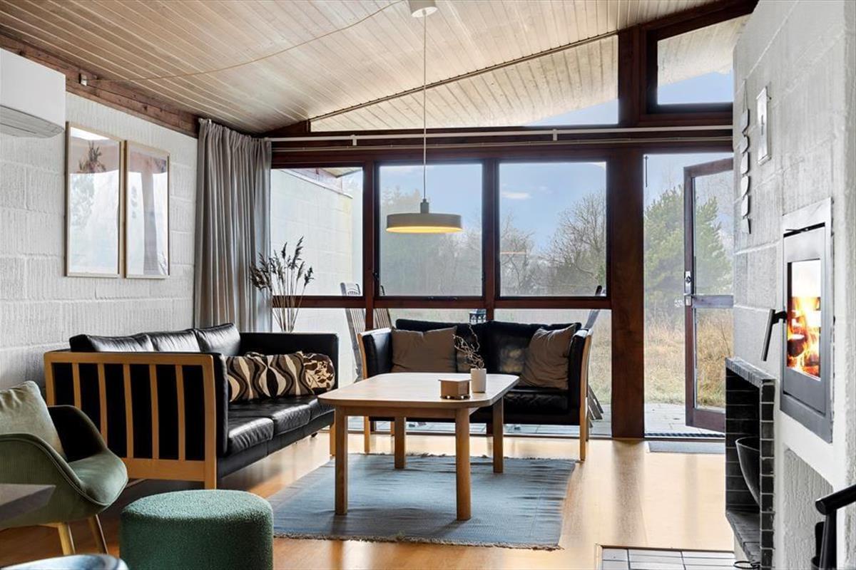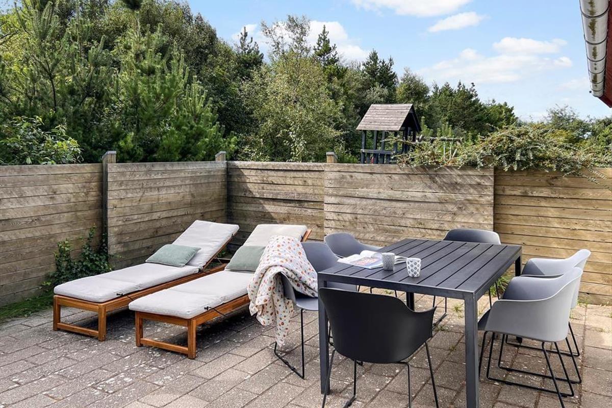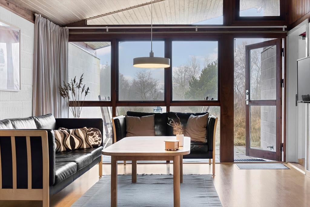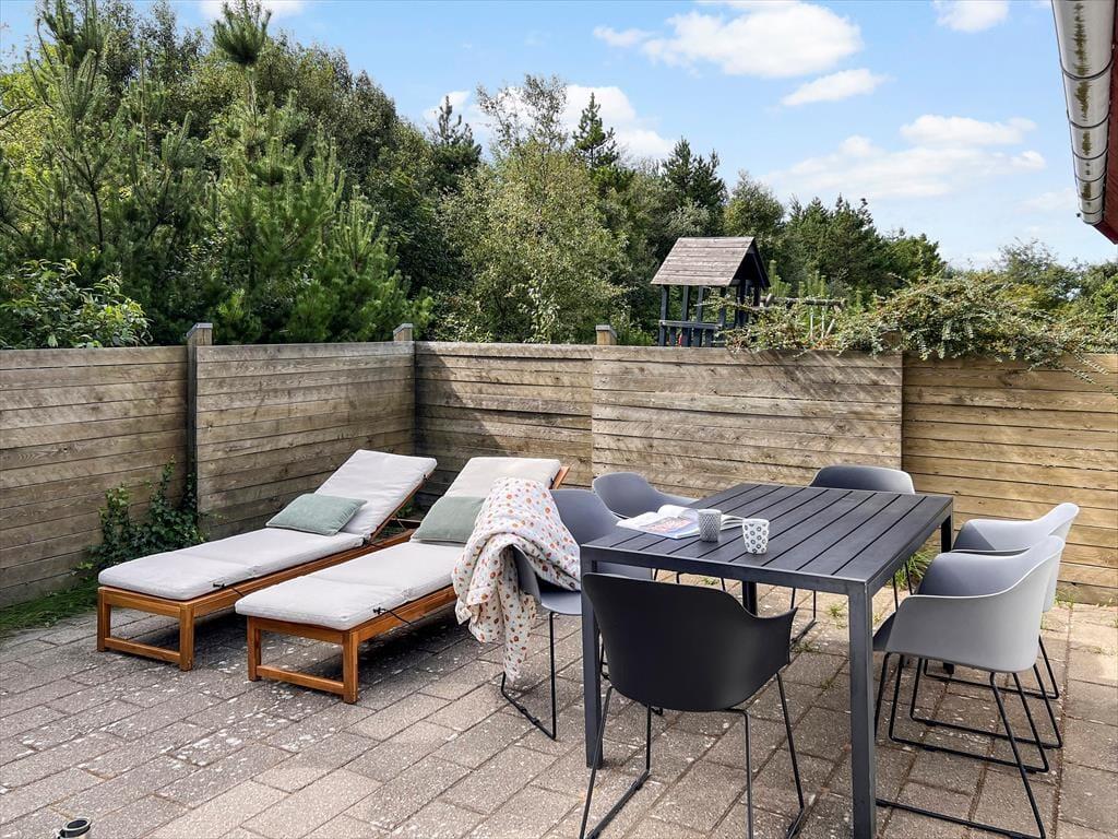 Das Naturgrundstück ist mit seinen 2500 m² angenehm groß, und es ist wunderbar, den Blick auf lila Heidepflanzen, orange-rote Ebereschen und stolze Kiefern zu genießen, während du dich draußen entspannst. Inmitten all des Grüns steht eine Schaukel, und auf der Terrasse gibt es einen Sandkasten, sodass auch die jüngsten Feriengäste Spaß haben. Die große und offene Terrasse liegt günstig zur Sonne, und sie ist zudem von einem Zaun auf mehreren Seiten geschützt, sodass sie eine friedliche Oase ist, wenn du dich in einen Liegestuhl legen oder dich mit deiner Familie um den Gartentisch versammeln möchtest. Außerdem befindet sich eine überdachte Terrasse direkt am Wohnzimmer, und auch dies ist ein herrlicher Ort, um sich niederzulassen.