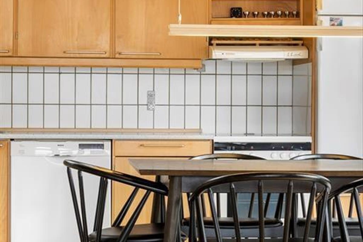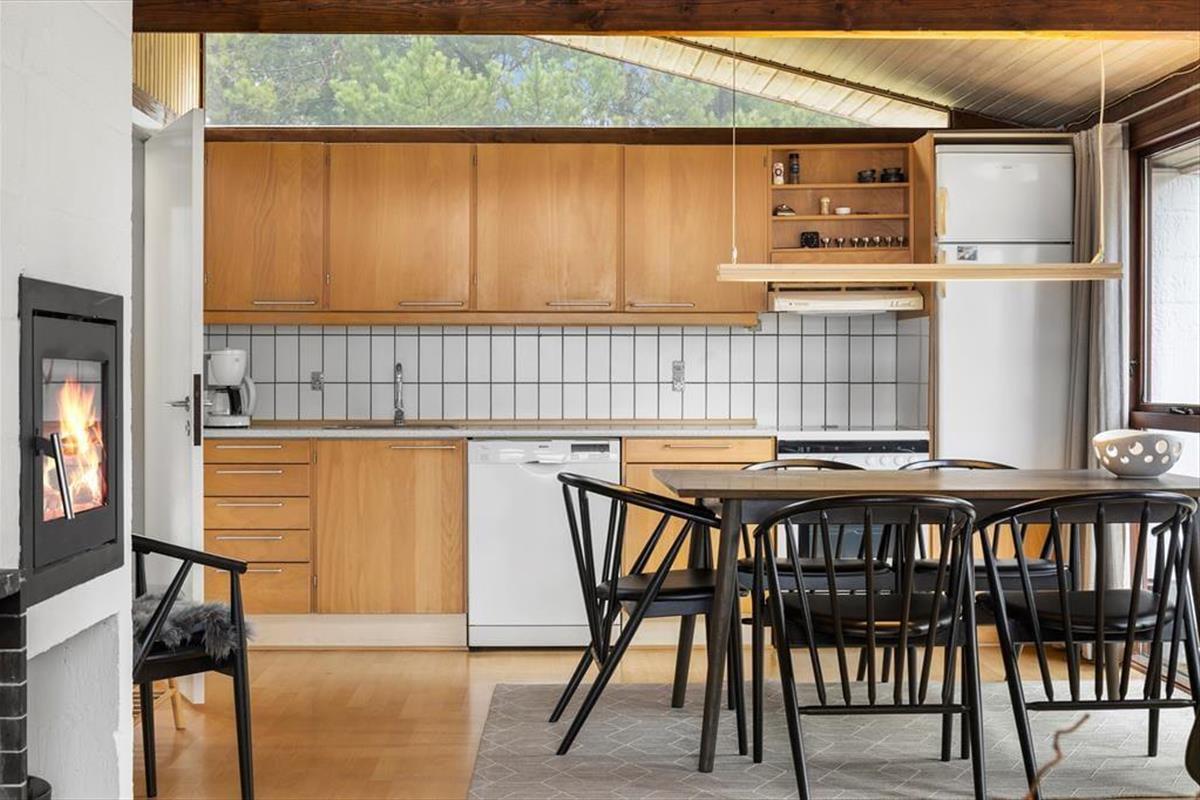 Wenn du die Tage in einem ganz ruhigen Tempo verbringen möchtest, hast du das perfekte Ferienhaus gefunden. Mit seiner angenehmen Atmosphäre und der komfortablen Einrichtung lädt das Wohnzimmer dazu ein, dass du und deine Lieben Bücher lesen, Kaffee trinken und Puzzles legen – oder was auch immer ihr euch in der Ferienzeit wünscht. Der eingebaute Kamin ist ein gemütliches Detail im Wohnzimmer, und die offene Küche ist mit allem Notwendigen ausgestattet, um Mahlzeiten zuzubereiten. Das Badezimmer ist wie die übrigen Räume in hellen Farbtönen gehalten, und in den drei Schlafzimmern gibt es insgesamt Schlafplätze für sechs Personen. Wenn du einen oder zwei Hunde mit in den Urlaub nehmen möchtest, sind sie im Haus ebenfalls willkommen.