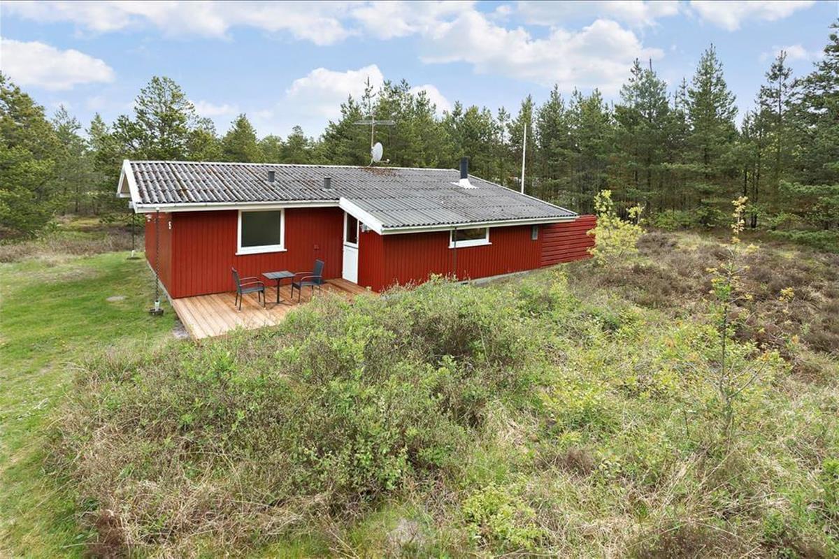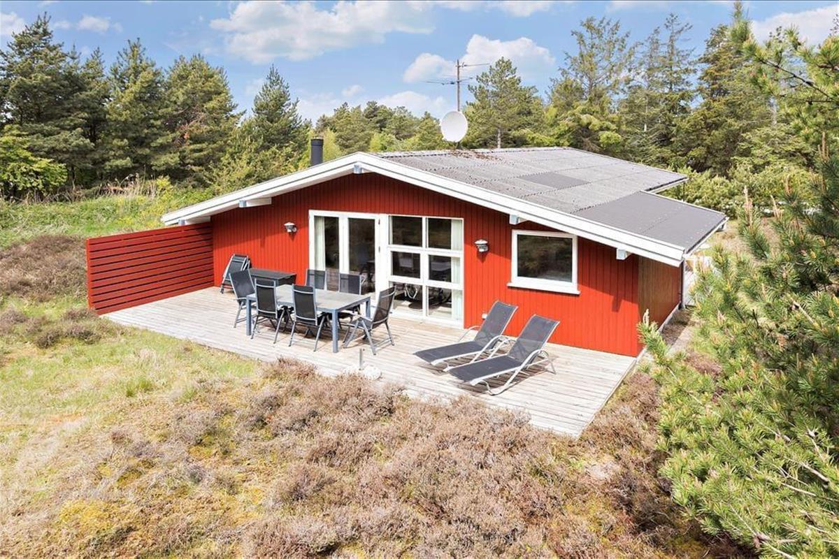 Heide und Kiefern, Vogelgesang und Sonnenschein, Urlaubsfrieden und frische Luft in den Lungen. Dies sind die charakteristischen Merkmale der schönen Umgebung hier am Sønderstrandvej, an dem dieses attraktive Ferienhaus auf einem großen und ungestörten Naturgrundstück liegt.