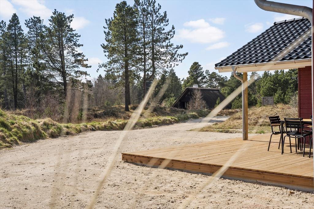 Draußen wartet eine schöne Terrasse, die zu unvergesslichen Momenten in der Sonne einlädt. Hier kannst du deinen Frühstückskaffee unter freiem Himmel genießen, abends köstliche Mahlzeiten grillen oder einfach mit einem guten Buch entspannen, während du deine Gedanken schweifen lässt. Der Terrassenbereich ist perfekt für sowohl Entspannung als auch gesellige Zusammenkünfte, und der gepflegte Garten bietet Platz für Spiel und Aktivitäten für die ganze Familie. Diese naturschöne Gegend ist ideal für lange Spaziergänge in der Vråby Baumplantage, wo du Frieden und Ruhe in der Natur finden kannst. Es ist nicht weit bis zum Sønderstrand, wo du den Sand zwischen deinen Zehen spüren und die frische Seeluft einatmen kannst.