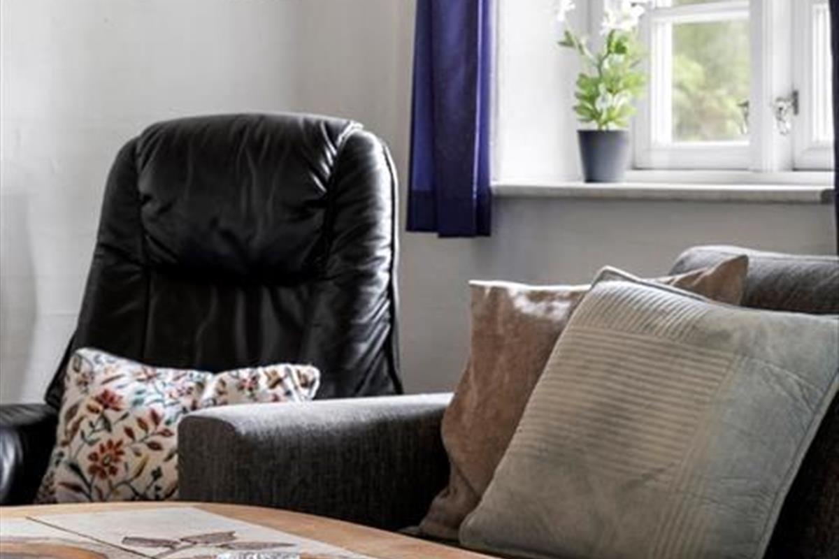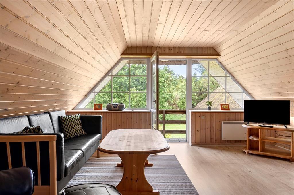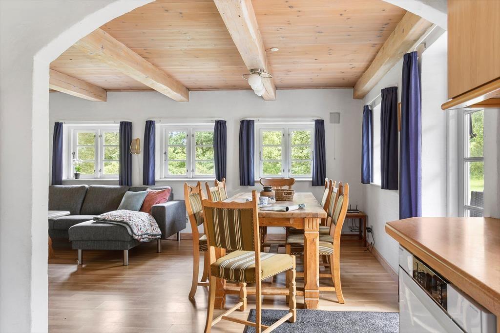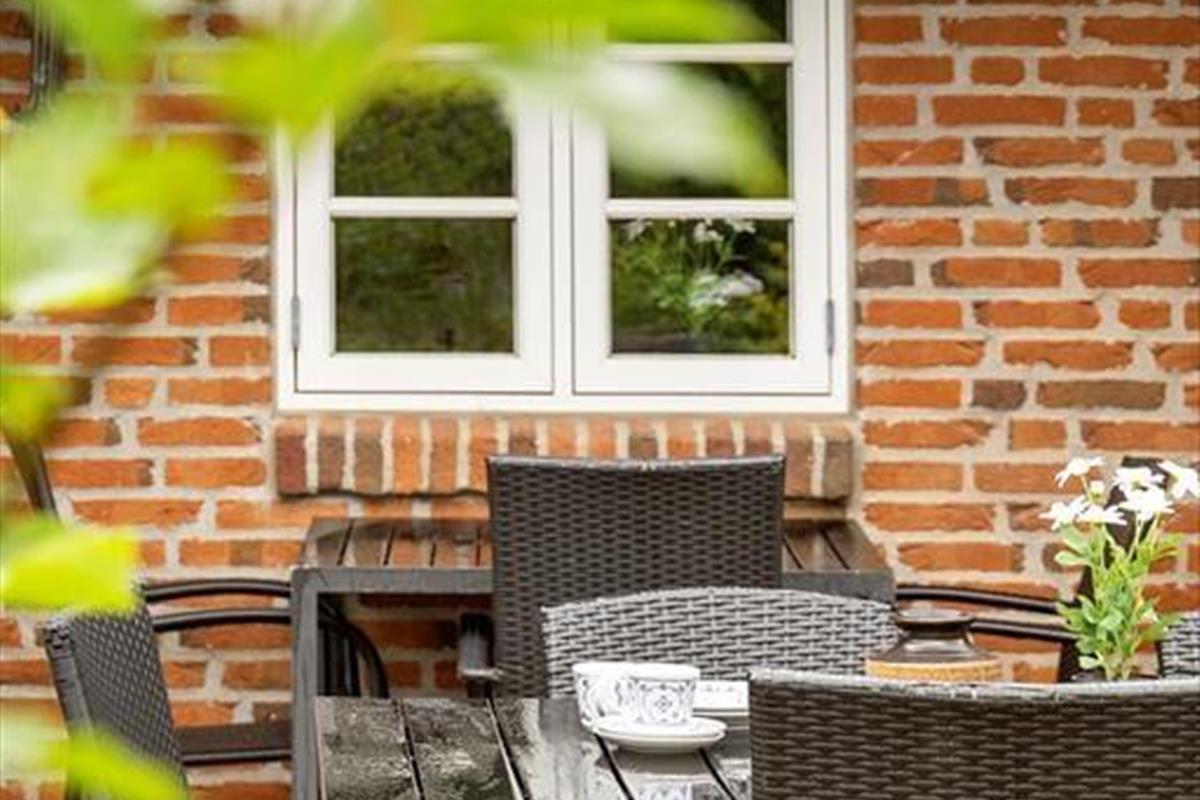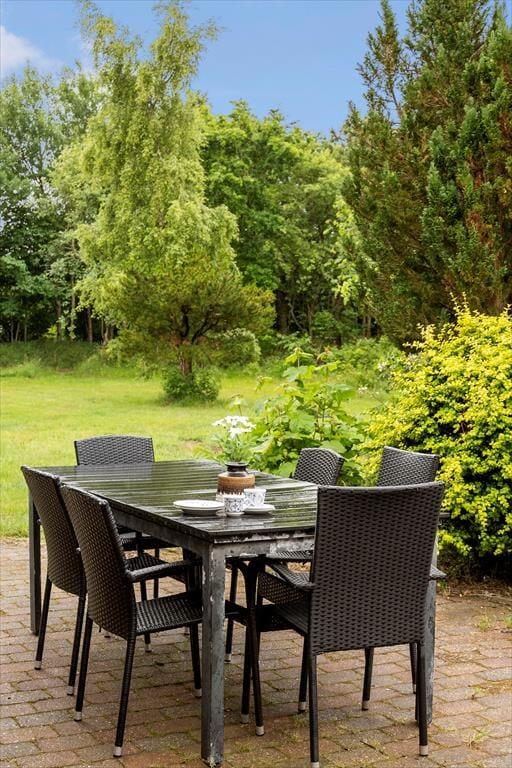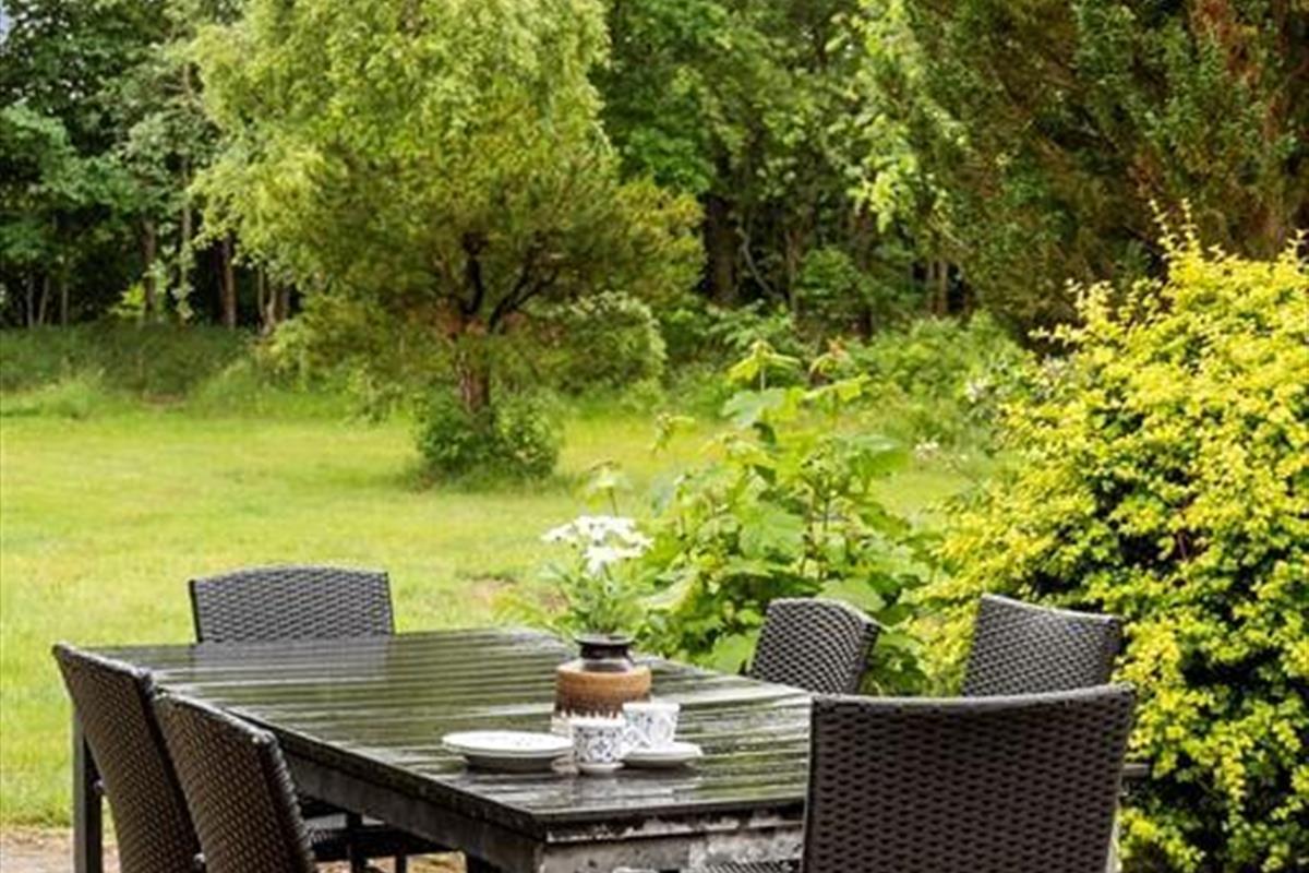 Draußen erwartet dich ein großer, uneinsehbarer Garten, in dem Raum für Spiel, Sport und Entspannung unendlich erscheint. Das fast parkähnliche Grundstück sorgt für ein Gefühl der Abgeschiedenheit, so als gäbe es fast keine Nachbarhäuser in der Nähe. Hier kannst du die frische Luft auf der Terrasse genießen, wo Grillabende und Sternenhimmel unvergessliche Momente schaffen. Die Kinder können wild auf dem grünen Rasen spielen oder eine Höhle zwischen den Bäumen bauen. Das Haus liegt ganz in der Nähe von Thomsens Reitzentrum, wo du als Mieter dieses Ferienhauses 10 % Rabatt erhältst, wenn du ein Pferd mietest.