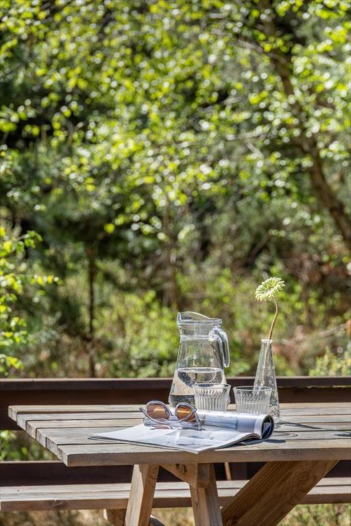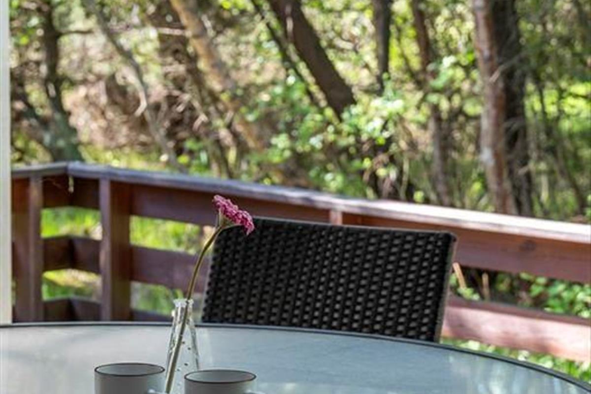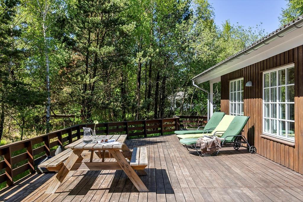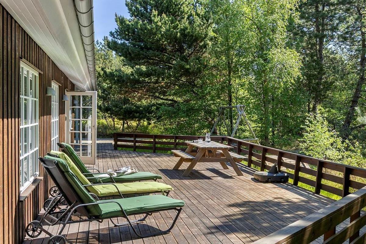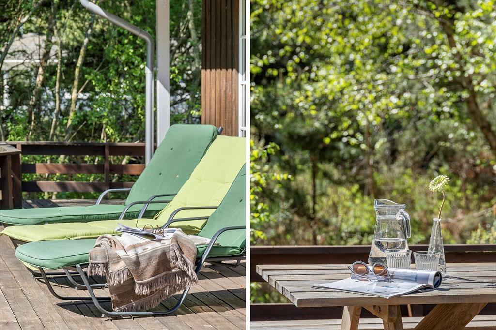 Das private Außenbereich auf diesem großen, gepflegten Grundstück bietet viele Möglichkeiten für das Leben im Freien. Hier gibt es hohe Bäume, die angenehmen Schatten spenden, sowie einen Shelter, in dem du bei schönem Wetter unter den Sternen schlafen kannst. Die zahlreichen Terrassenbereiche sind ideal zum Sonnenbaden, Lesen oder um morgens bei einer Tasse Kaffee den Blick in den grünen Garten zu genießen. Der große Garten lädt zum Spielen ein, mit Schaukel, Sandkasten und Platz für Ballspiele oder einfach nur zum Entspannen in den Liegestühlen, während die Gedanken inmitten der Natur abschweifen. Die Umgebung schafft einen friedlichen Rahmen für den perfekten Urlaub, in dem du wirklich die Ruhe spüren und die frische Meeresluft genießen kannst.