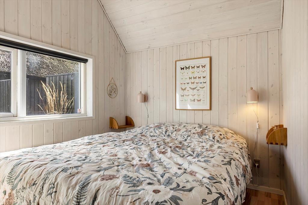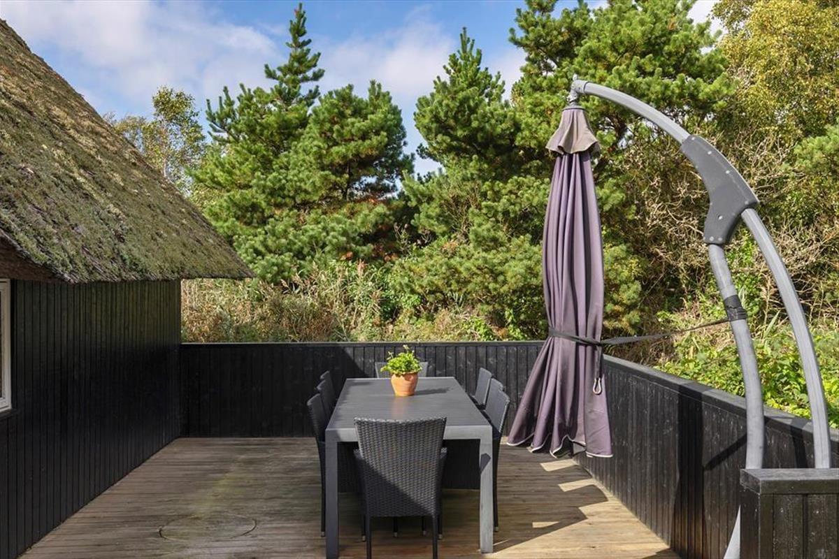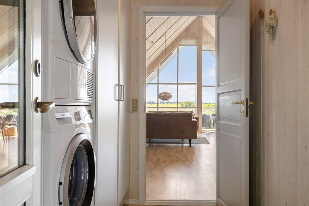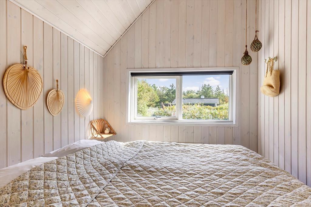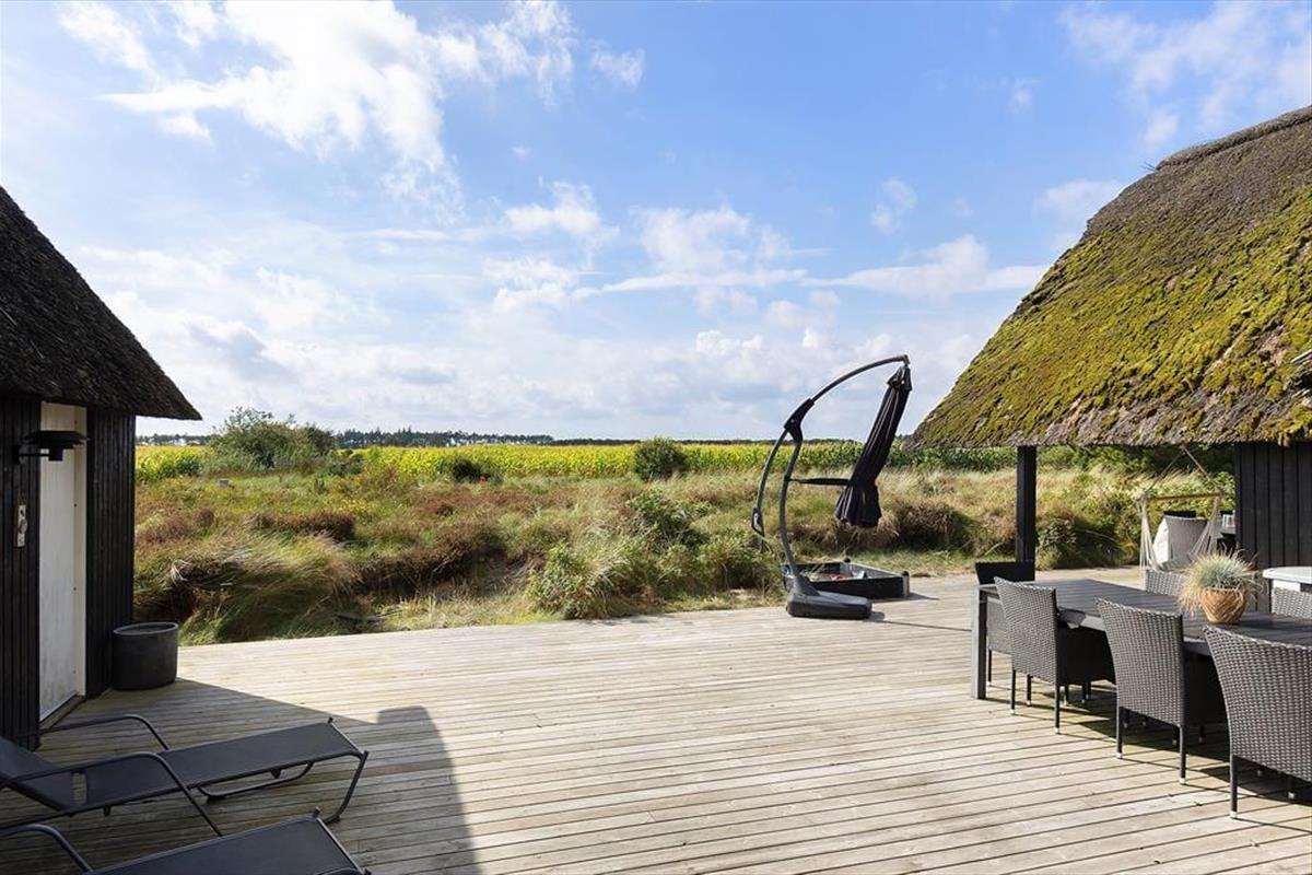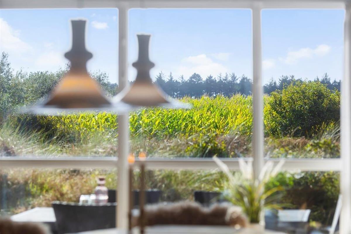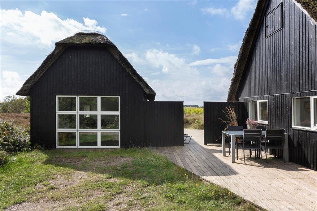 Auf der großen, teilweise überdachten Terrasse kannst du dich zurücklehnen und den weiten Blick über die offenen Felder in Richtung Sønderstrand genießen. An stillen Tagen hörst du sogar das Rauschen der Meereswellen – ein natürlicher Klang, der deine Ferientage besonders macht. Hier ist reichlich Platz für gemeinsame Mahlzeiten unter freiem Himmel oder ruhige Sonnenmomente. Vom Haus aus bist du schnell in der Vråby Plantage, wo sich lange Spaziergänge auf verschlungenen Pfaden anbieten. Wenn du deinen Hund mitbringst, wird er den eingezäunten Hundewald lieben, in dem er frei und ohne Leine laufen und spielen kann.