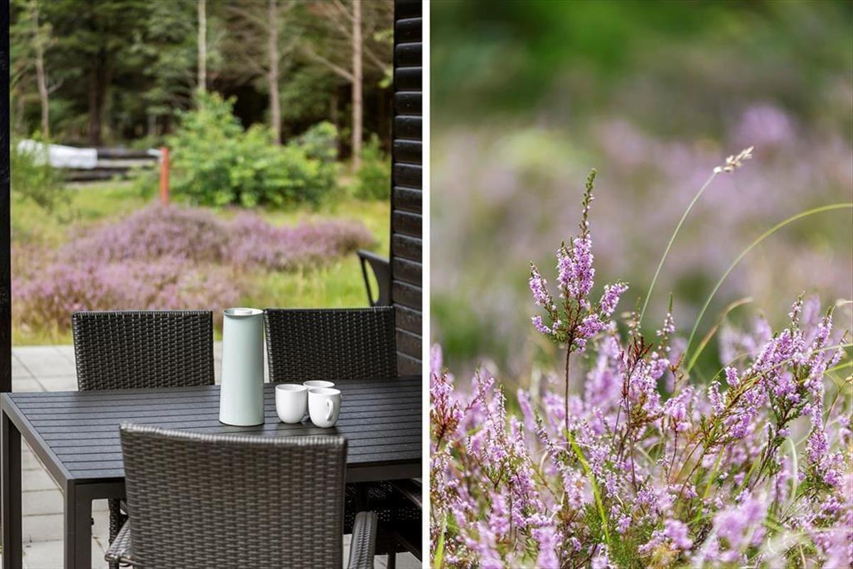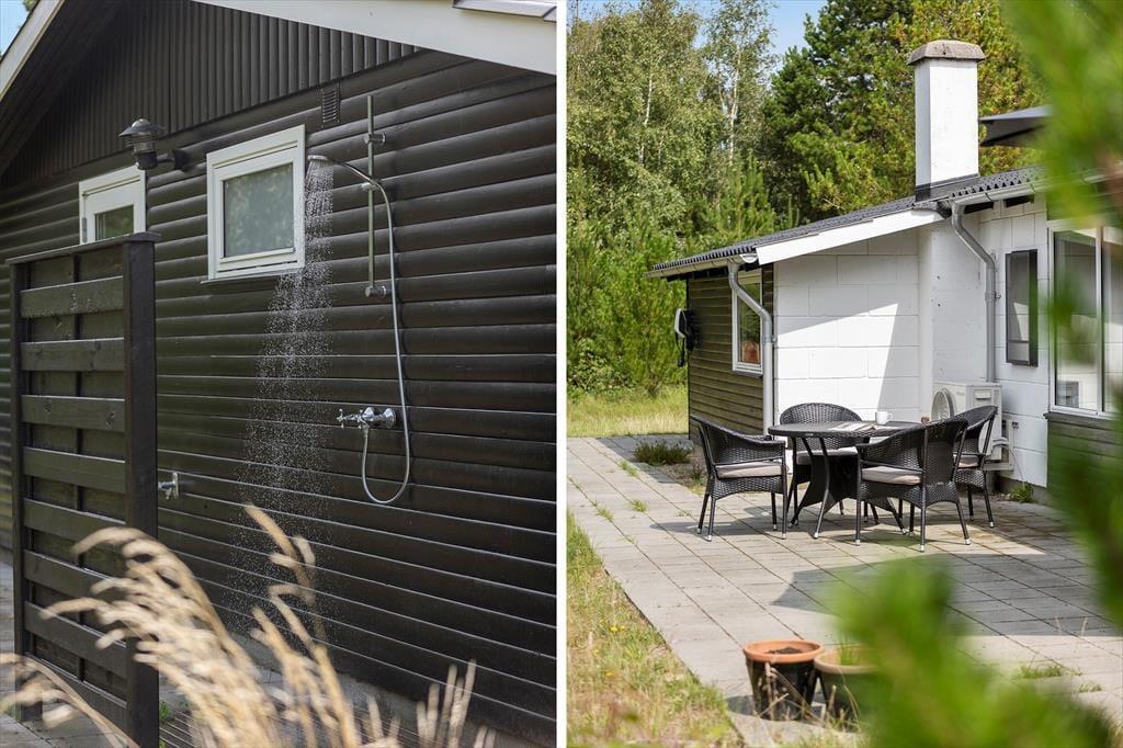 Draußen erwartet dich ein wunderschöner Garten mit Raum für Sonnen- und Schattenstunden. Das große Naturgrundstück von 2.600 m² ist wunderschön mit Heidekraut, Kiefern und Heidelbeeren. Hier findest du immer eine gemütliche Ecke und sonnige Plätze, die zu deiner aktuellen Stimmung passen. Unter der Außendusche mit Warm- und Kaltwasser kannst du dir, nach einem schönen Tag am Strand, den Sand und das Salz vom Körper spülen. Ob du morgens die Sonne genießen, abends grillen oder einfach nur entspannen möchtest – du wirst die vielen gemütlichen Orte im Garten lieben. Das große Gelände eignet sich perfekt für Spiele, Ballspiele oder einfach für entspannte Stunden in der friedlichen, naturnahen Umgebung.