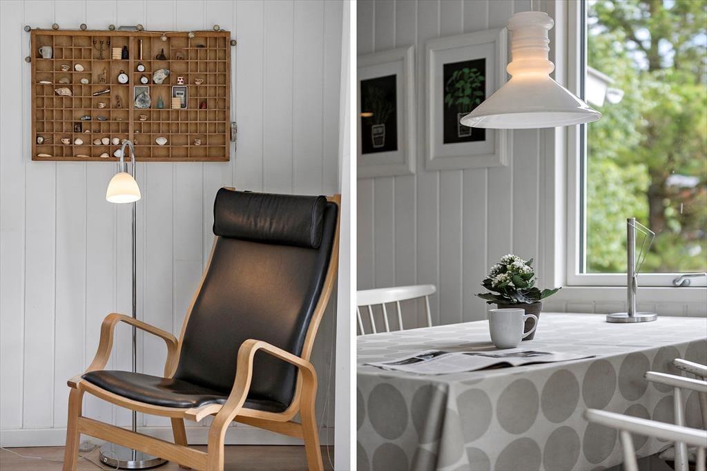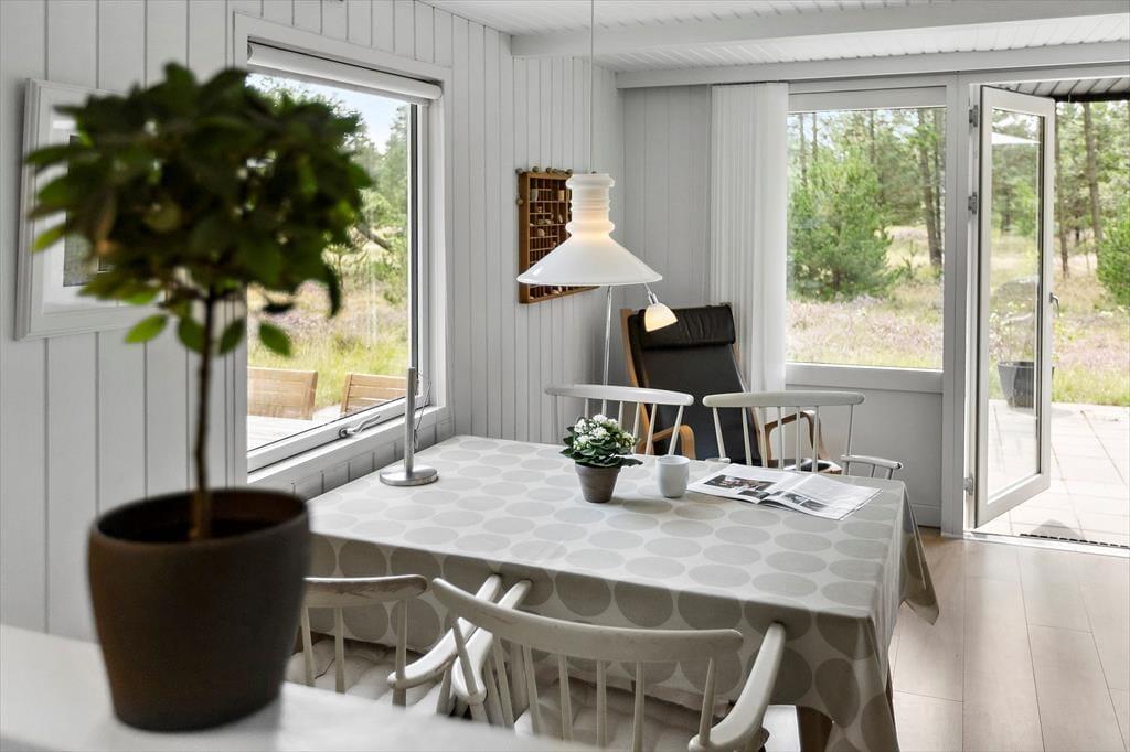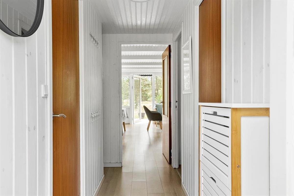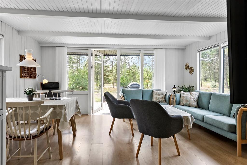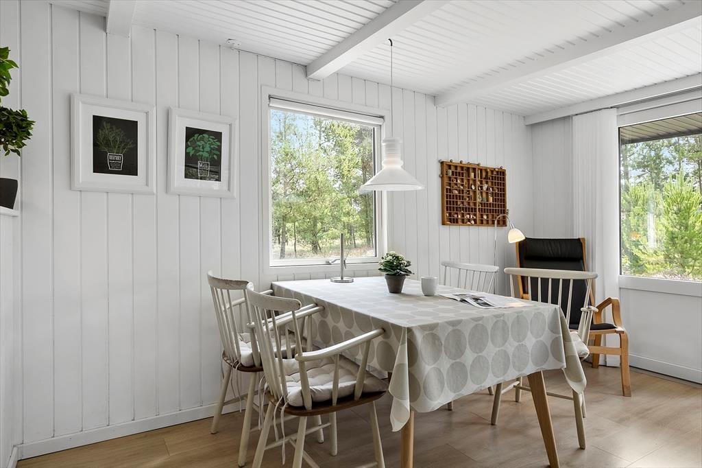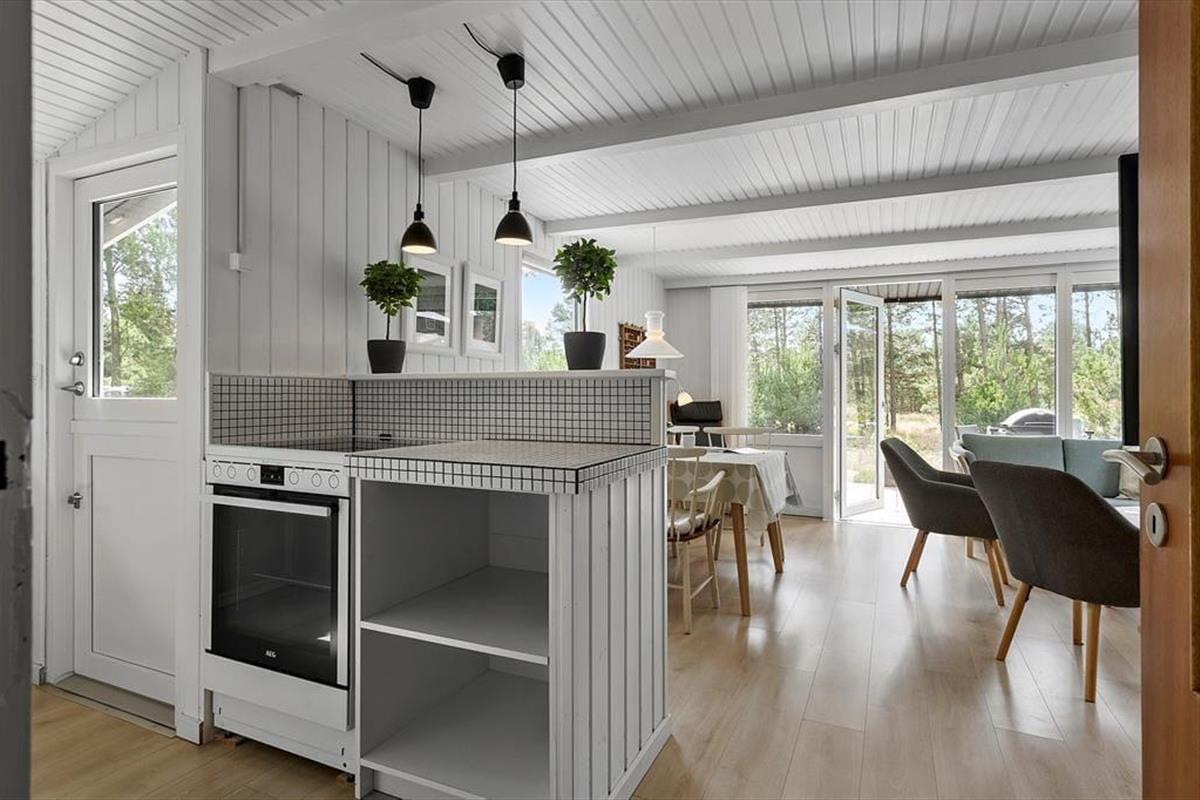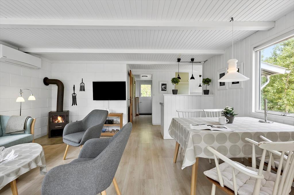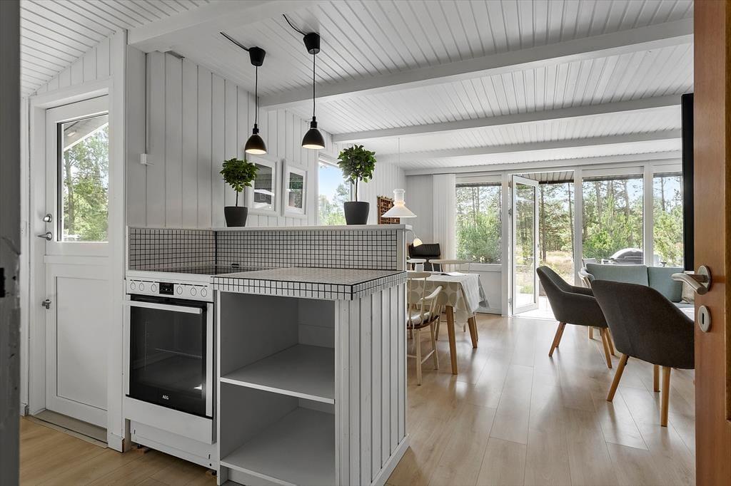 Träumst du von einem gemütlichen Ferienhaus, in dem die Natur direkt vor der Tür ist und das Licht durch Panoramafenster strömt? Dieses kürzlich renovierte Ferienhaus lädt dich ein, in ein helles, freundliches Zuhause einzutauchen, das modernen Komfort mit dem ursprünglichen Insel-Feeling verbindet. Die weißen Holzvertäfelungen und die Decken sorgen für ein leichtes und frisches Raumgefühl, während der helle Eichenboden und die sanften Farben eine warme und einladende Atmosphäre schaffen. Hier hast du viel Platz, um im Wohnzimmer am Brennofen zu entspannen, perfekt nach einem Tag am Strand oder in der Natur. Die beiden komfortablen Schlafzimmer bieten angenehme Schlafmöglichkeiten, die flexibel eingerichtet werden können, und in einem der Zimmer gibt es Platz für ein zusätzliches Kinderbett. Das renovierte Badezimmer mit sandfarbenen Fliesen, Fußbodenheizung, großer Dusche und Waschmaschine vereint Funktionalität und Komfort. Die Küche ist u.a. mit Glaskeramikherd und Mikrowelle ausgestattet. Kostenloses WLAN und Internet-TV sorgen für den perfekten Komfort und Unterhaltung.