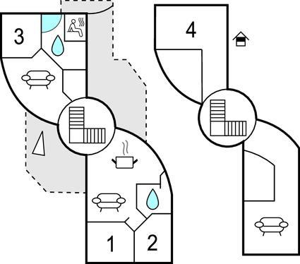 Woonkamer met open keuken - 2 Slaapplaatsen. (1-persoonsbed(den)).