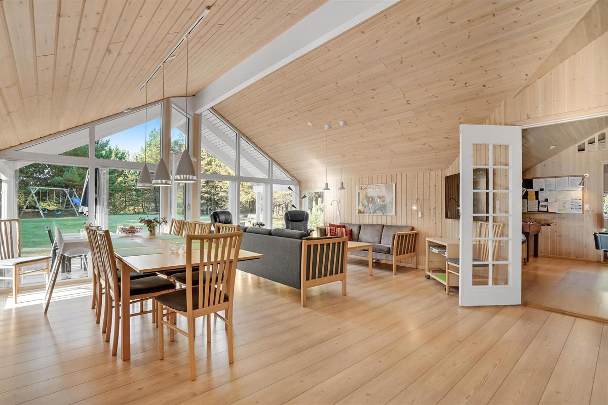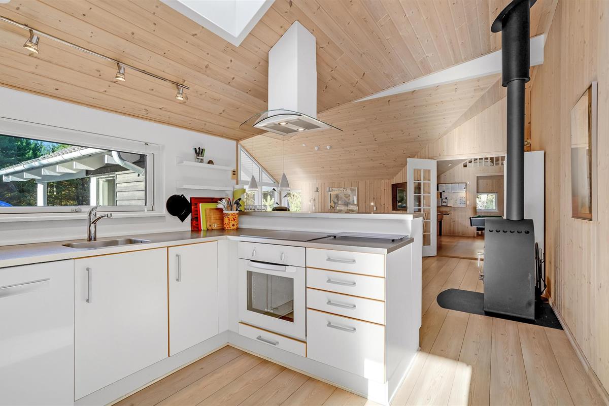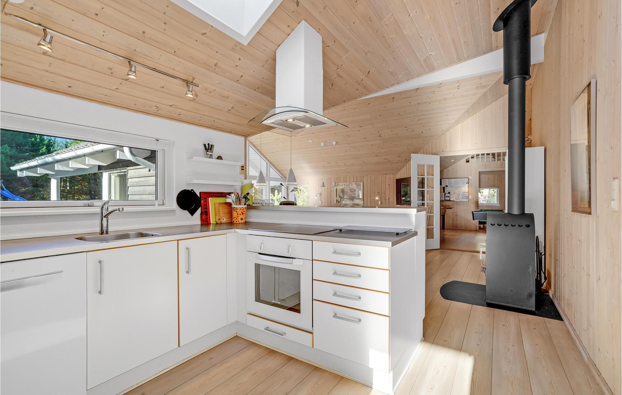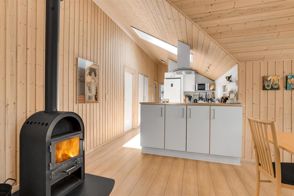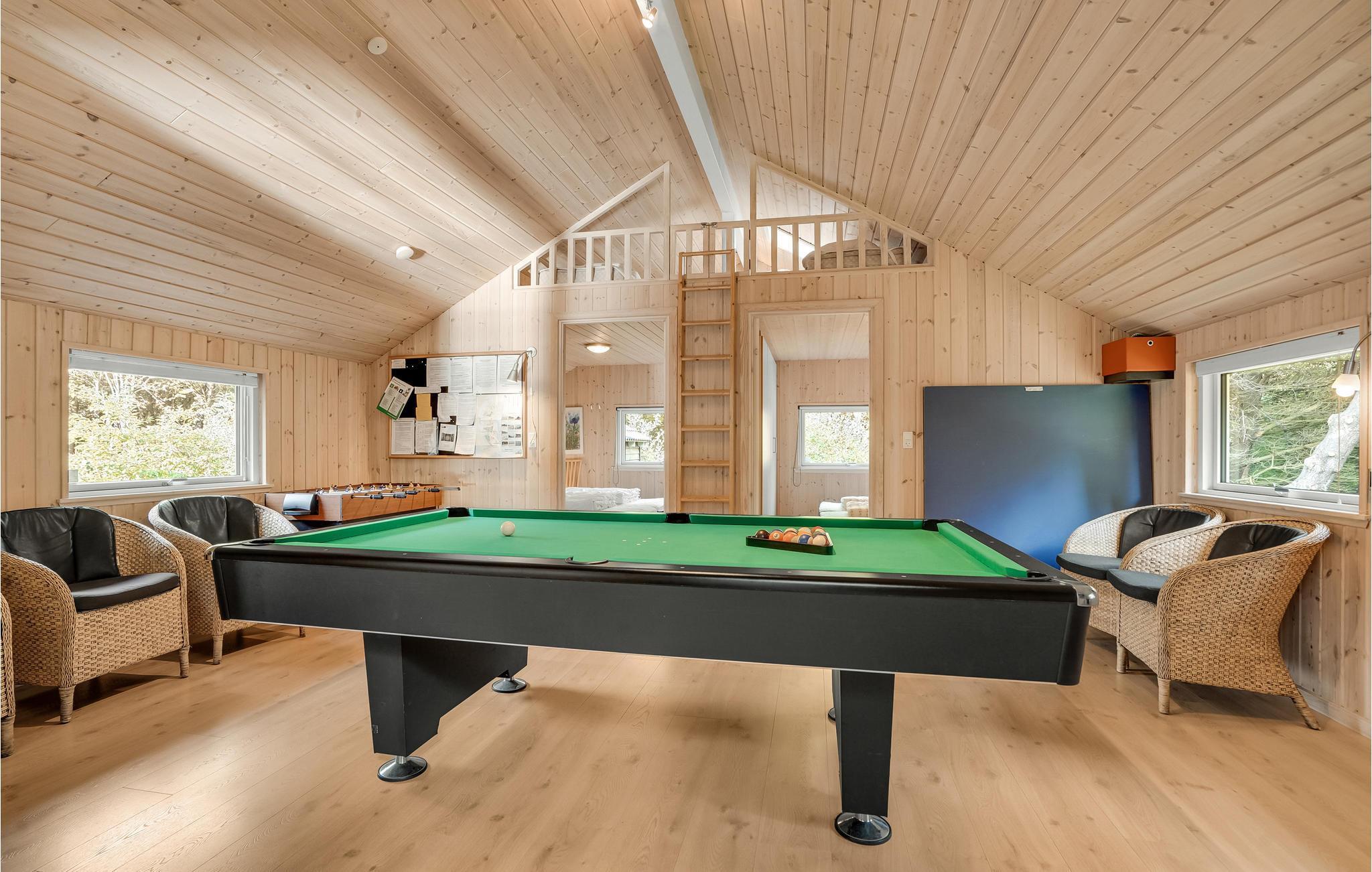 Een zeer natuurlijk, modern interieur met een harmonieuze mix van natuurlijke meubels en houten muren waar je het jezelf comfortabel kunt maken. Dit zeer verzorgde vakantiehuis biedt jou en je gezelschap een ruime woonkamer met veel mogelijkheden voor heerlijke ochtenden en avonden met de familie, zo is er een grote eettafel voor gezelschapsspelletjes en een houtkachel om de dag af te ronden. Op je open en gedeeltelijk overdekte terras kun je de verse vis laten sissen op de barbecue terwijl je geniet van de zon en de frisse lucht inademt. Je hebt ook een aantal activiteitenmogelijkheden ter plaatse, waaronder een tafeltennistafel, een trampoline en een pooltafel.