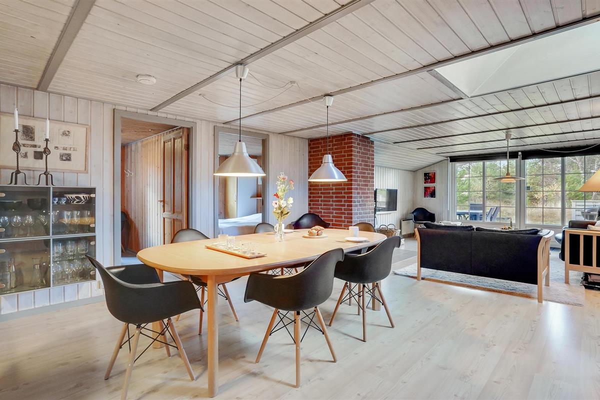 Het huis is ongestoord en ligt op een golvend perceel bij Sønderstrand. Hier kunt u zwemmen in de Noordzee, kitebuggyen of strandzeilen of vliegeren. Op de grond kunt u ongestoord zonnen. Het huis grenst aan een duin, hier vindt u bijna altijd windschaduw. Onder de vele gemakken biedt het huis een houtkachel voor gezellige herfst- of winteravonden en een sauna voor 4 personen. Een fantastische omgeving voor uw ontspanningsvakantie.
