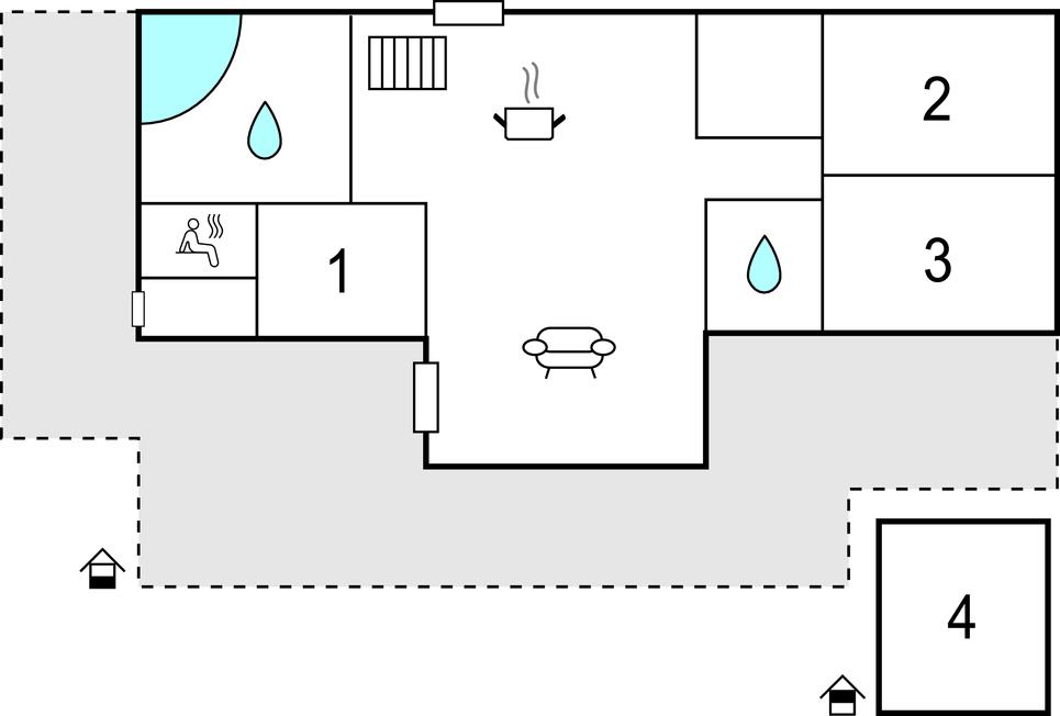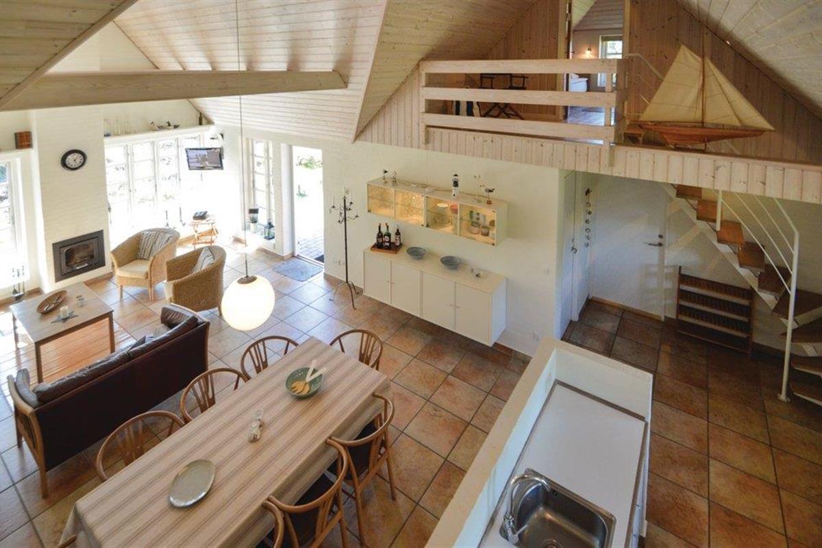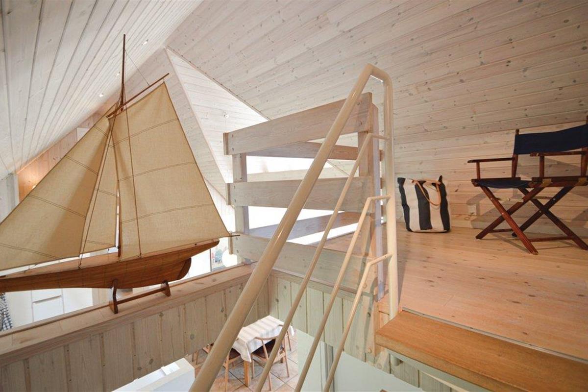 Vanuit de keuken leidt een trap naar de galerij, waar zich de toegang tot een van de vier slaapkamers bevindt. De andere galerij, die voorzien is van matrassen, is bereikbaar via een ladder.