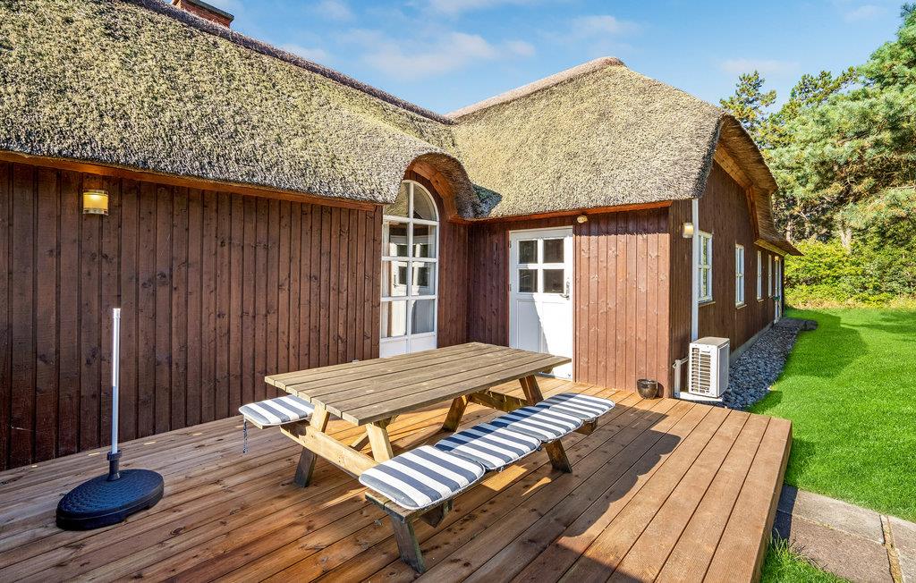 Charmant rietgedekt vakantiehuis in Denemarken met sauna, whirlpool, open haard en ruime tuin, vlakbij duinen en strand.