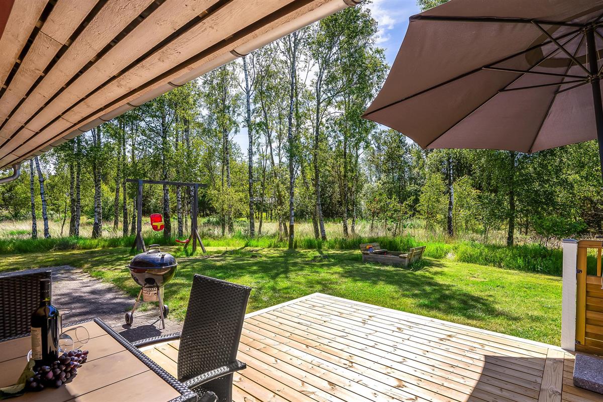 Dit mooie en ruime huis in een zeer rustige omgeving ligt op een mooi natuurperceel met veel bomen. Het is slechts ongeveer één kilometer naar Sønderstrand en de Noordzee, en ongeveer twee kilometer naar Havneby, waar de golfbaan ligt. Door de bijzondere inrichting van het huis wordt elke vierkante meter benut. De wellnessruimte bevat een whirlpool, sauna en douchecabine. De tweede badkamer bevindt zich bij de slaapkamers. Een ventilatiesysteem zorgt dag en nacht voor frisse lucht in alle kamers. U kunt zonnebaden op het tegen de wind beschutte terras en er is altijd een schaduwrijk plekje onder de bomen.