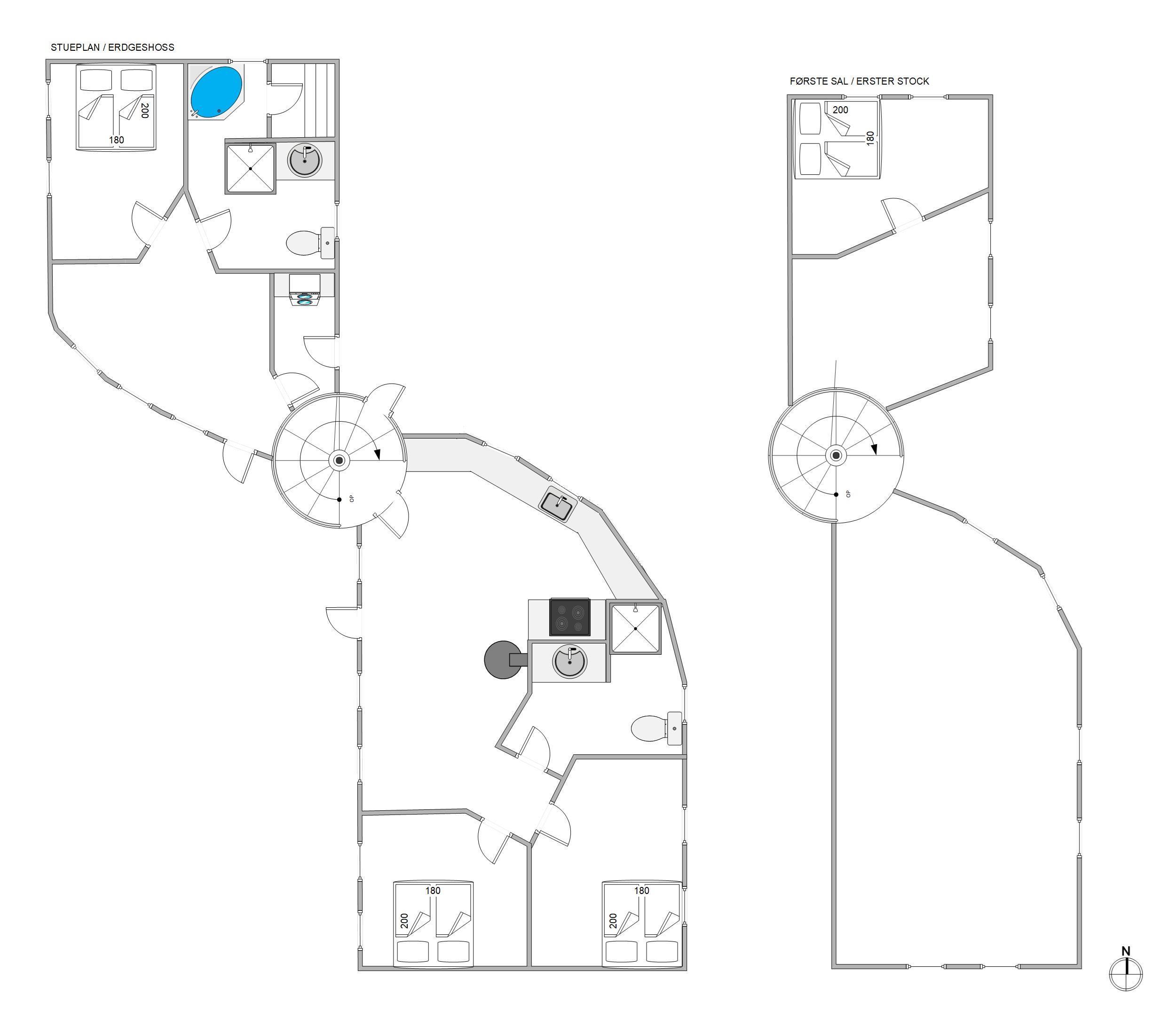 Dieses Ferienhaus verfügt über 4 Schlafzimmer mit Doppelbetten (180x200 cm), die für angenehme Nächte sorgen. Damit morgens kein langes Anstehen zum Zähneputzen entsteht, sorgen die 2 Bäder mit Fußbodenheizung – ein zusätzlicher Luxus.