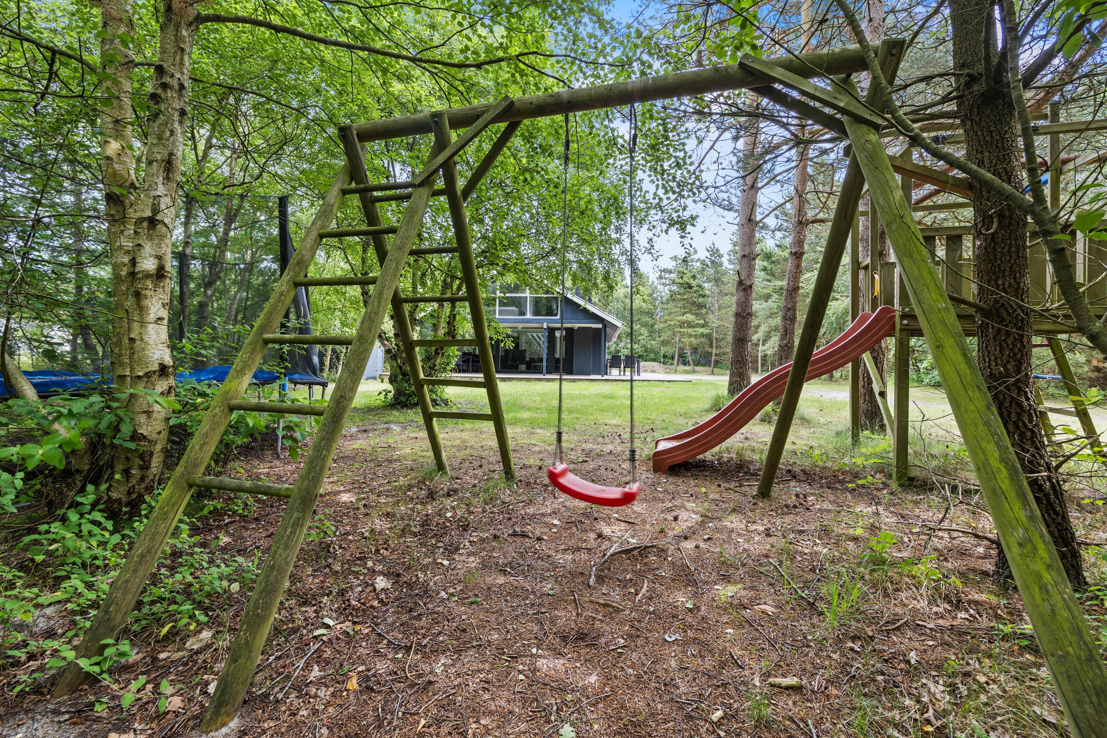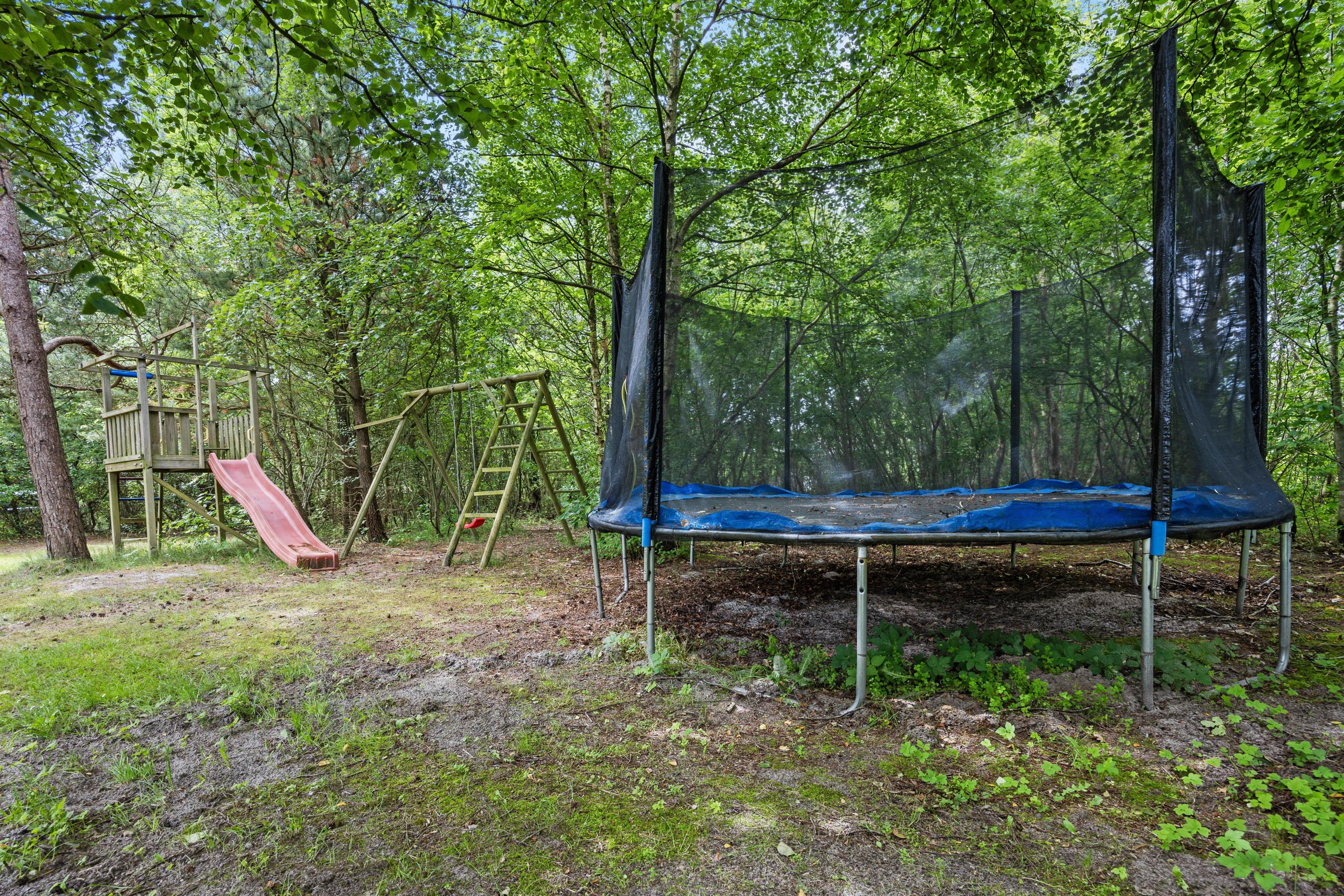 Outside, the spacious 2,500-square-metre grounds provide a safe, open space for children to play. There's a dedicated playground with sandbox, swing, climbing frame, and trampoline. For relaxed barbecue evenings, you'll find a barbecue and garden furniture on the open and partially covered terrace.
