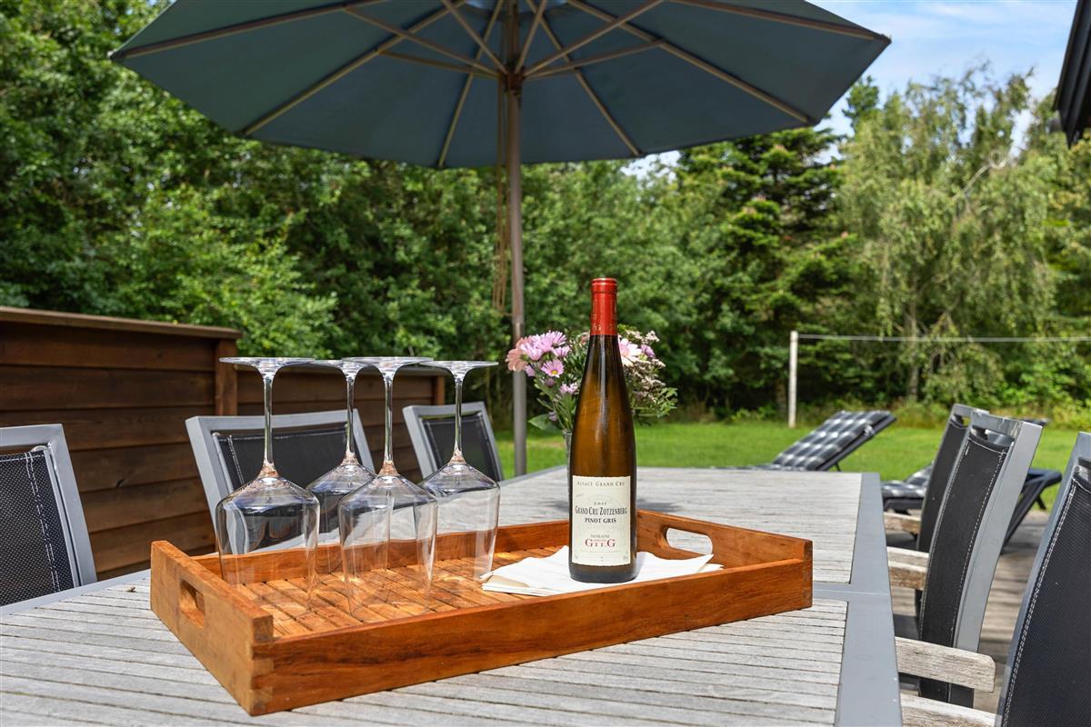 The holiday home leaves nothing to be desired. The fully equipped kitchen includes a dishwasher and a separate 60-litre freezer, perfect for preparing your favourite meals at home. Additional amenities include a washing machine, tumble dryer, and heat pump ensuring a comfortable indoor climate. Entertainment is well catered for with a satellite TV system.