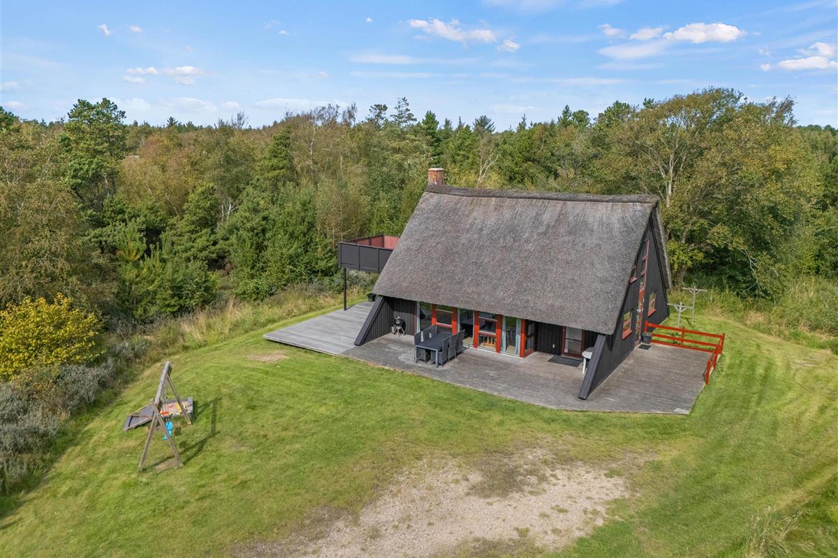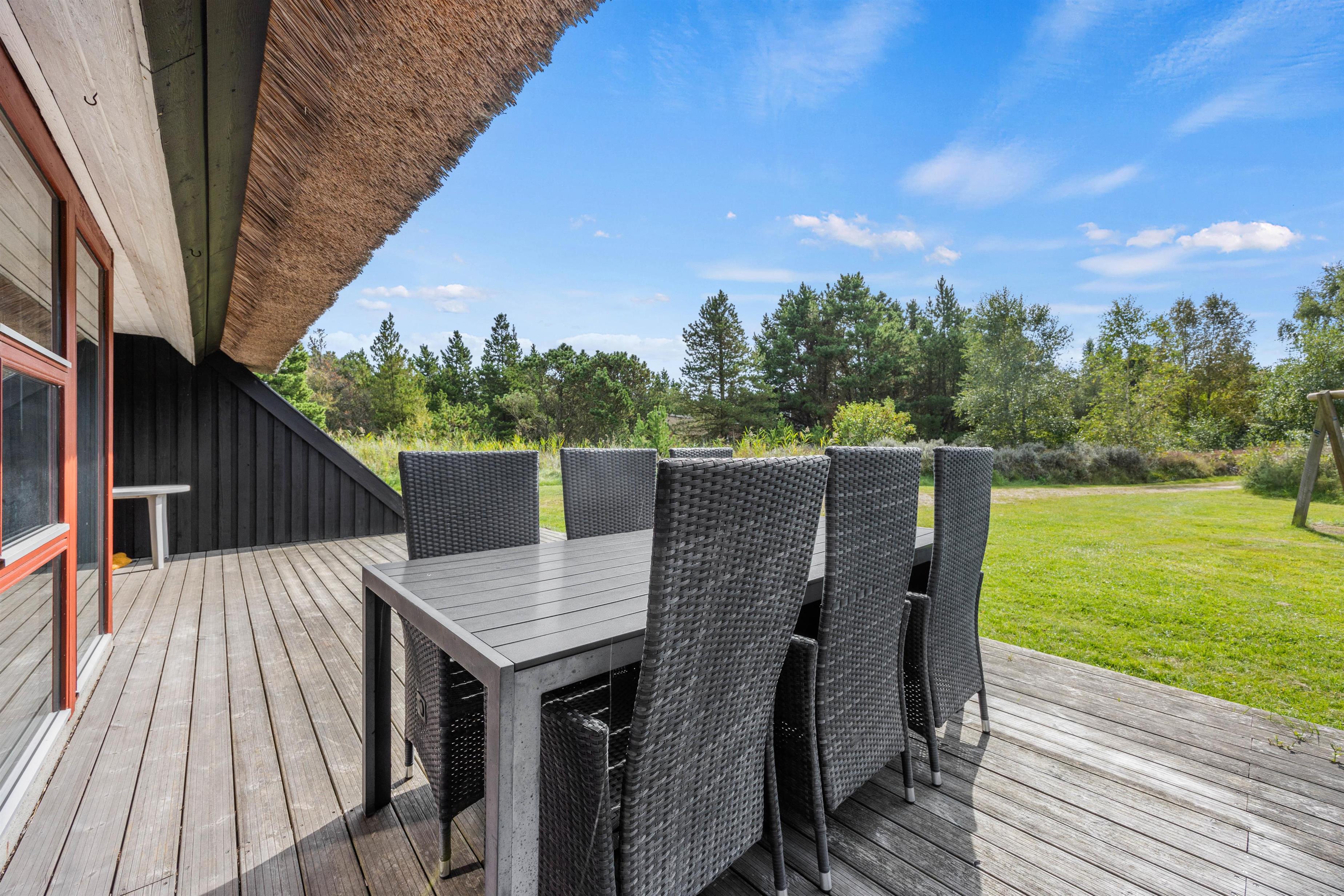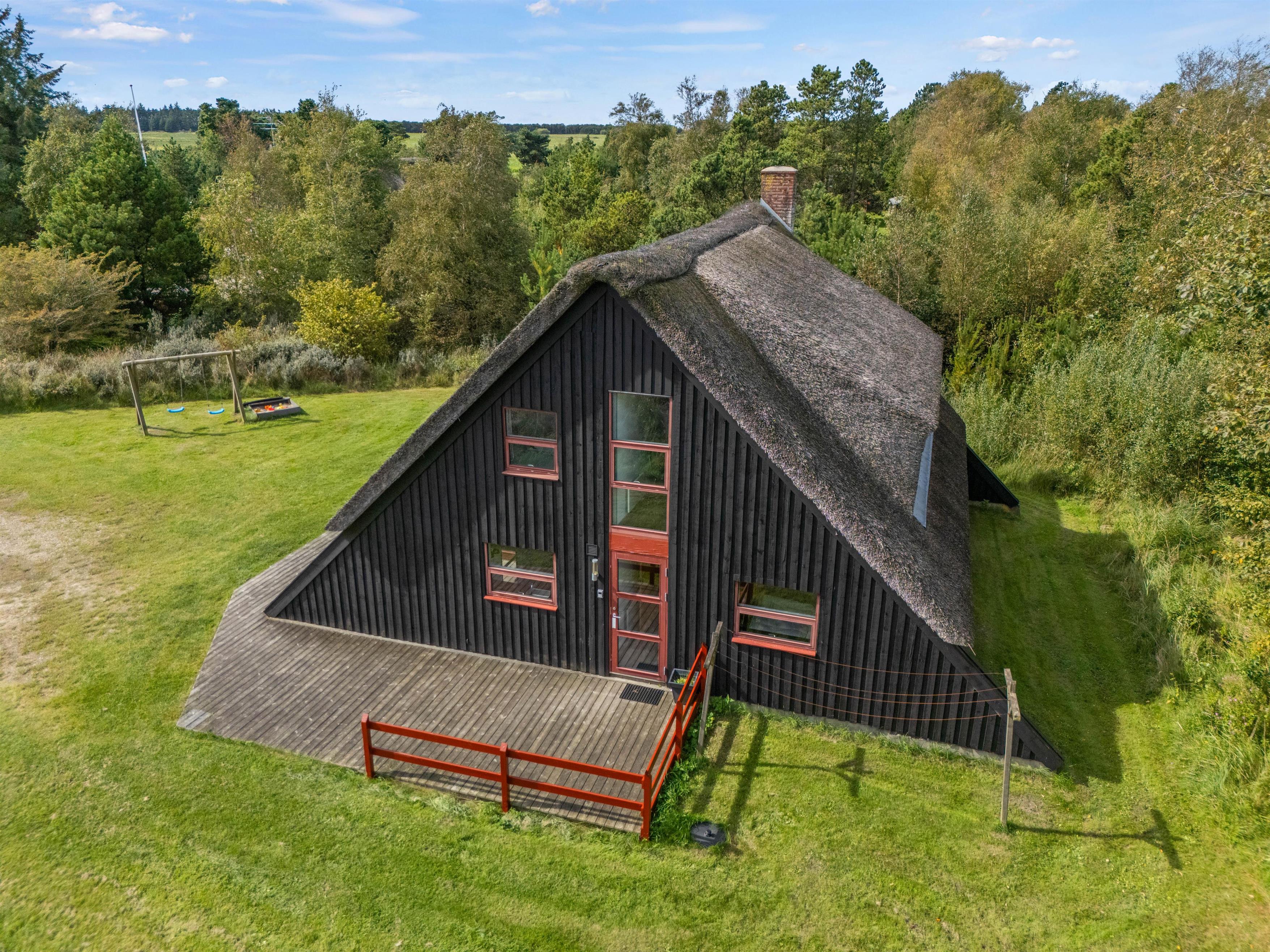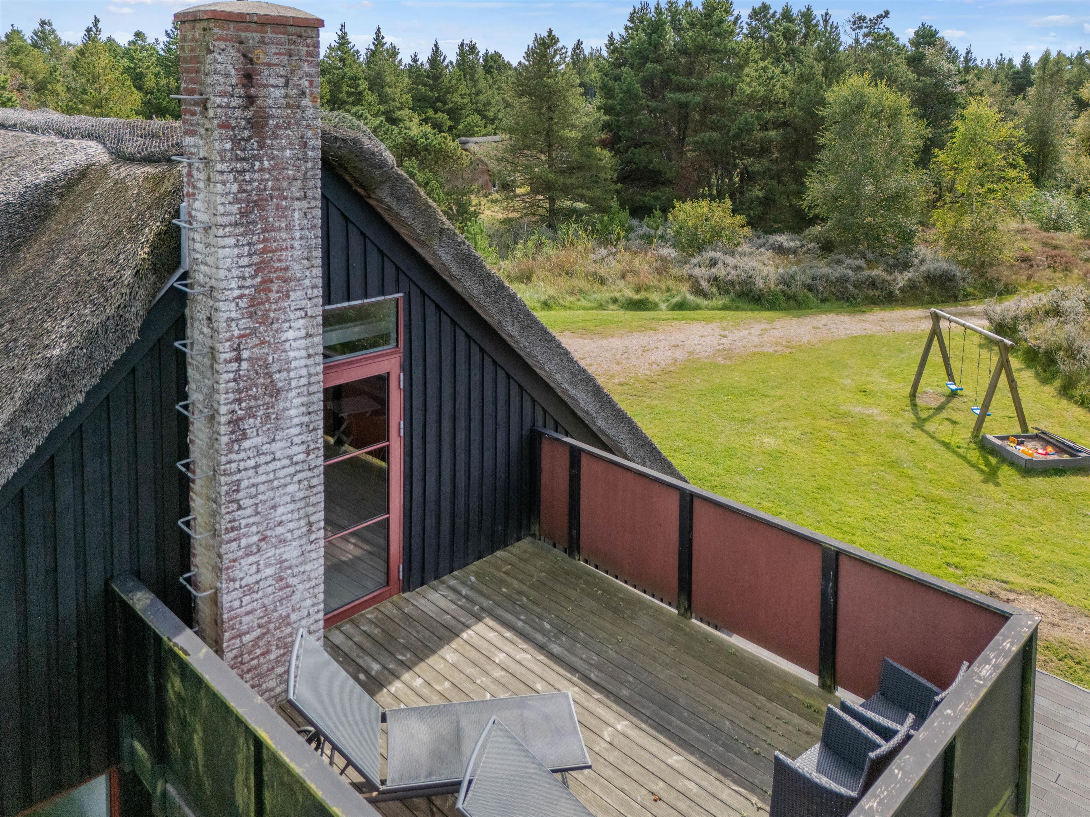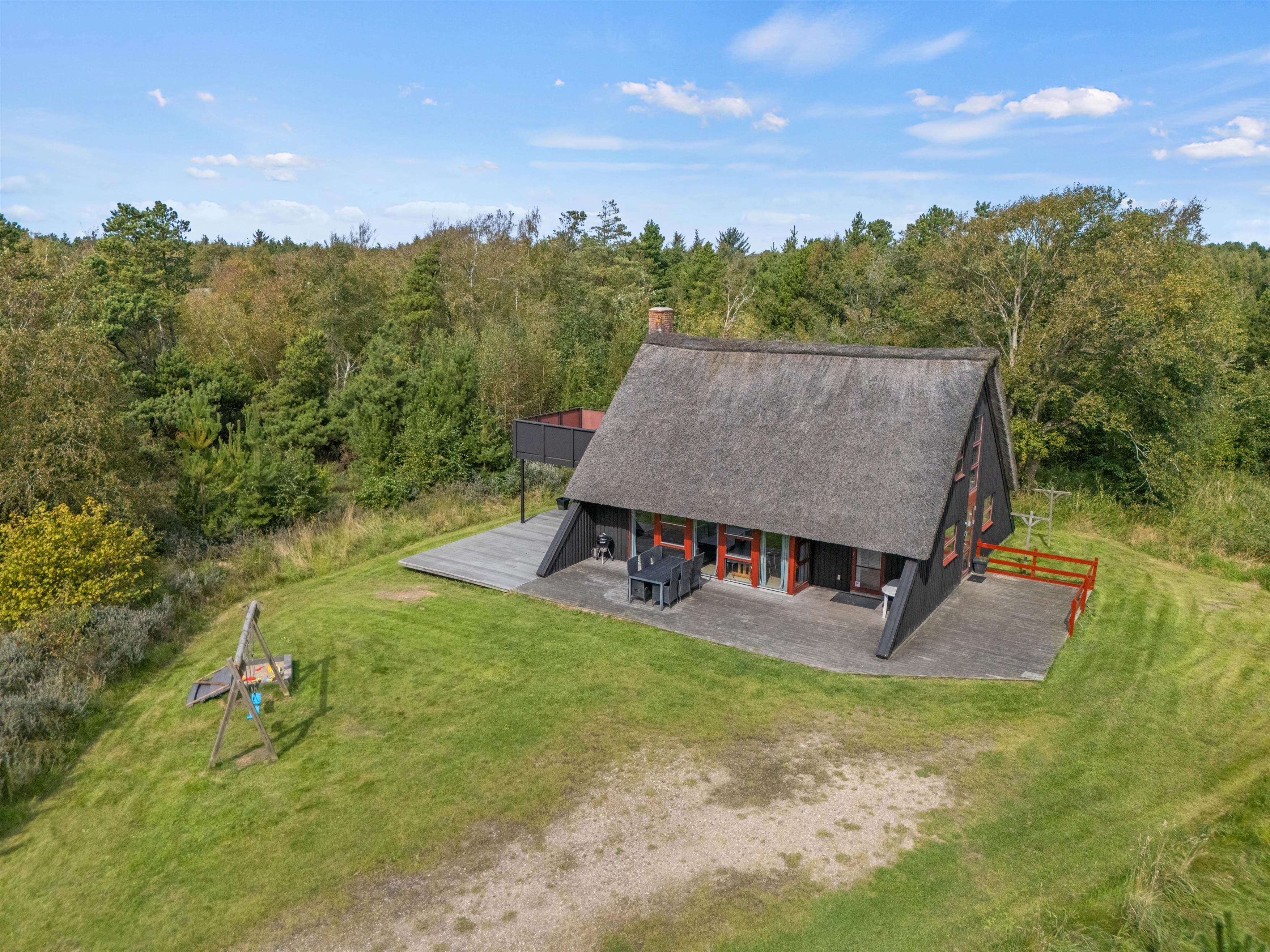 The holiday home sits within a 2,500-square-metre natural plot, offering children plenty of space to play. They'll love the sandbox and swings. Garden furniture and sun loungers are provided, perfect for enjoying afternoon coffee while looking out over the greenery as the little ones play in the garden.