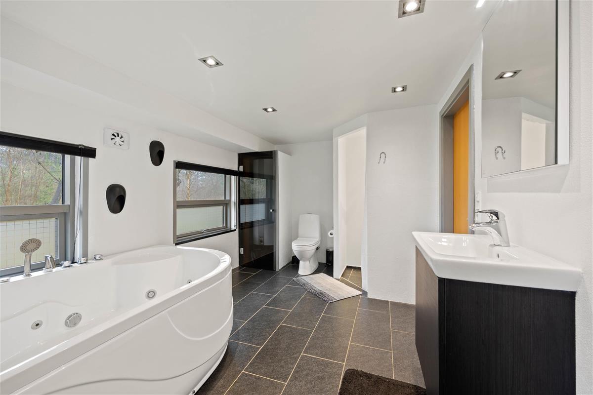 Adjacent to the living room, you'll find a spacious bathroom with both a whirlpool and sauna, perfect for creating your own wellness retreat. One of the three bedrooms is located on the ground floor, featuring a double bed.