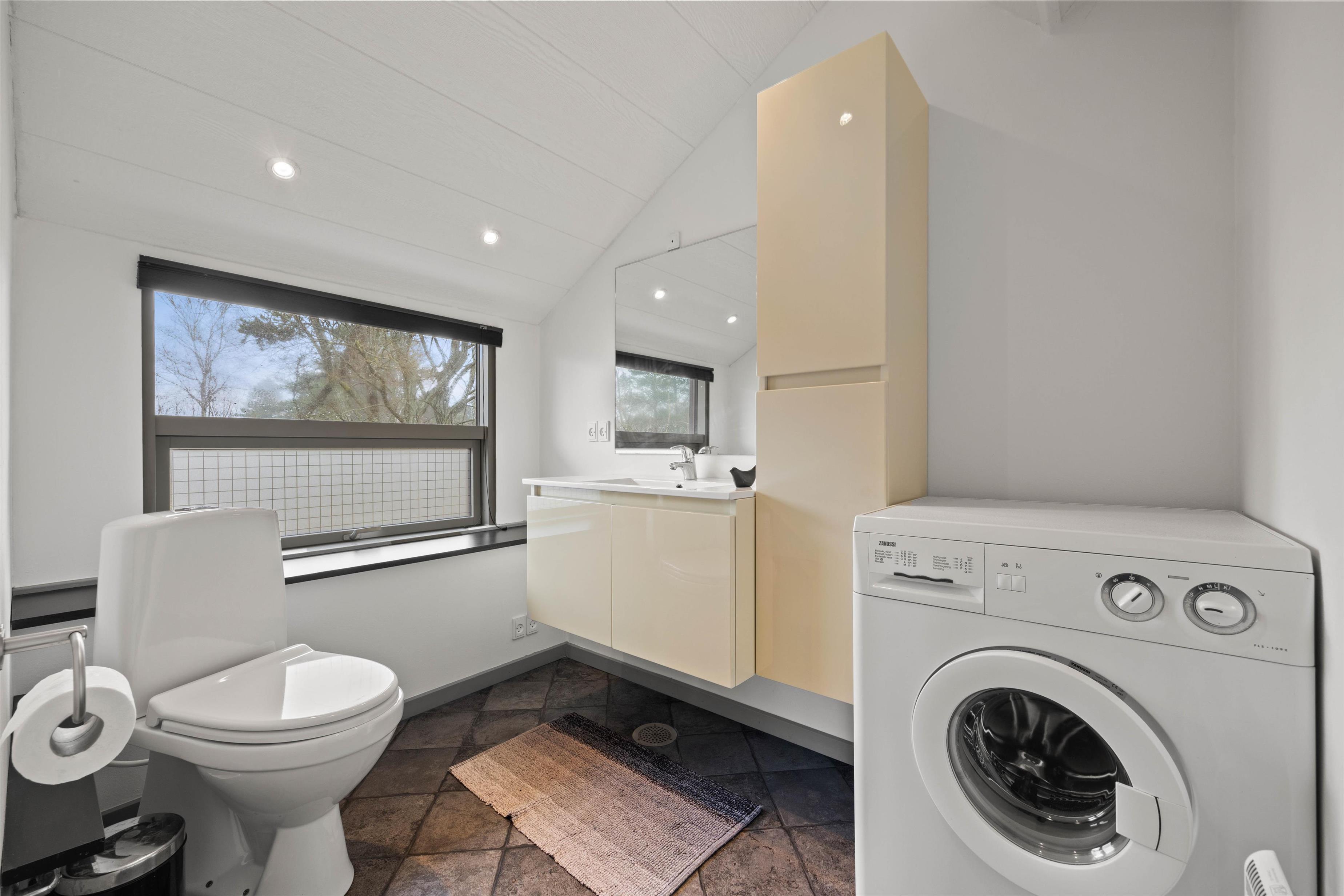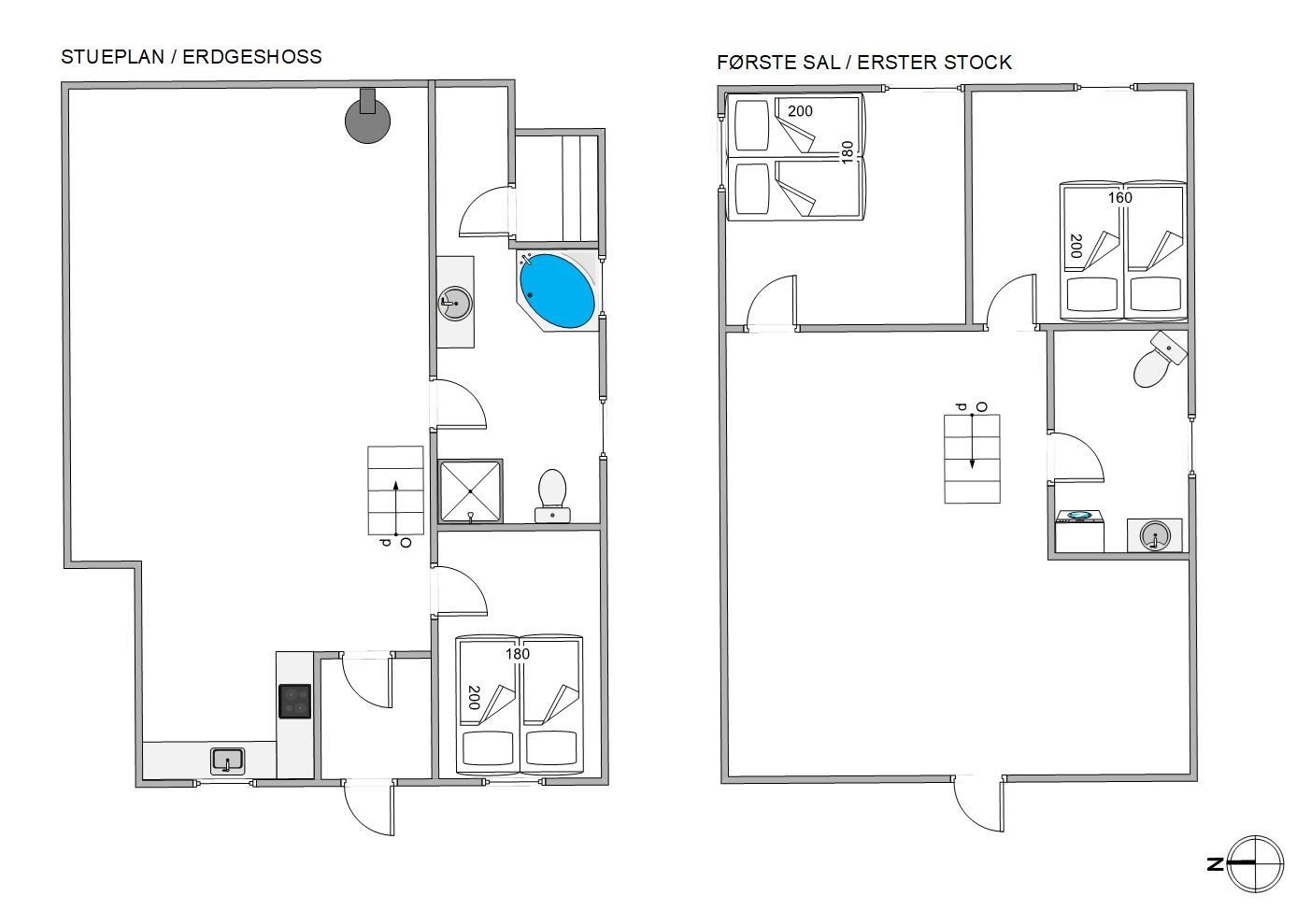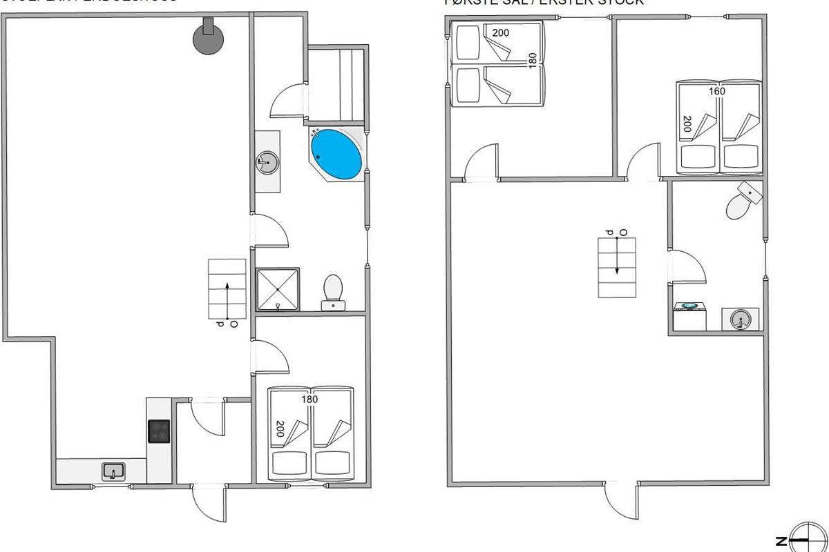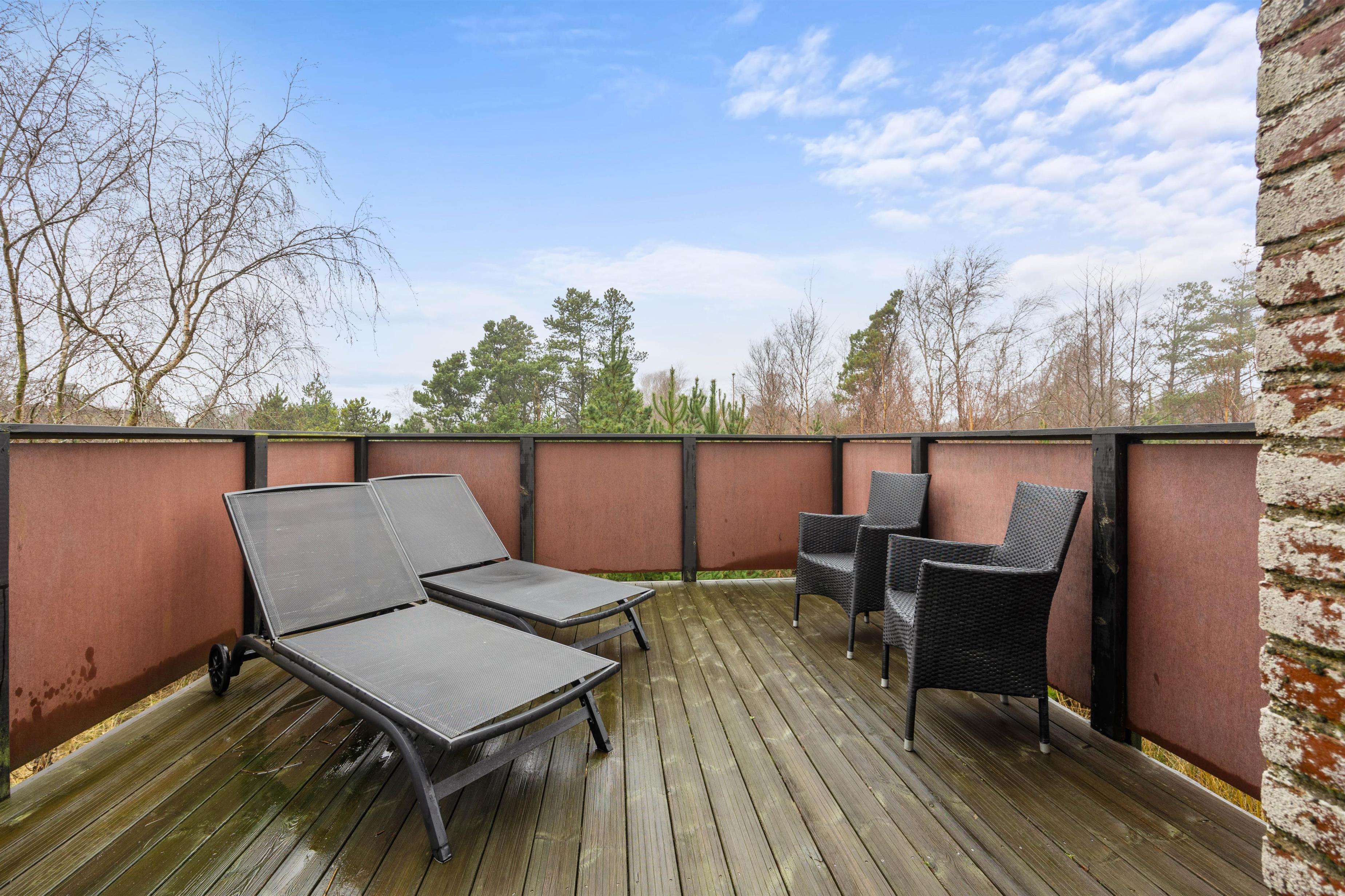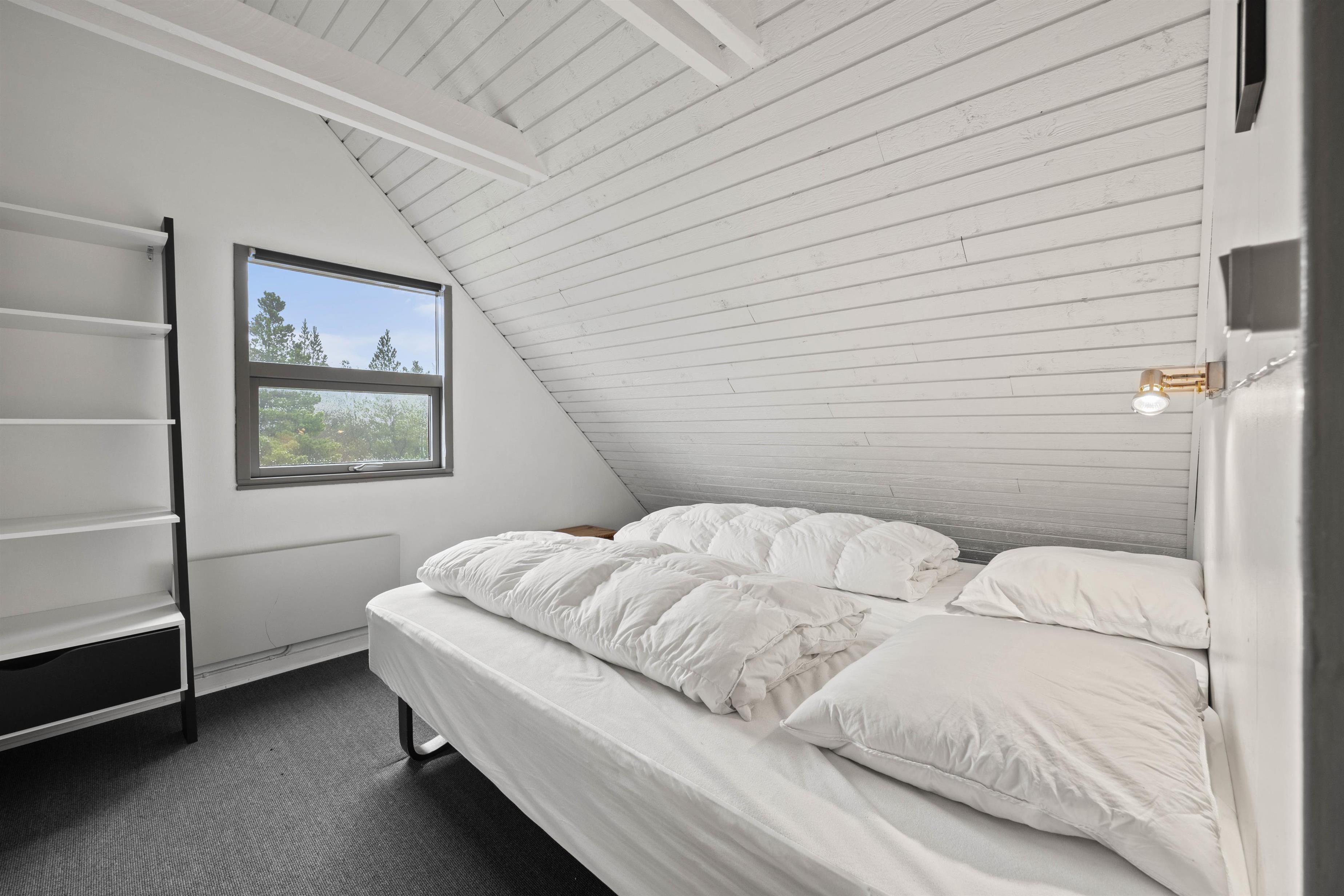 The first floor offers an additional living space with comfortable sofas for relaxation. This room provides access to a large balcony where you can enjoy the fresh North Sea air and warm sunshine. The remaining two bedrooms are also located on this floor. One has a double bed, while the other features a bed measuring 140x200cm. A guest toilet helps prevent queuing.