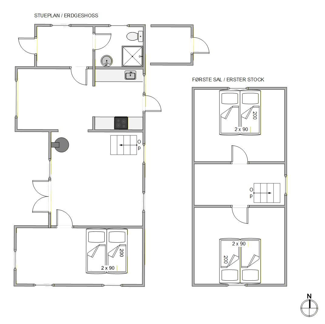 Im Inneren findet ihr ein gut eingerichtetes Sommerhaus mit Platz für bis zu 6 Personen, verteilt auf 3 Schlafzimmer mit bequemen Doppelbetten. Die voll ausgestattete Küche verfügt unter anderem über eine moderne Geschirrspülmaschine, sodass die täglichen Aufgaben mühelos erledigt werden können. An kühleren Abenden könnt ihr die wohltuende Atmosphäre des knisternden Kaminofens genießen und euch zusätzlich von einer effizienten Luft-Luft-Wärmepumpe wärmen lassen.