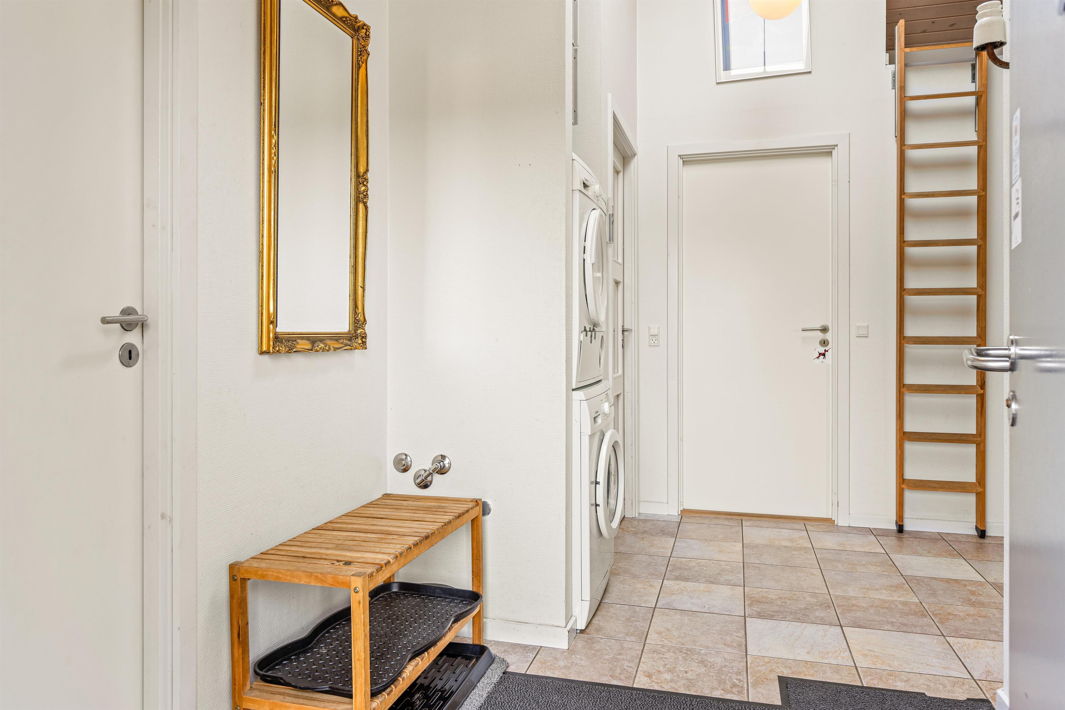 The comfortable sofa is perfect for watching DVDs together, with homemade popcorn and the crackling of the wood-burning stove in the background, creating that perfect cosy Danish 'hygge' atmosphere. The energy-efficient heat pump provides additional heating. The modern kitchen is equipped with quality appliances, including a dishwasher to handle the clean-up after sociable cooking evenings. Fishing enthusiasts will appreciate the 70-litre freezer capacity for storing their catch.